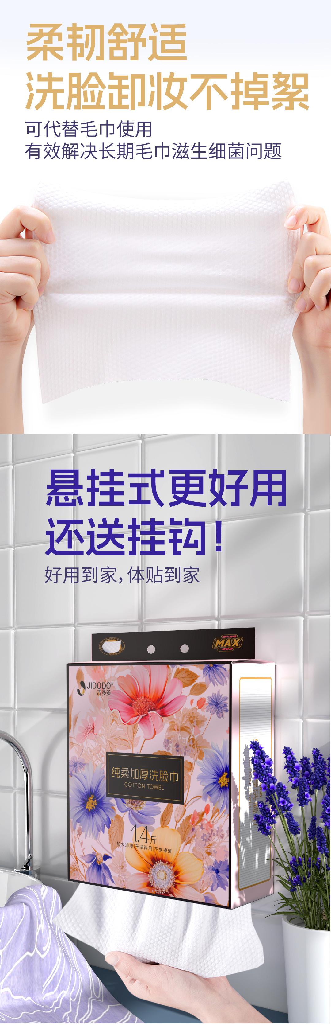 Toalla facial Jidoduo 1.4kg algodón toalla suave desechable amigable con la piel patrón perla uso dual seco y húmedo toalla facial colgante