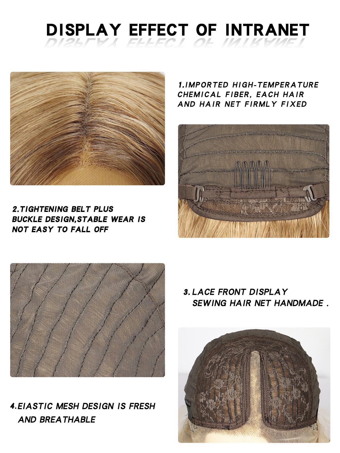 ![]() Pelucas Pelucas transfronterizas europeas y americanas, tocado de fibra química con encaje frontal tejido a mano, 13*4*1T, cabello corto y liso con raya al medio