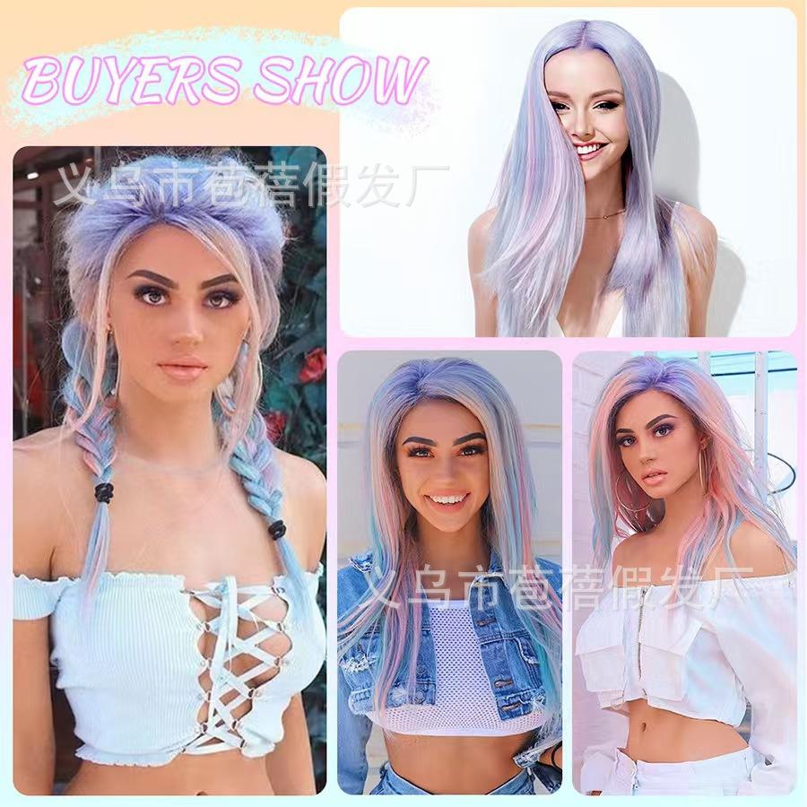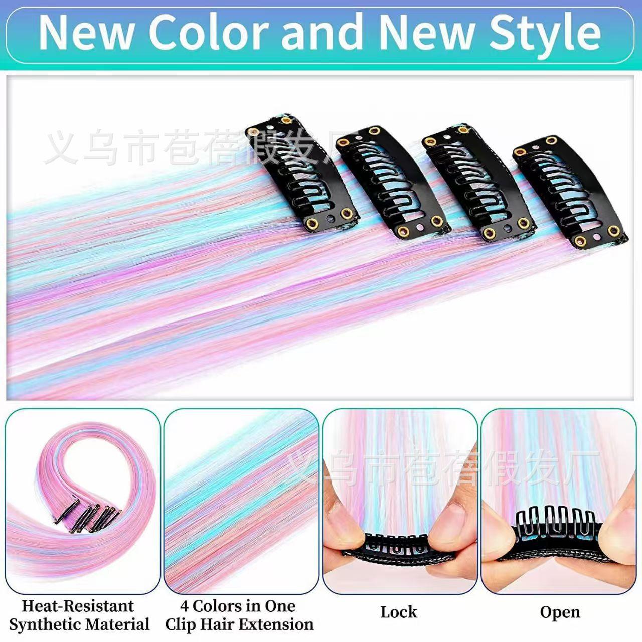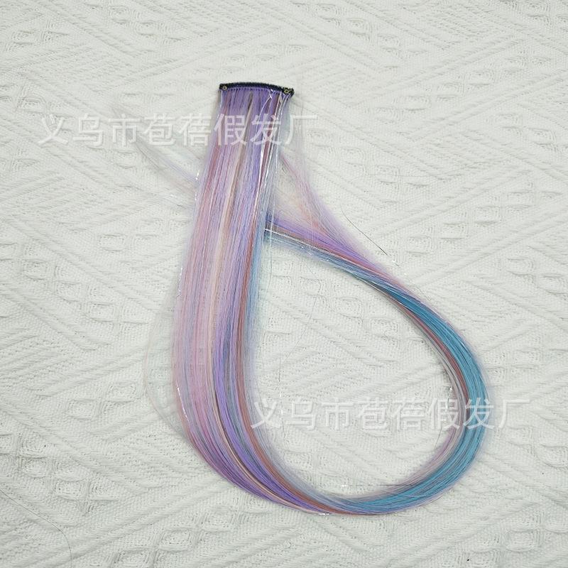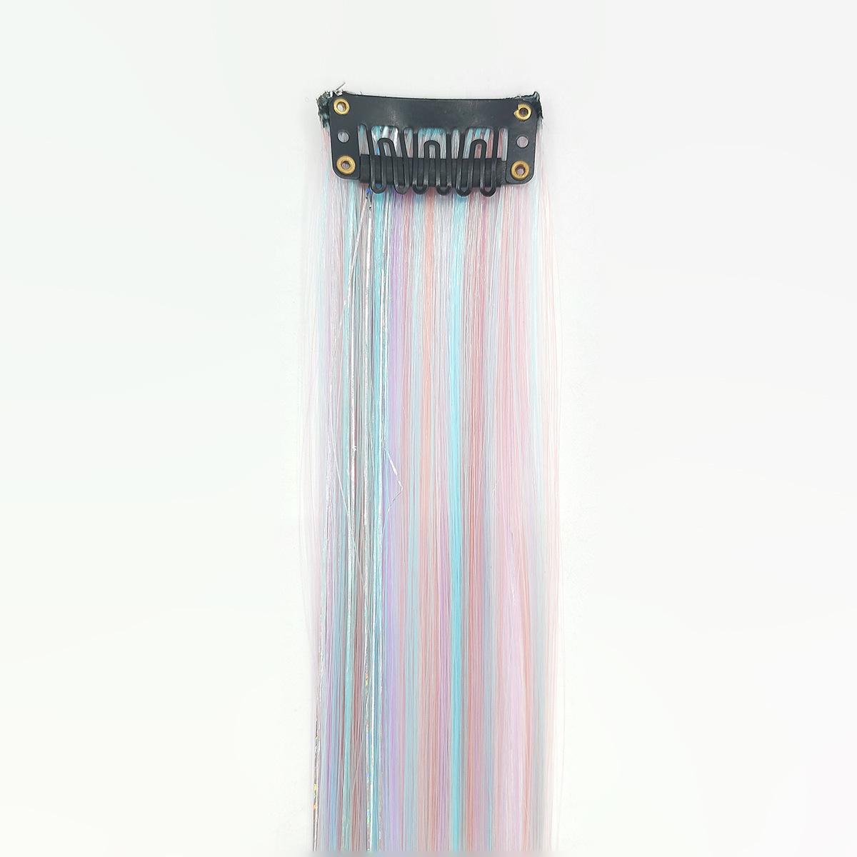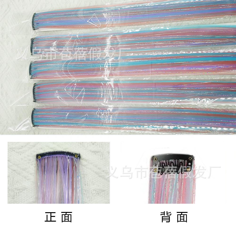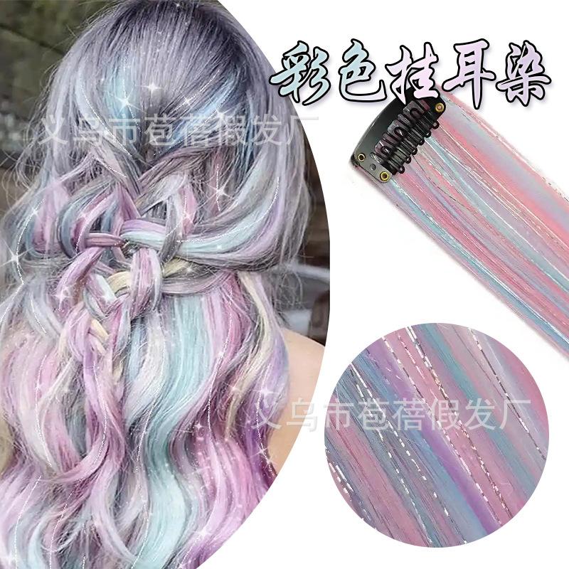 Comercio Exterior Colorido Oreja Colgante Pieza de Peluca Teñida Pinzas para el Cabello Alambre de Oro Láser para Mujer Extensiones de Cabello Coloridas Sin Costuras de Una Pieza