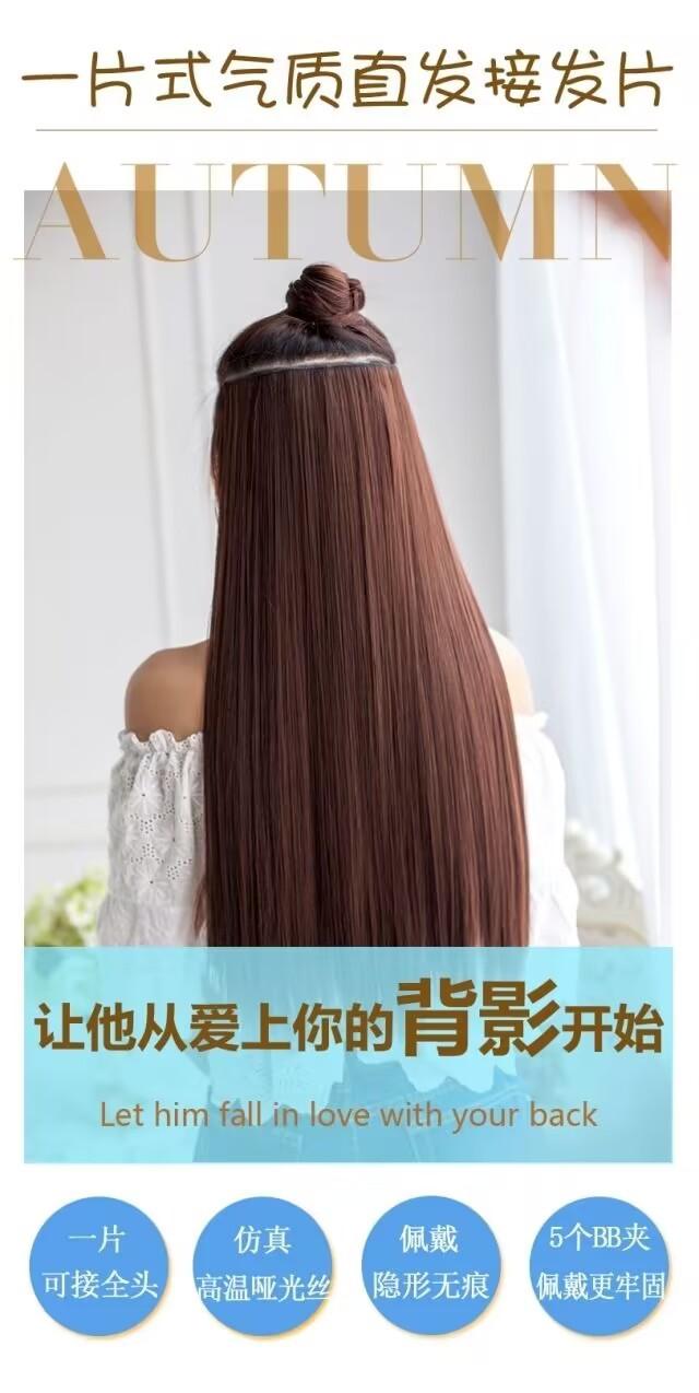 Peluca de extensión de cabello femenino, peluca de cinco tarjetas invisible, pieza de cabello largo y liso, pieza de cabello liso de simulación de una pieza para mujer