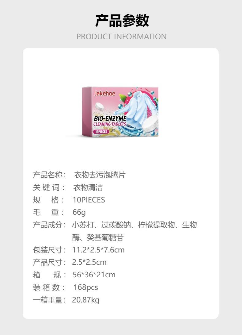 Tabletas Efervescentes Descontaminantes para Ropa Jakehoe, Sal Explosiva de Enzimas Biológicas, Descontaminación de Ropa para el Hogar, Eliminación de Manchas y Limpieza con Fragancia