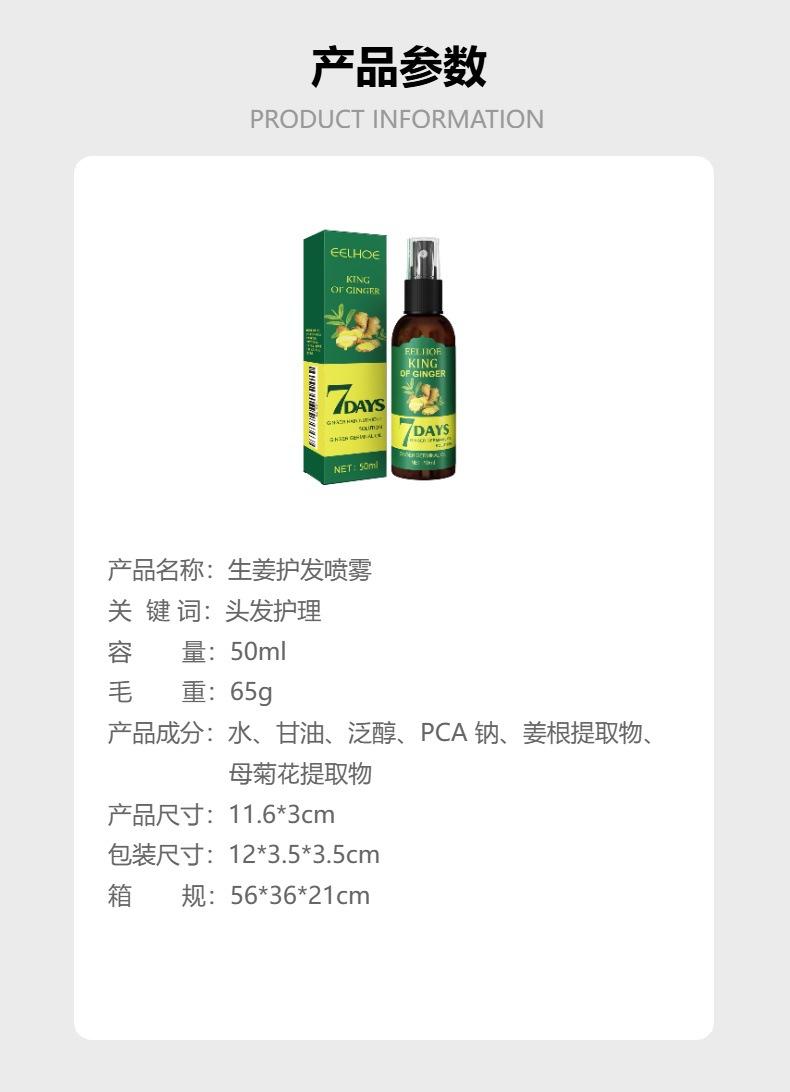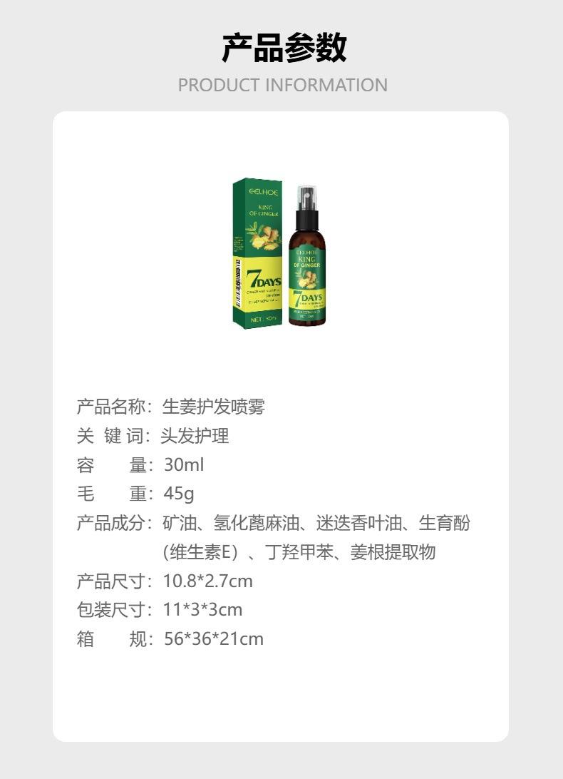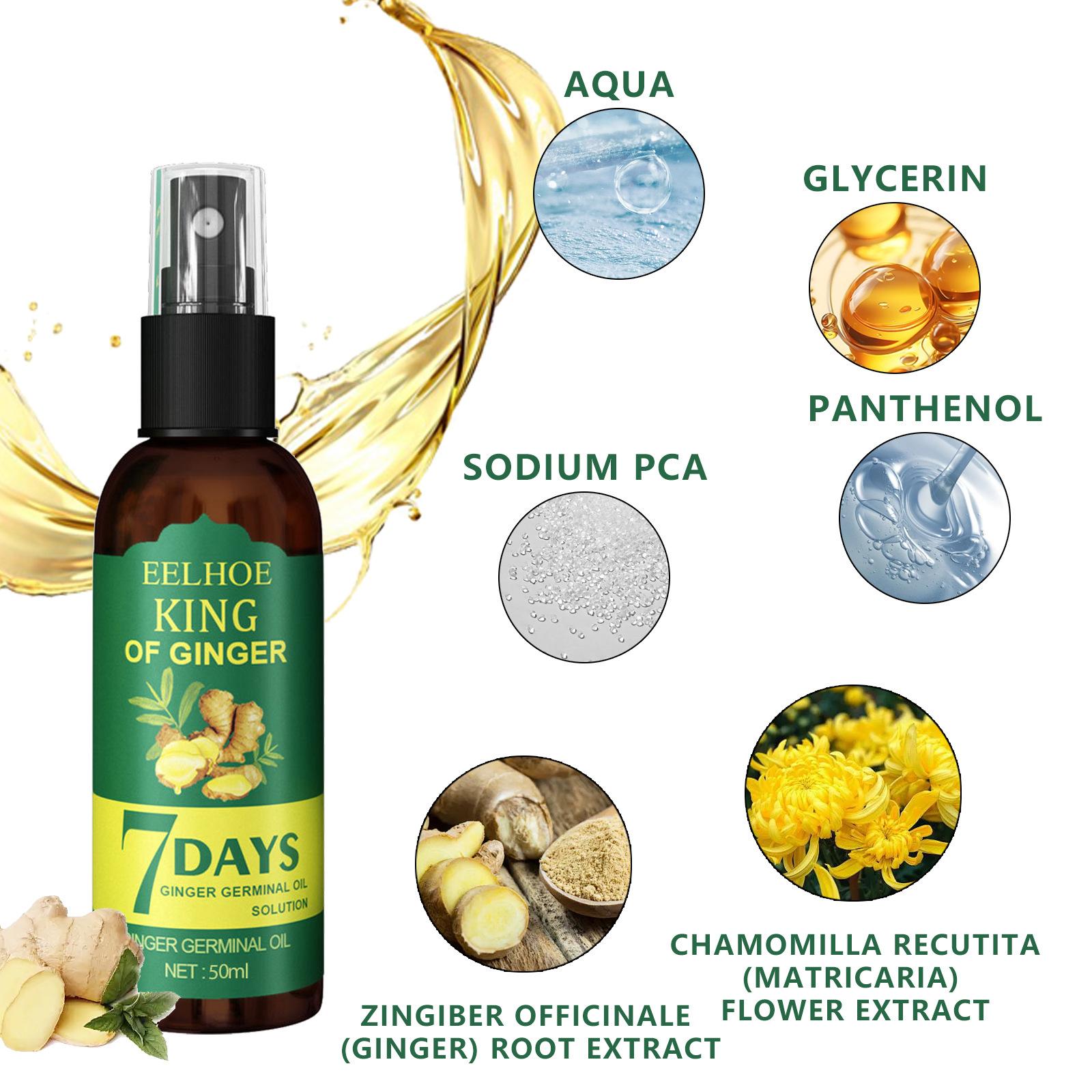 Eelhoe Spray Capilar de Jengibre Cabello Fuerte Masaje Capilar Cuero Cabelludo Hidratante Solución para el Cuidado del Cabello