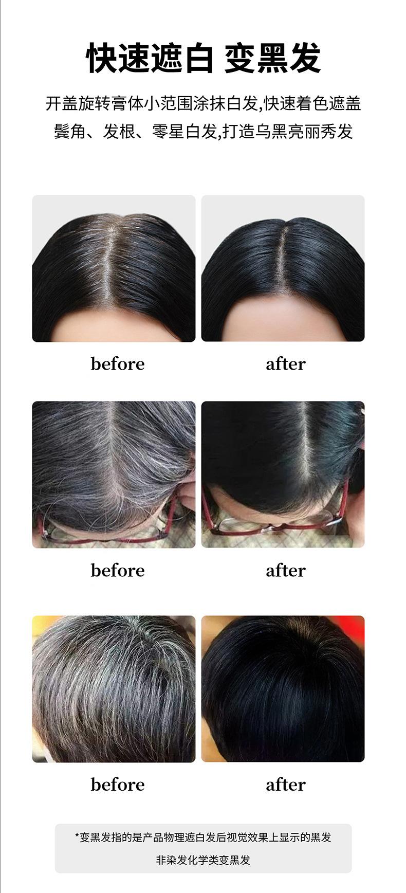 Tinte para el cabello desechable Oulure, lápiz de tinte temporal, crema de tinte para el cabello blanca, tinte para el cabello negro desechable.