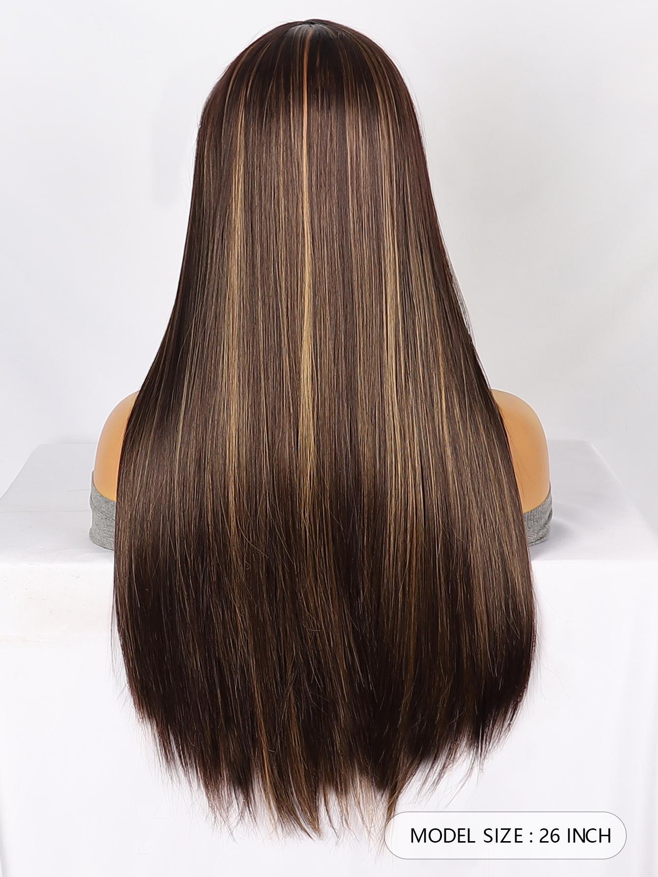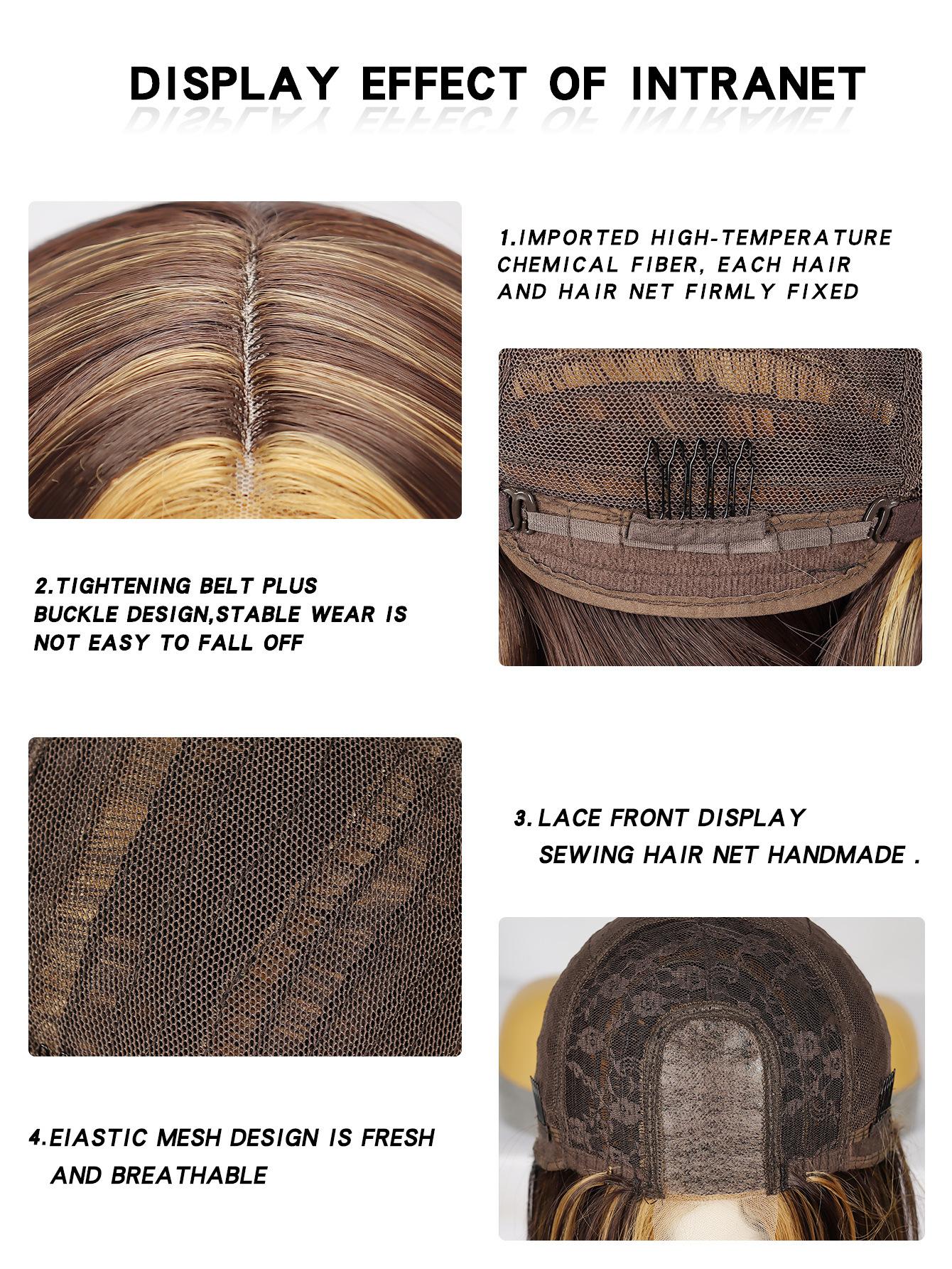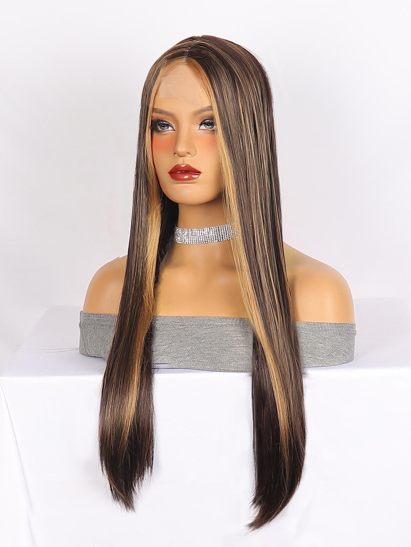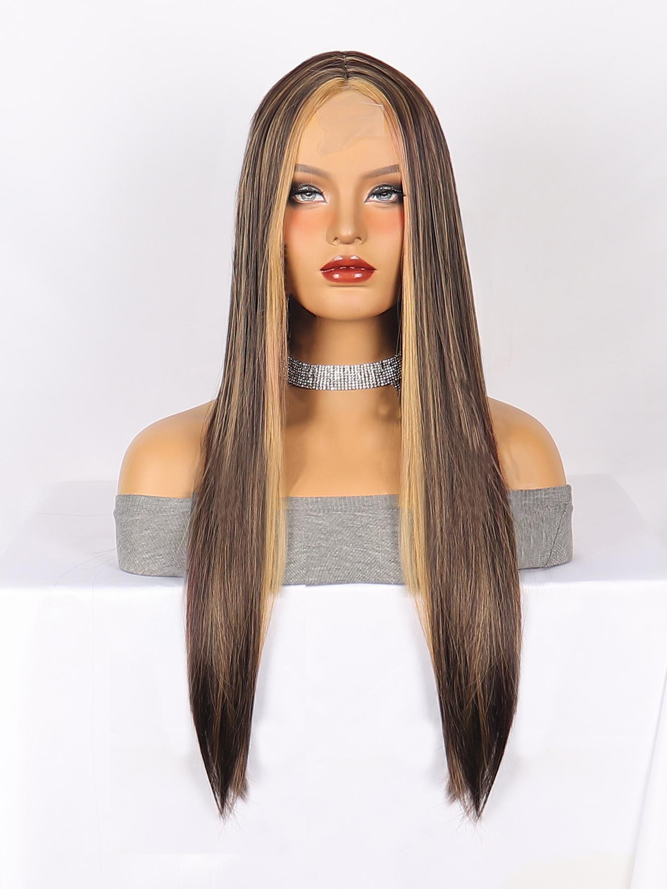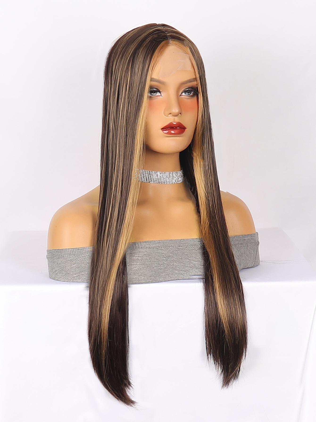 ![]() Peluca de fibra sintética con encaje frontal de 13*4*1T, peluca con diadema marrón degradado, cabello largo y liso, venta al por mayor