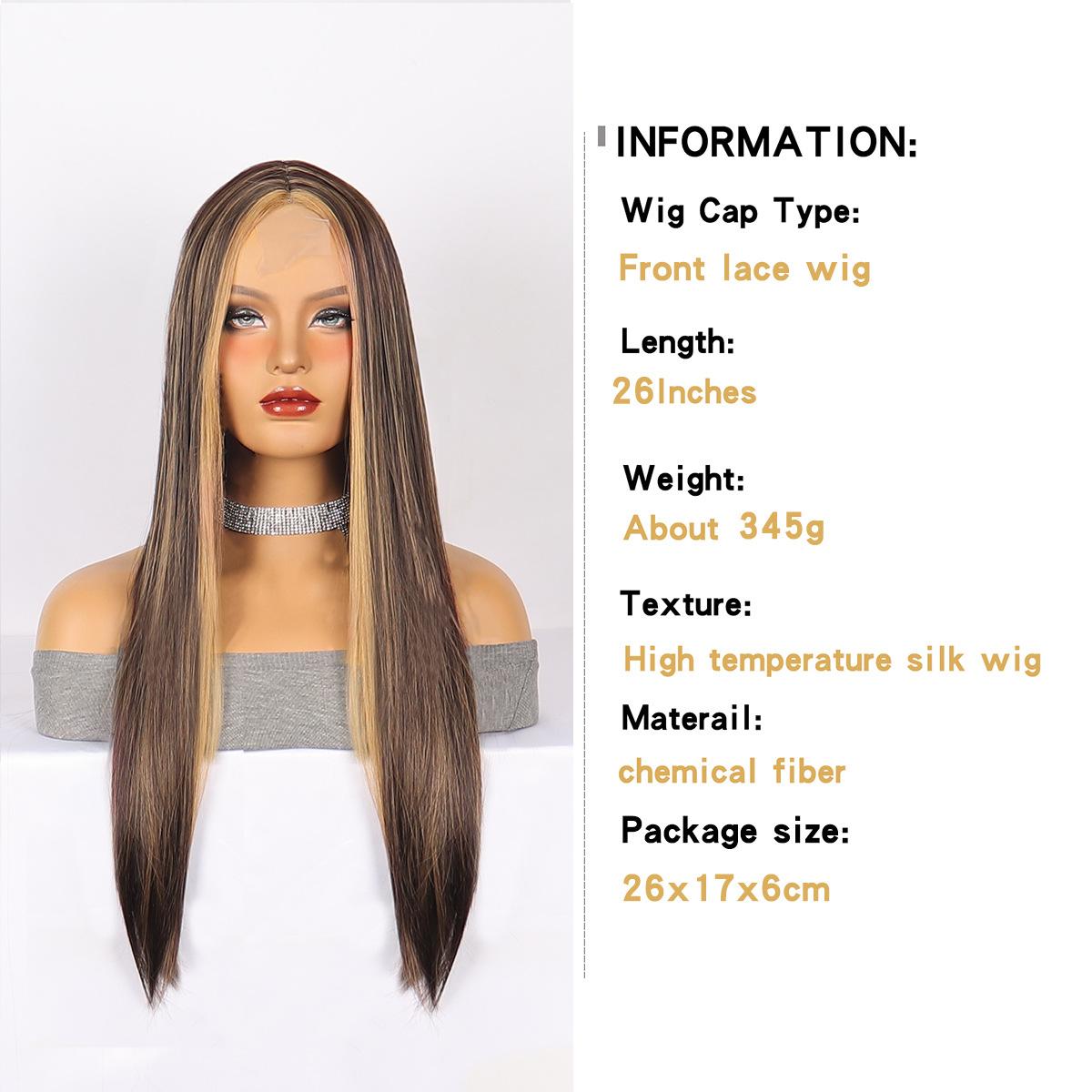![]() Pelucas transfronterizas europeas y americanas para mujeres, pelucas de encaje frontal blanco de moda, cabello largo y liso con raya al medio, fabricantes de alambre de alta temperatura