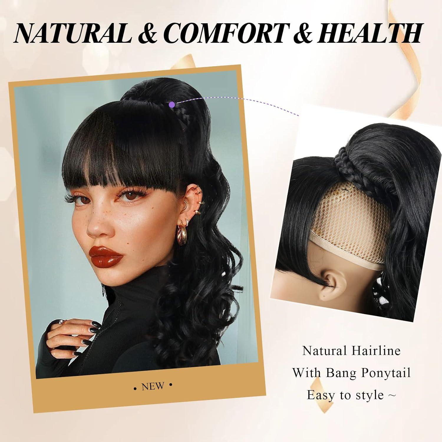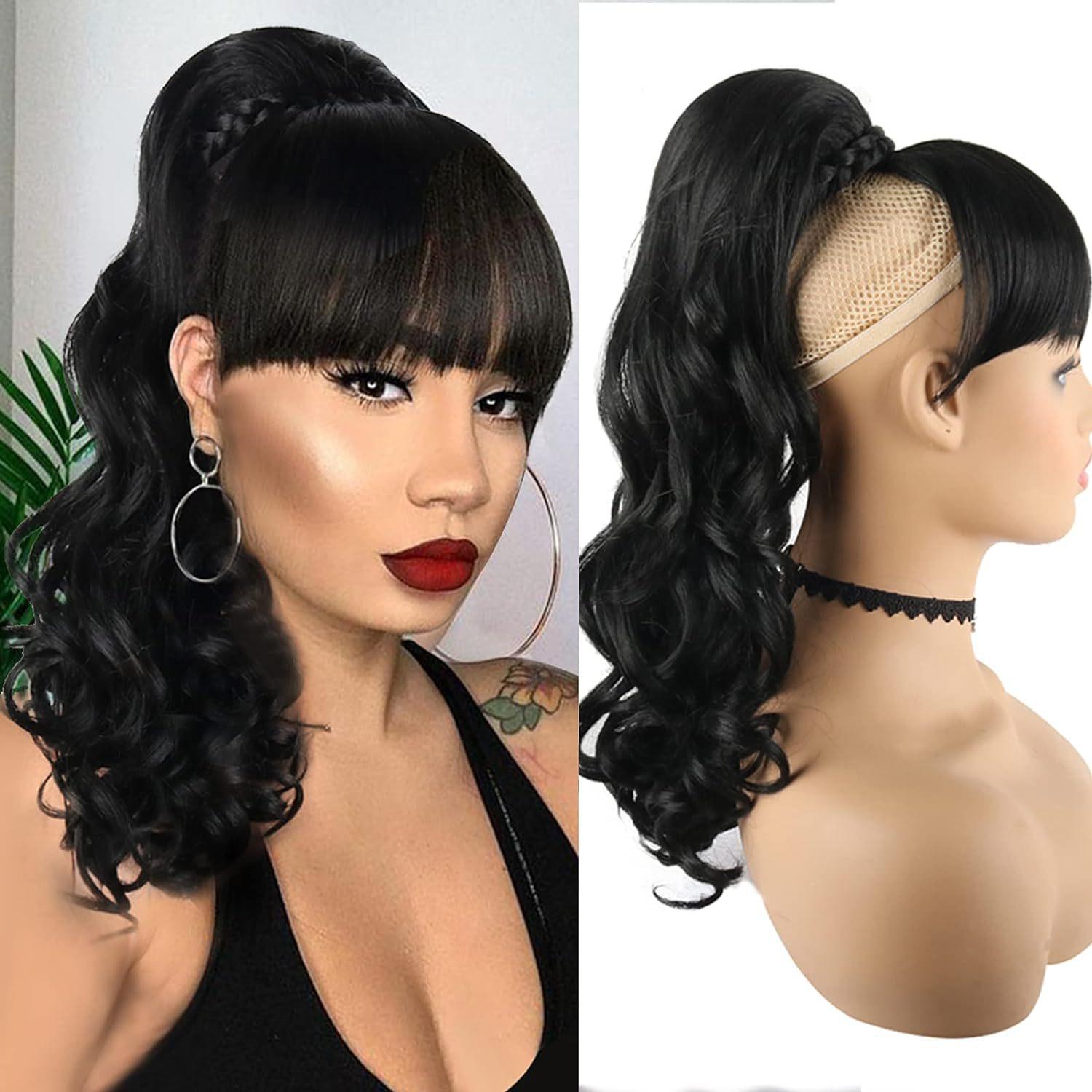 Nuevos productos transfronterizos: peluca de cola de caballo de Amazon para mujer, cabello largo y rizado negro, flequillo de cola de caballo, cabello de una sola pieza en stock, venta al por mayor