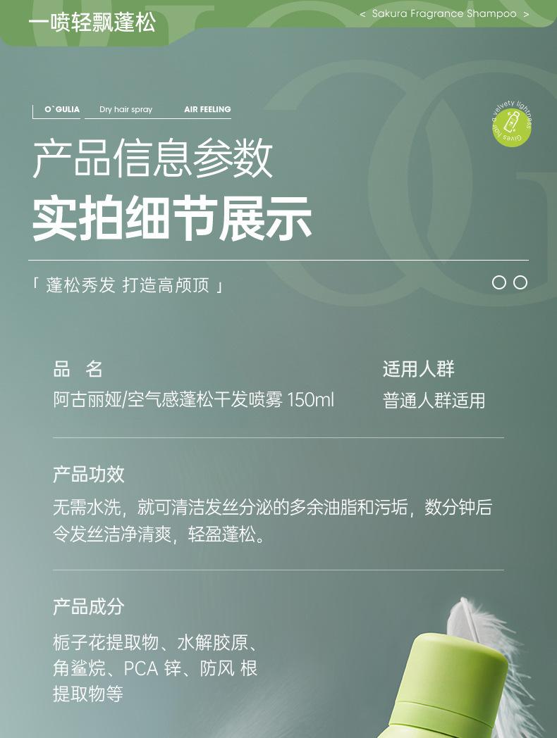 Spray para cabello seco y esponjoso Agulia Air Sense de 150 ml para limpieza del cabello, belleza y modificación.