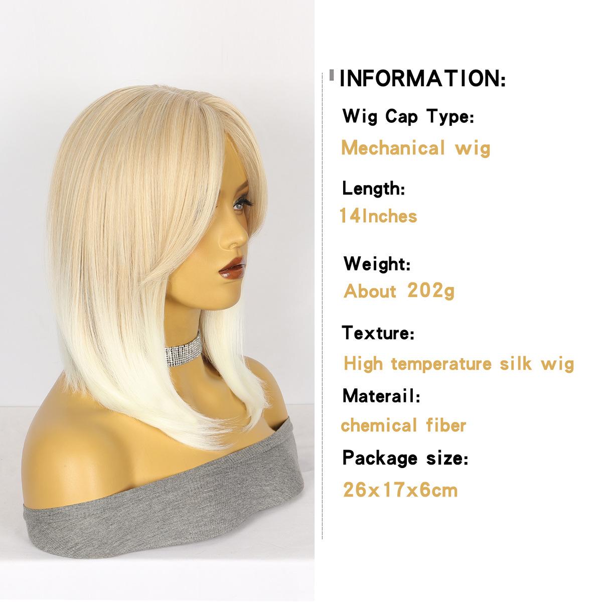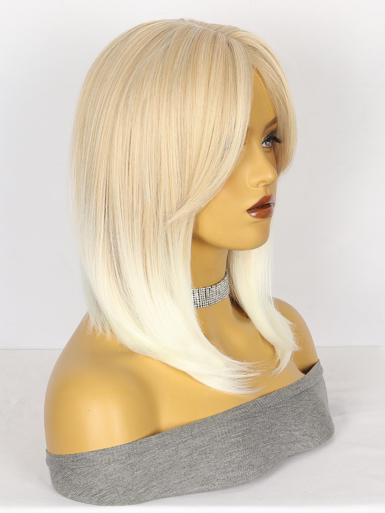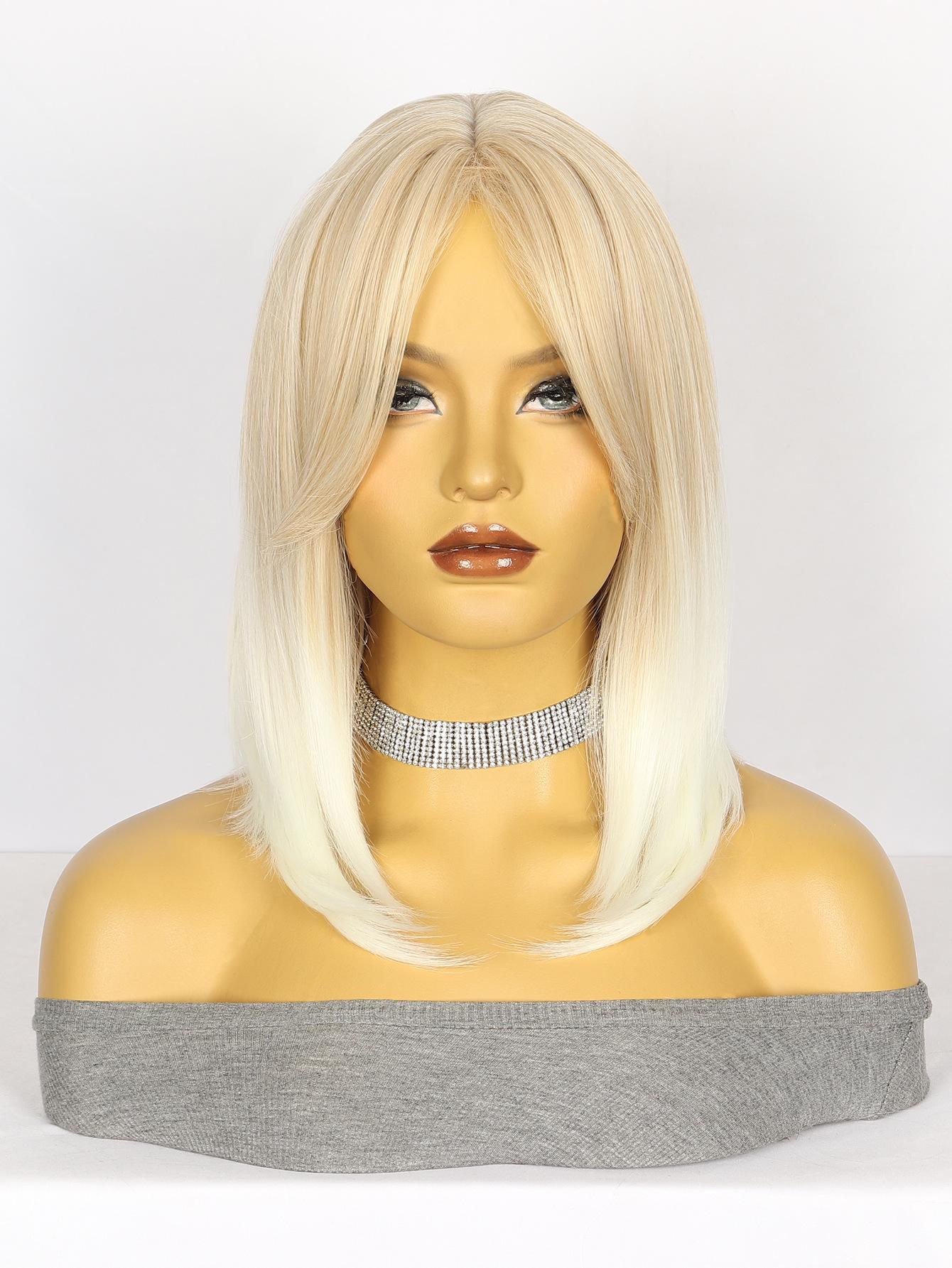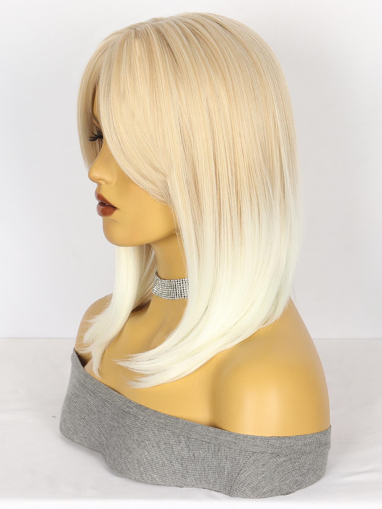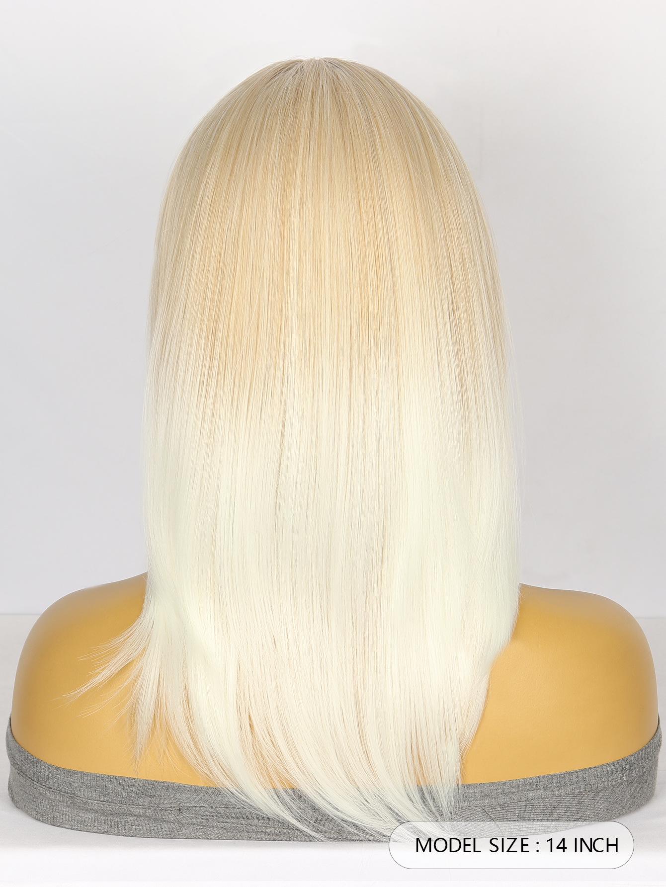 Peluca Moda Europea y Americana Peluca para Mujer Mecanismo Fibra Química Tocado Flequillo Brillante Marrón Claro Degradado Blanco Producto Nuevo