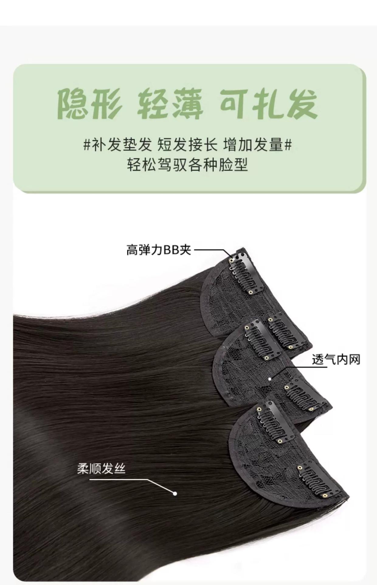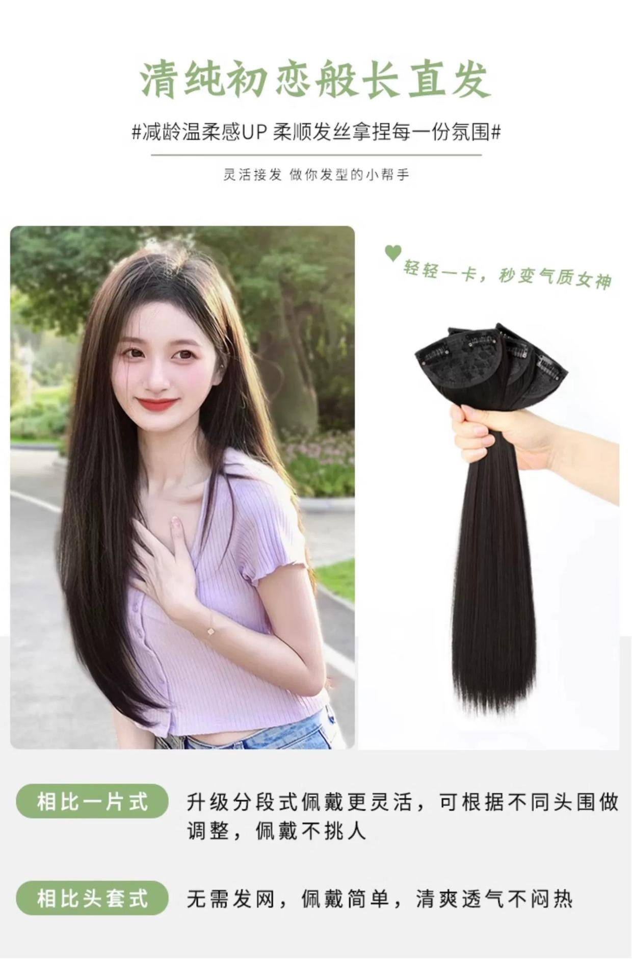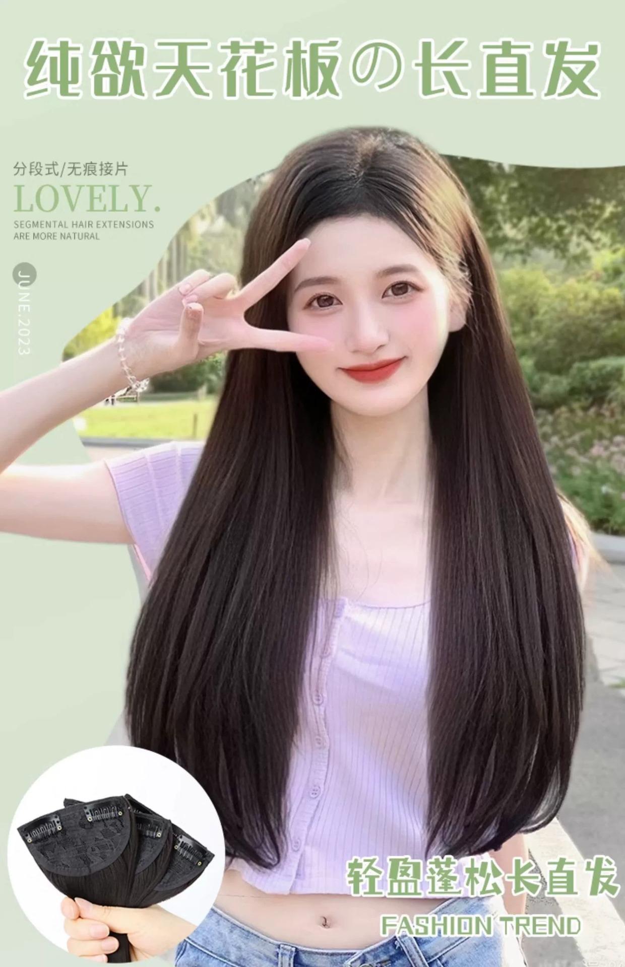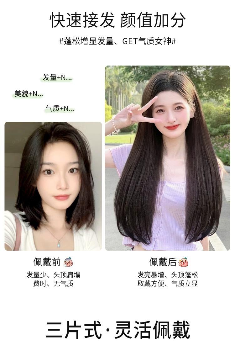 Peluca para mujer de cabello largo de tres piezas, volumen de cabello extra, esponjosa, invisible, sin costuras, extensión de cabello, cabello largo lacio, pieza de parche de peluca de una pieza