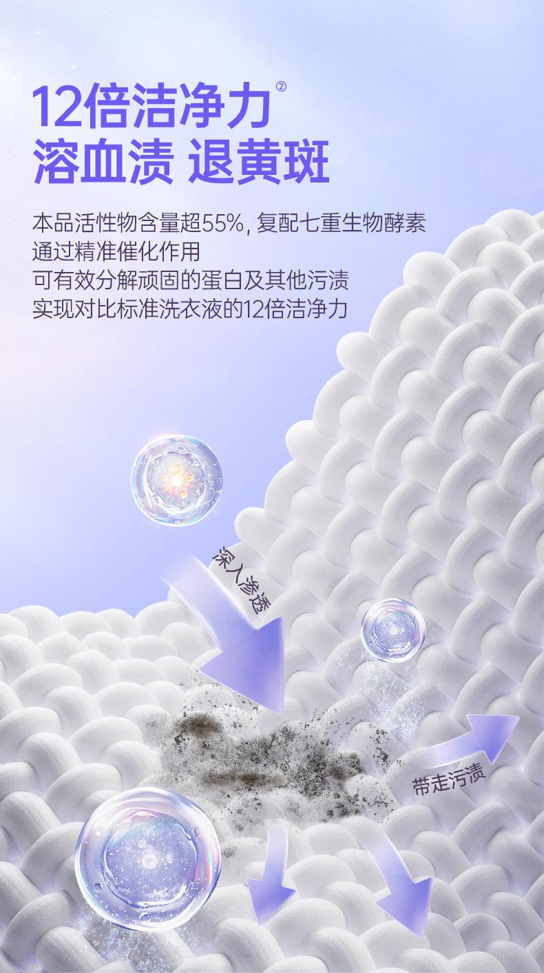 Deep cleaning, Color protection, Low foaming and easy to bleach, Low viscosity instant