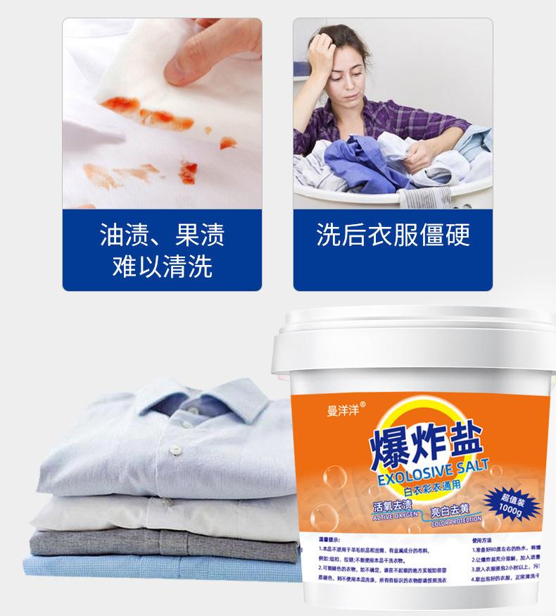 Venta al por mayor de sal explosiva para la eliminación de manchas de ropa blanca resistente, artefacto blanco, polvo blanqueador de color bebé para blanquear amarillo