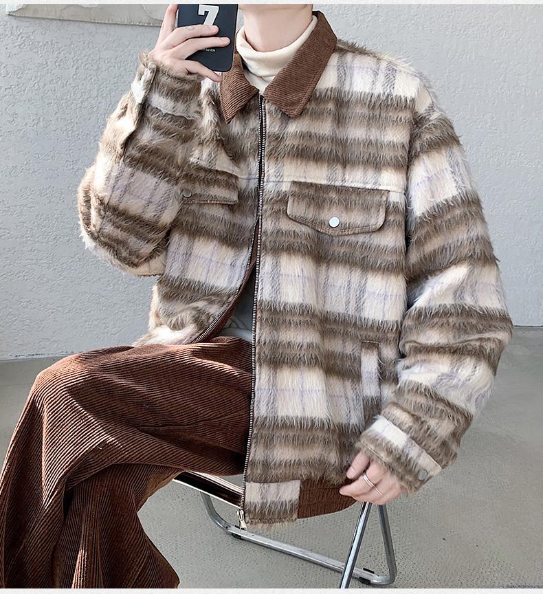 Khaki plaid, Dark blue plaid, Peach apricot plaid, Light blue plaid