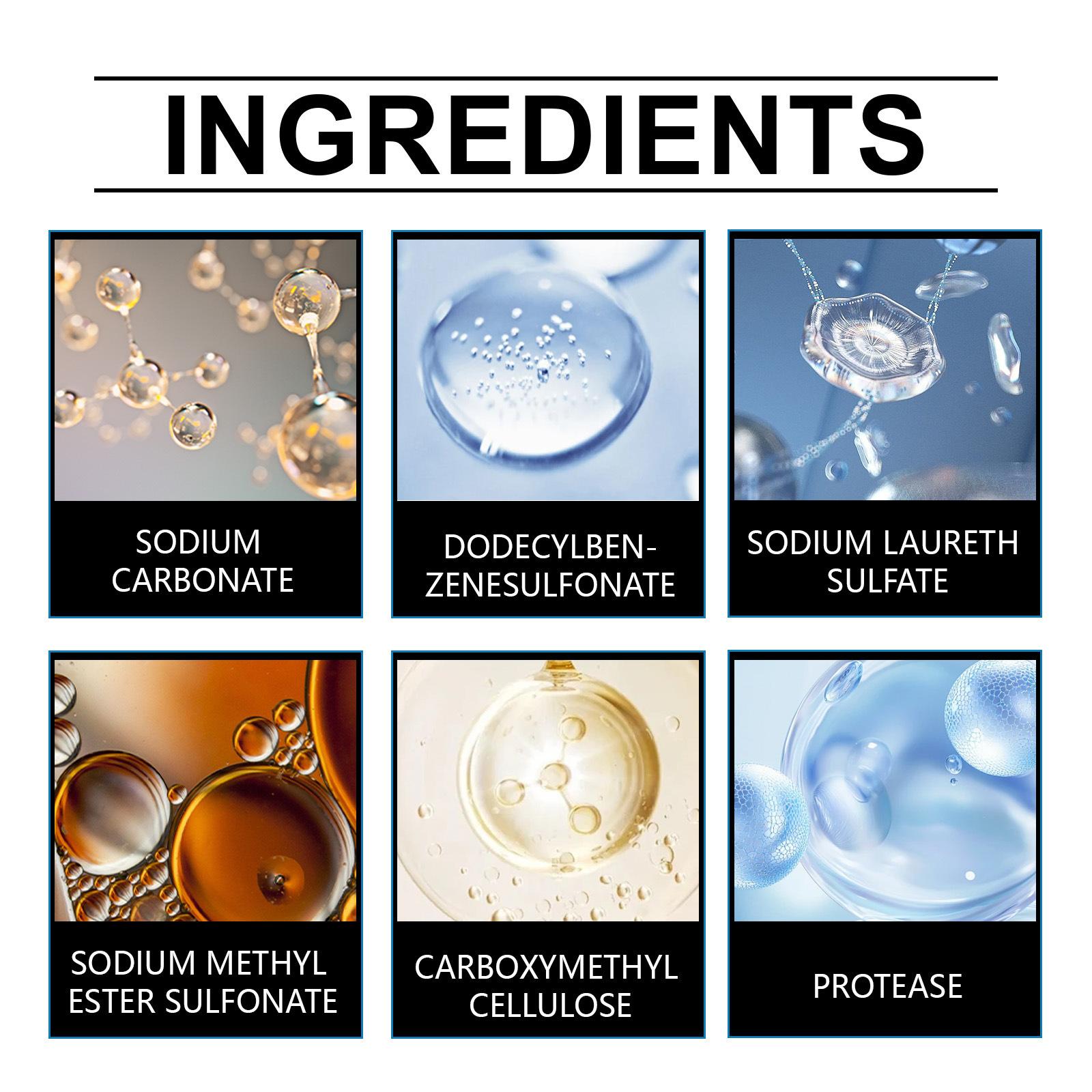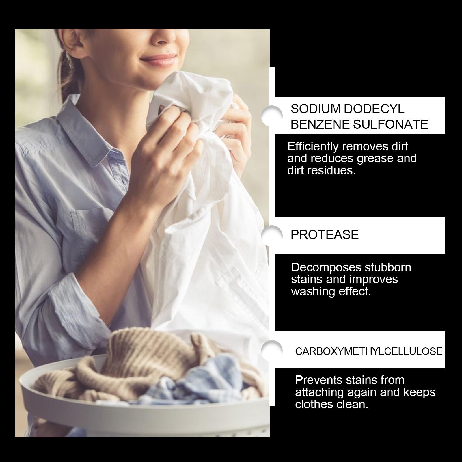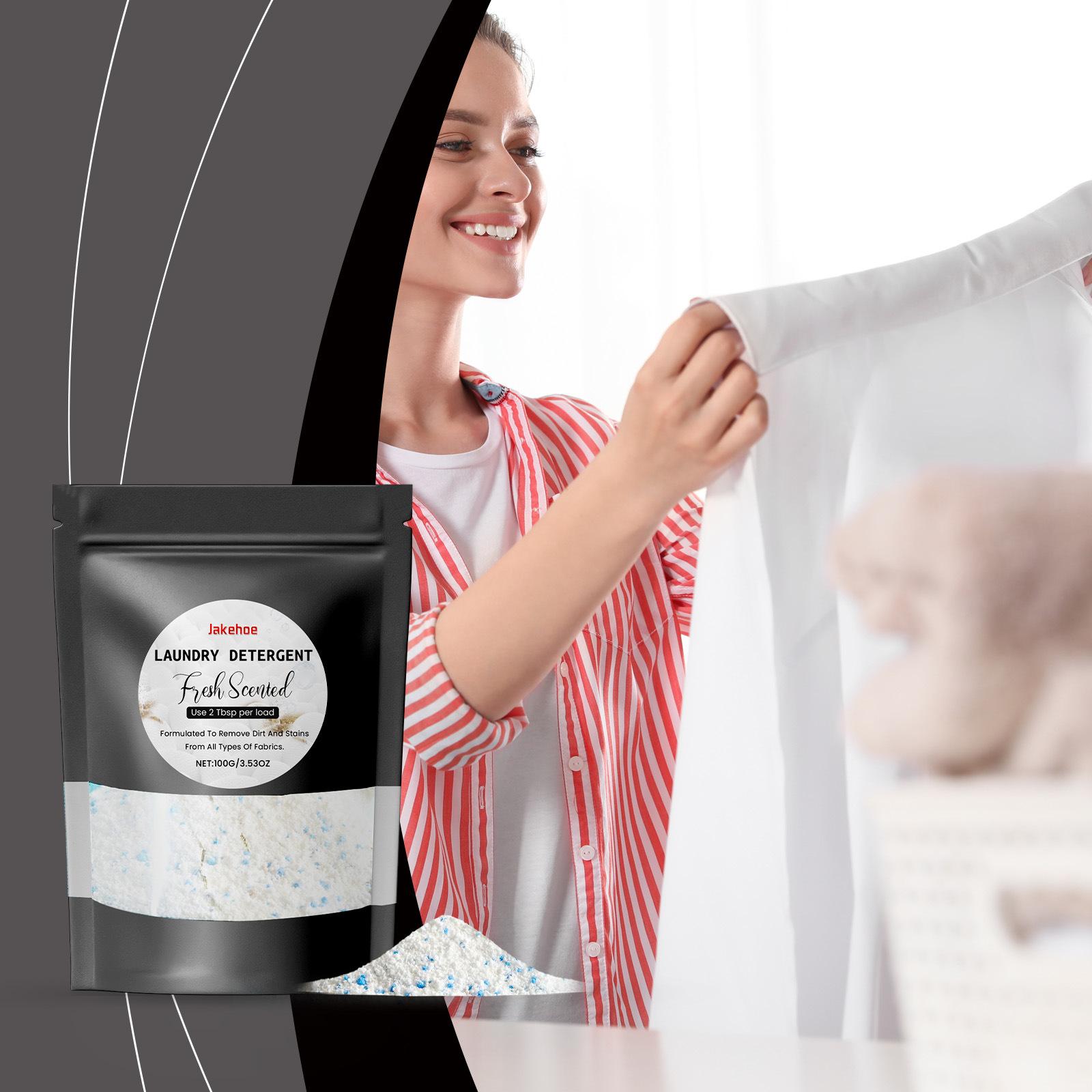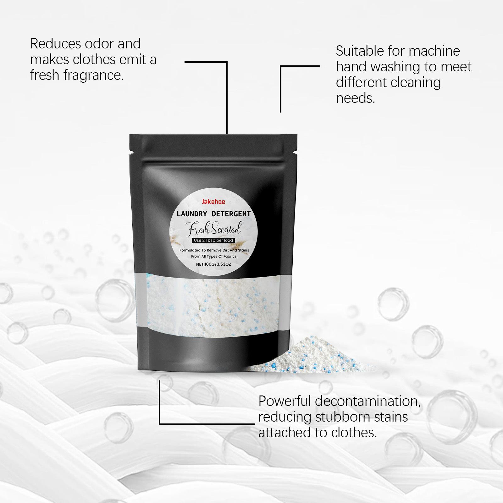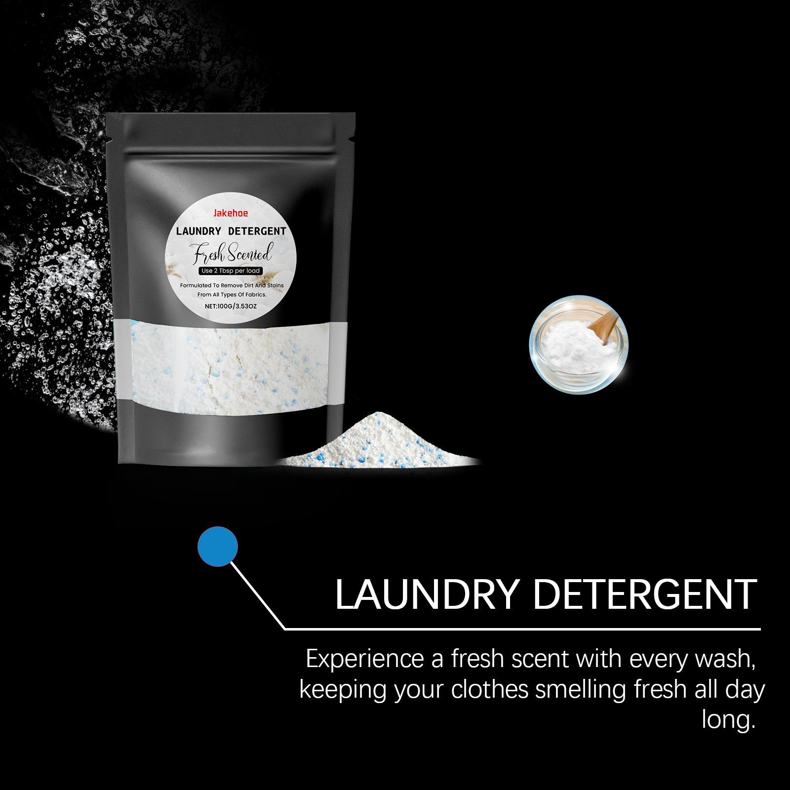 Polvo limpiador de ropa JAKEHOE, ingrediente suave, fragancia, cuidado duradero, tela, polvo limpiador de ropa natural y suave.