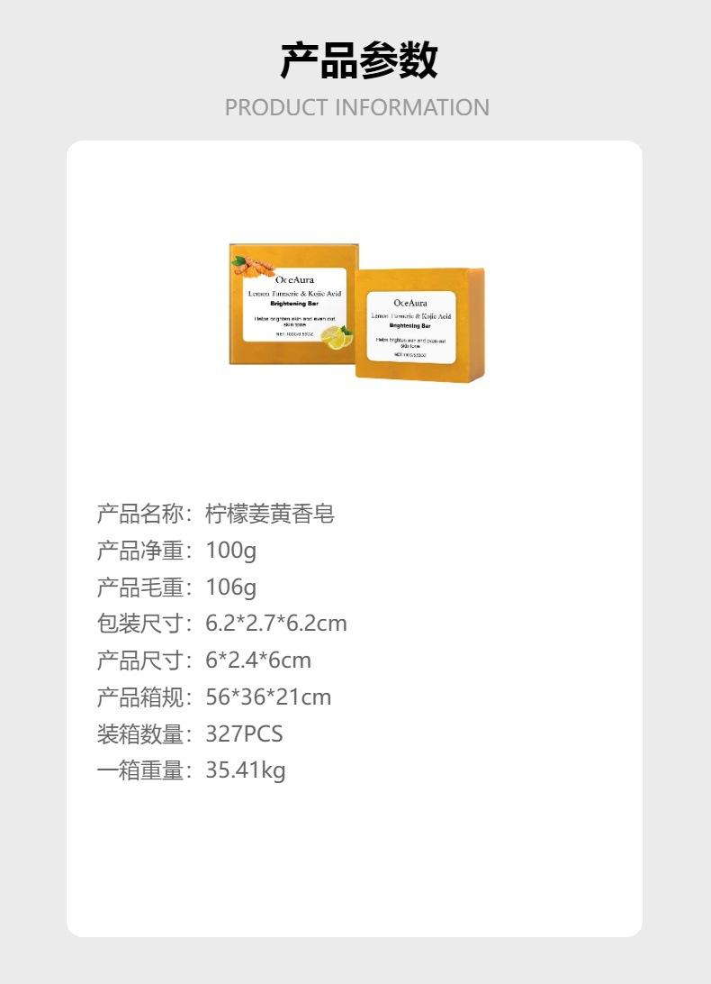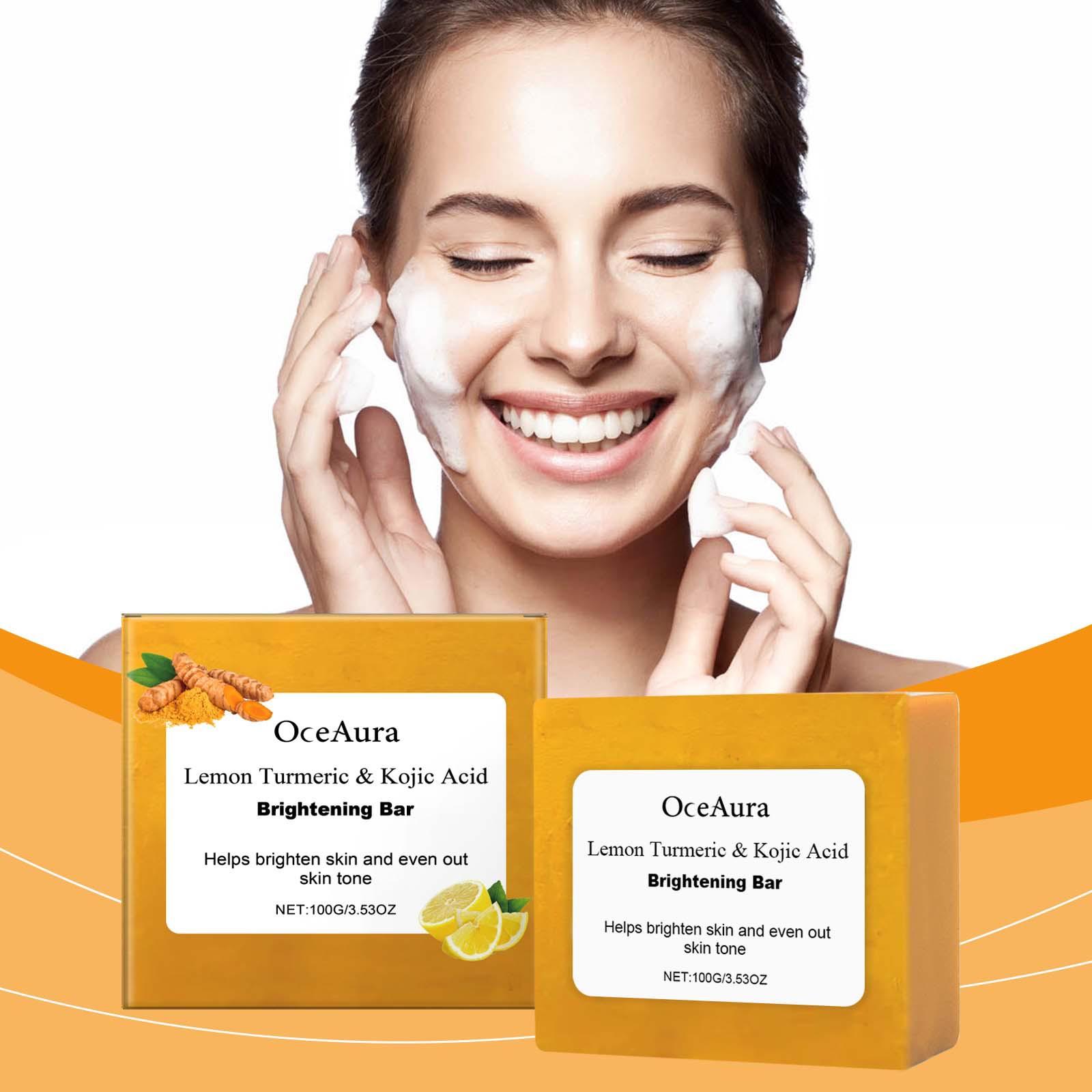 Jabón de limón y cúrcuma OCEAURA Baño limpiador facial Limpieza suave Cuidado de la piel brillante Aplicable en el rostro y el cuerpo