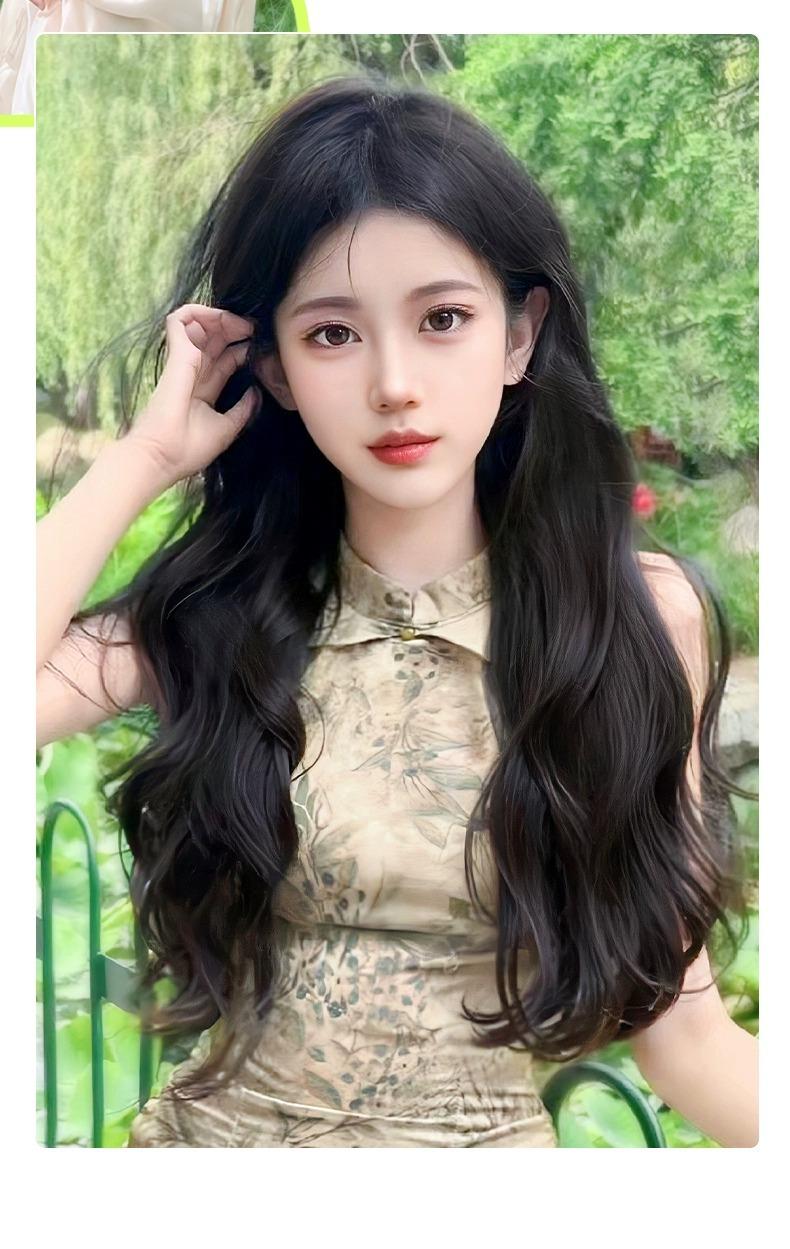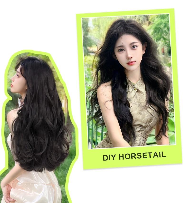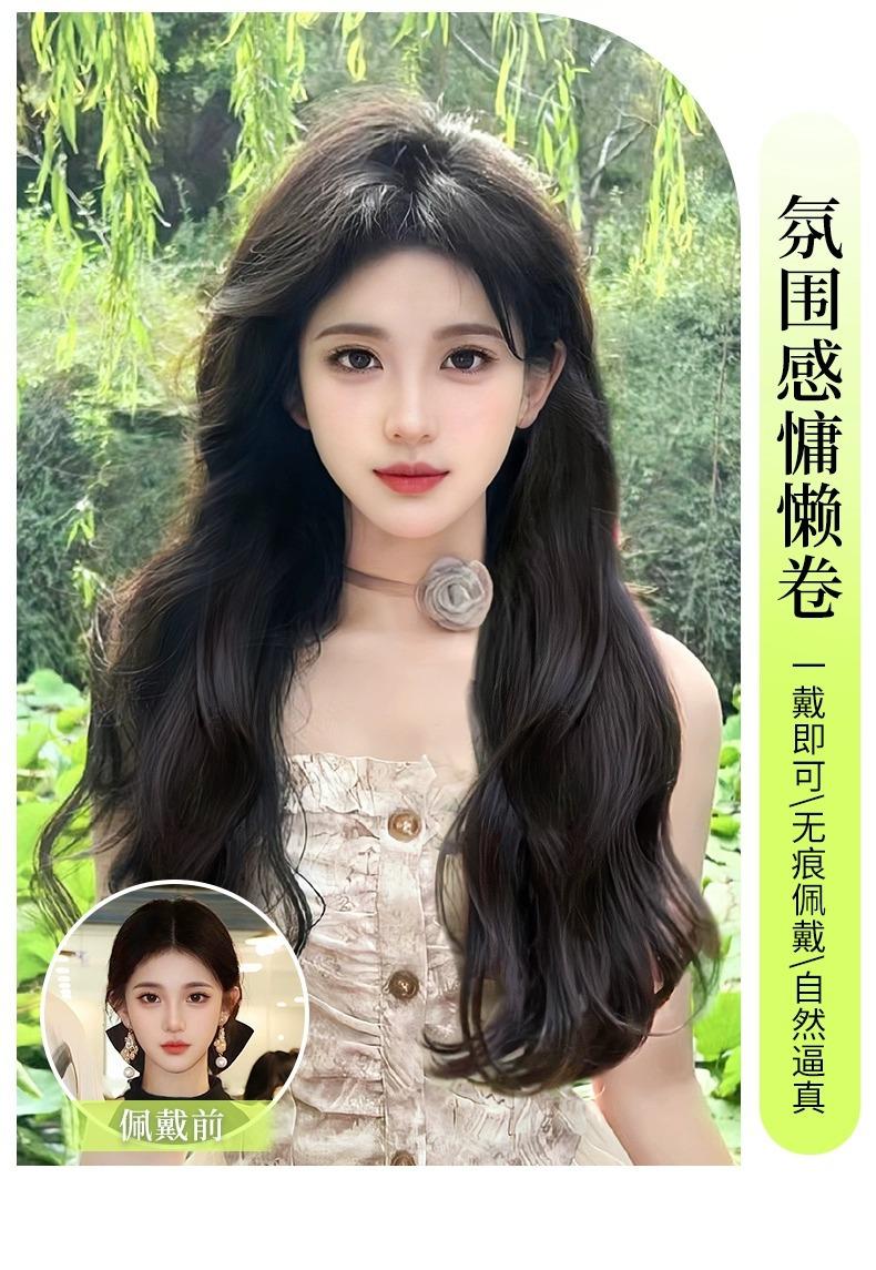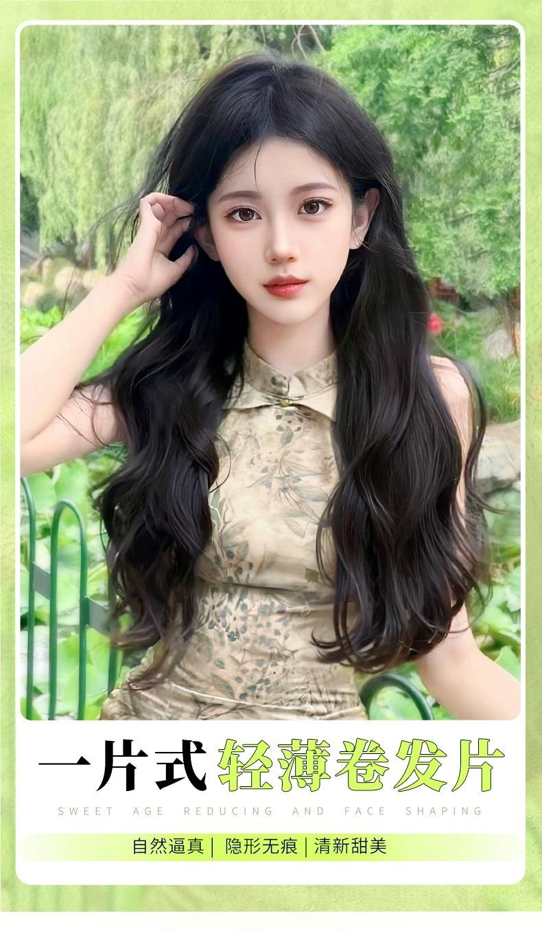 Peluca de mujer de cabello largo, extensión de cabello de una sola pieza, aumento de volumen, esponjoso, sin costuras, simulación de cabello largo y rizado, almohadilla de onda grande, pieza de cabello