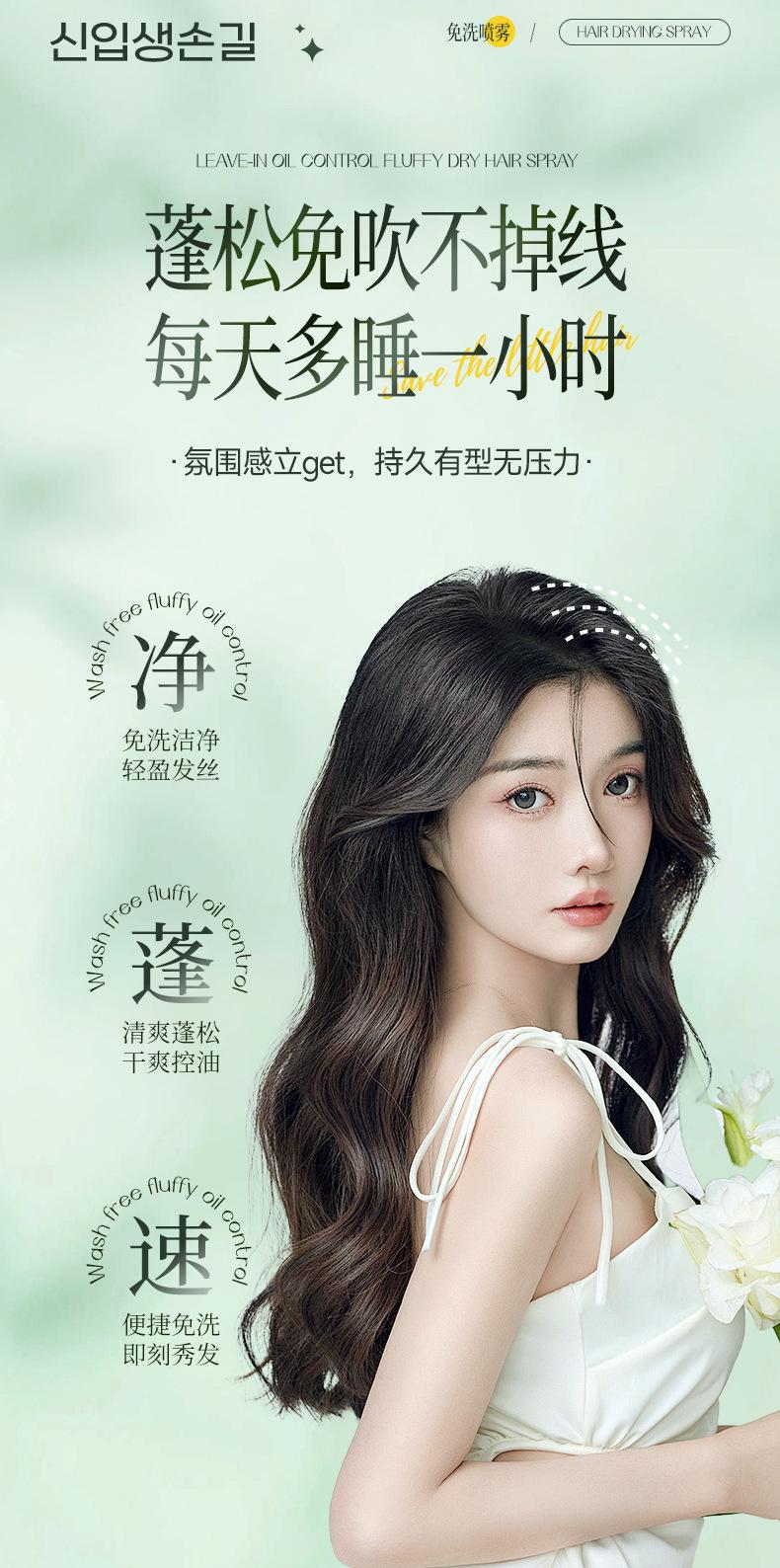 Spray fijador para cabello seco, esponjoso y sin aceite New Skin Magnolia, refrescante y suave, sin marcas, para una fijación superior.