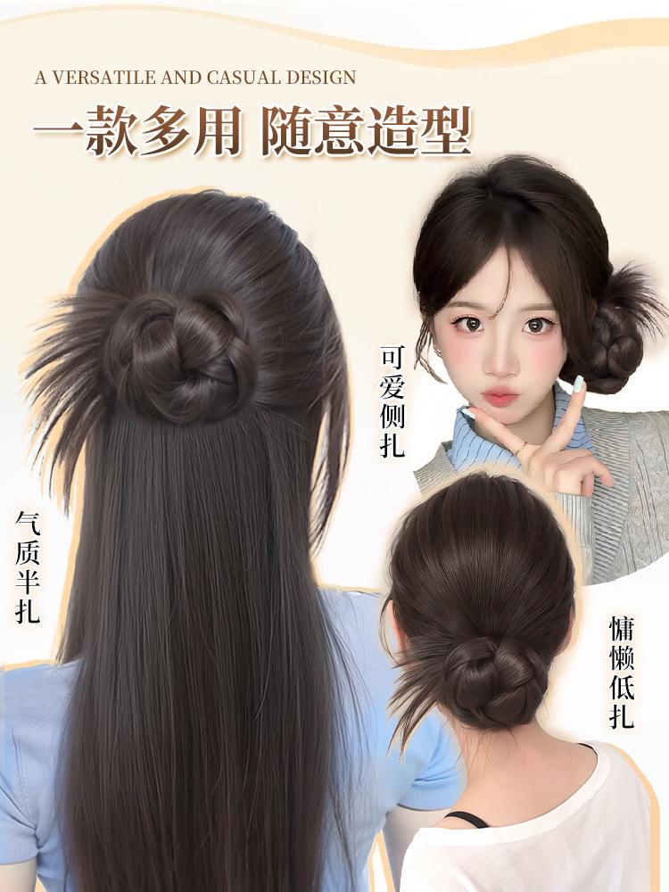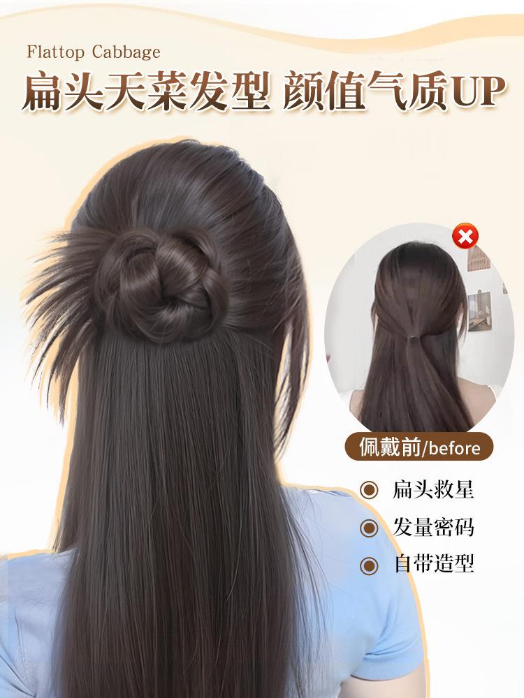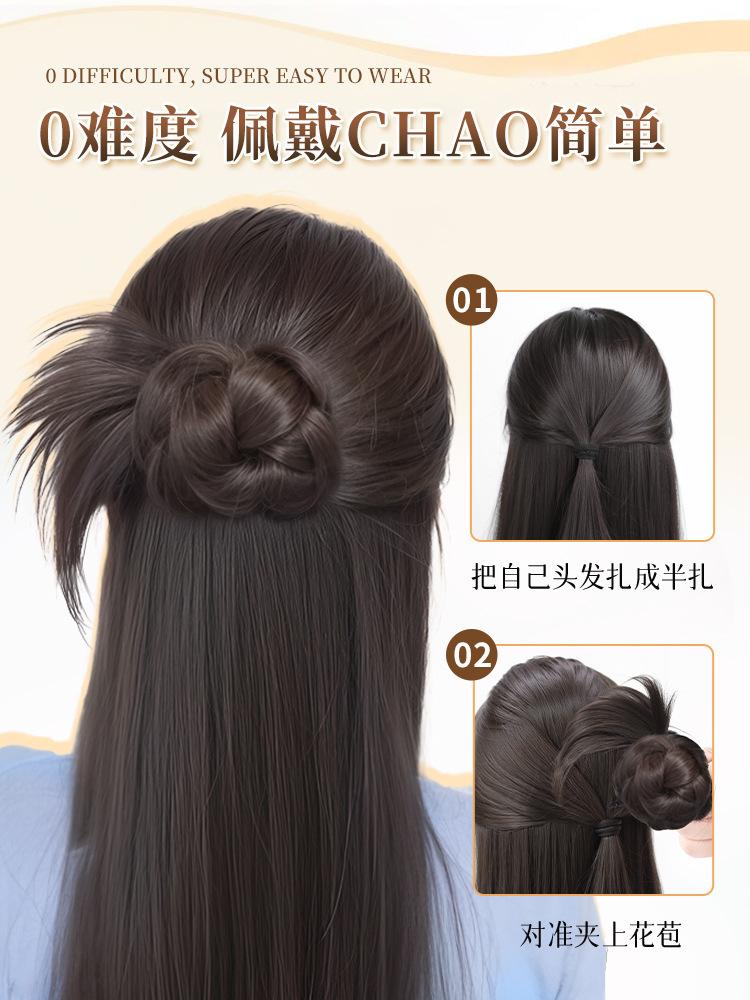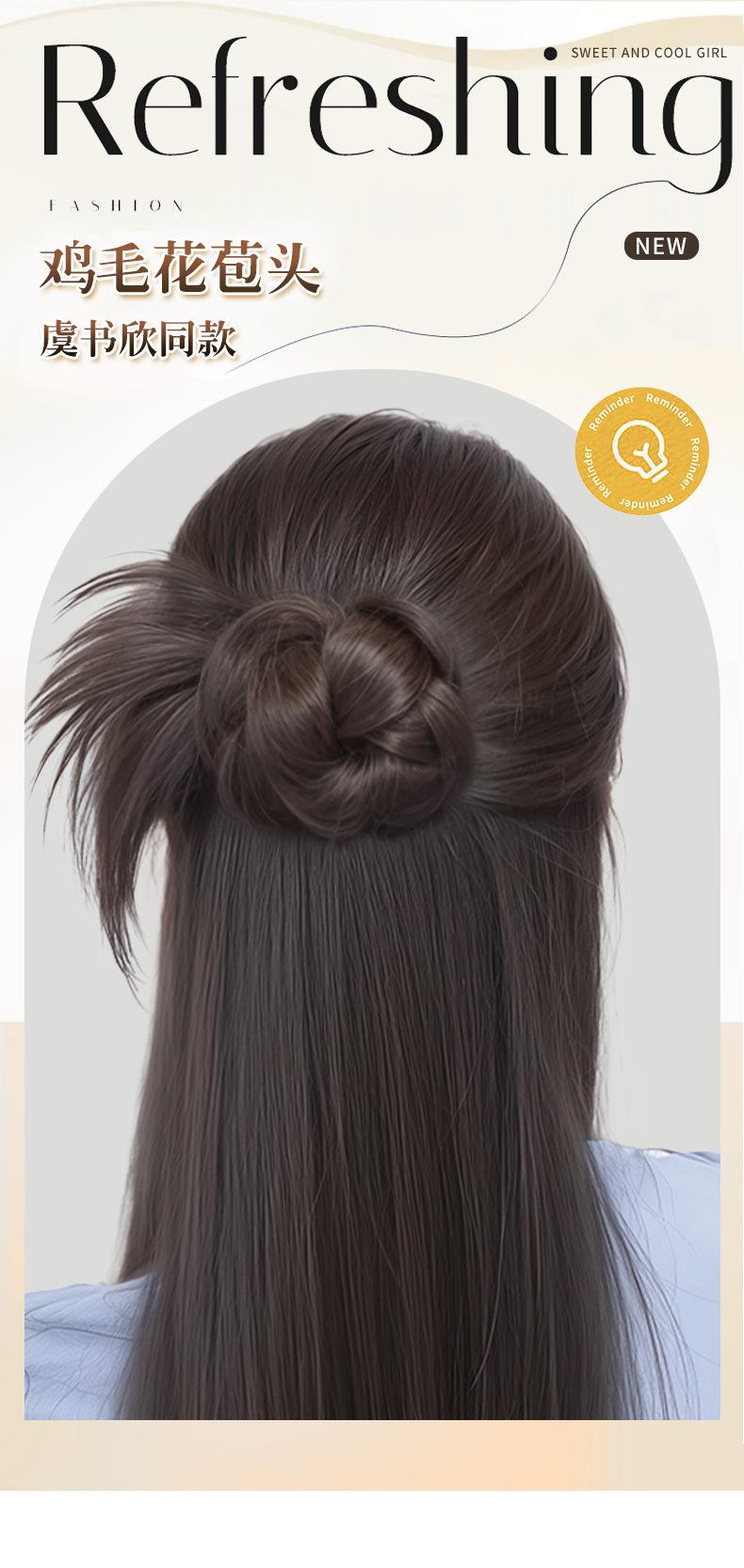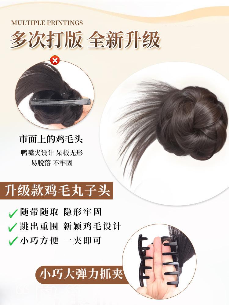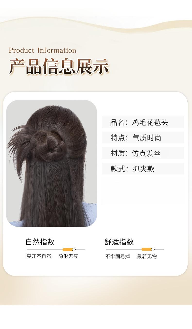 Moño Bajo Cabeza de Bola de Plumas de Pollo Cabello Artificial para Mujer Natural Esponjoso Clip de Agarre Peluca Artefacto para el Cabello Brote de Flor Bolsa para Peluca