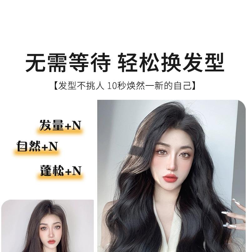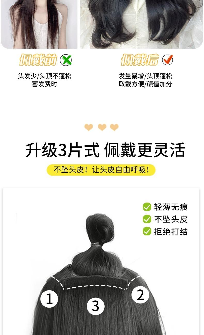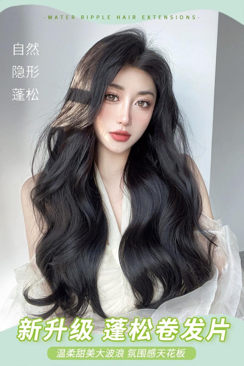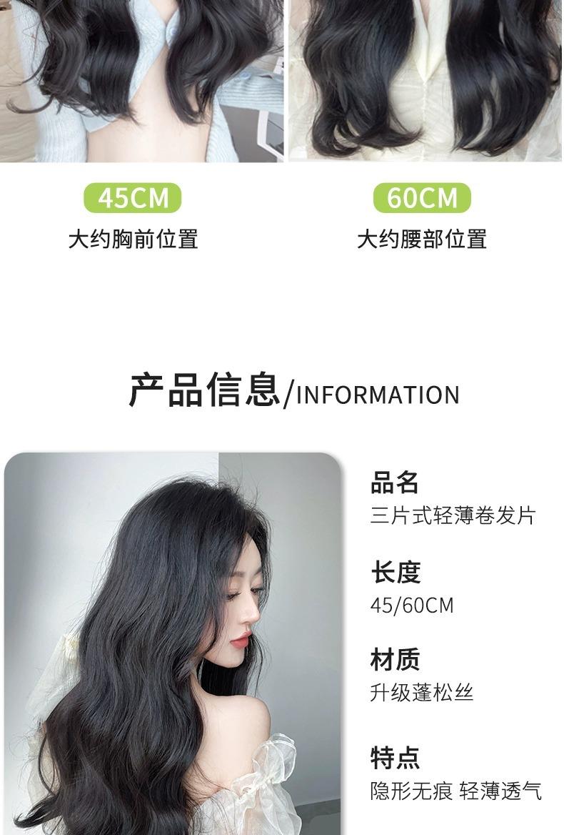Peluca de pelo rizado de tres piezas, esponjosa, de ondas grandes, invisible, sin costuras, extensión de cabello, peluca, parche de cabello largo para mujer