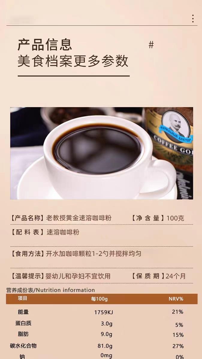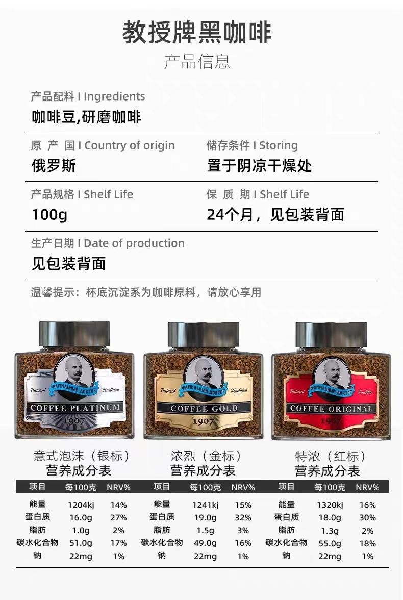 Café Importado Profesor Viejo Café Negro Instantáneo Espresso Ruso Liofilizado en Polvo Granulado 100g