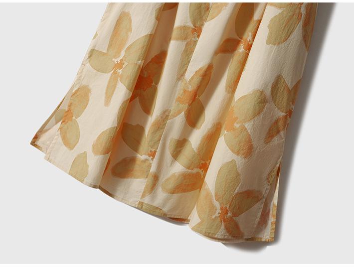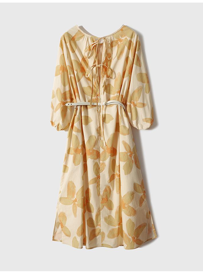 Vestido de Manga Farol de Algodón con Estilo Vacacional Transfronterizo de Comercio Exterior/Cinturón Gratis