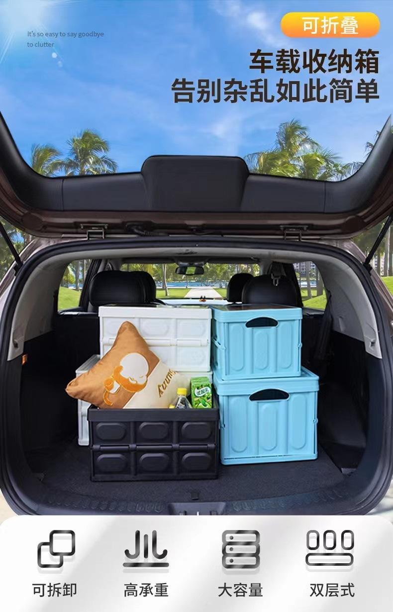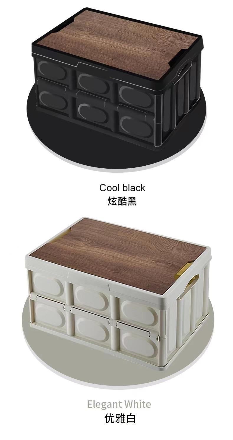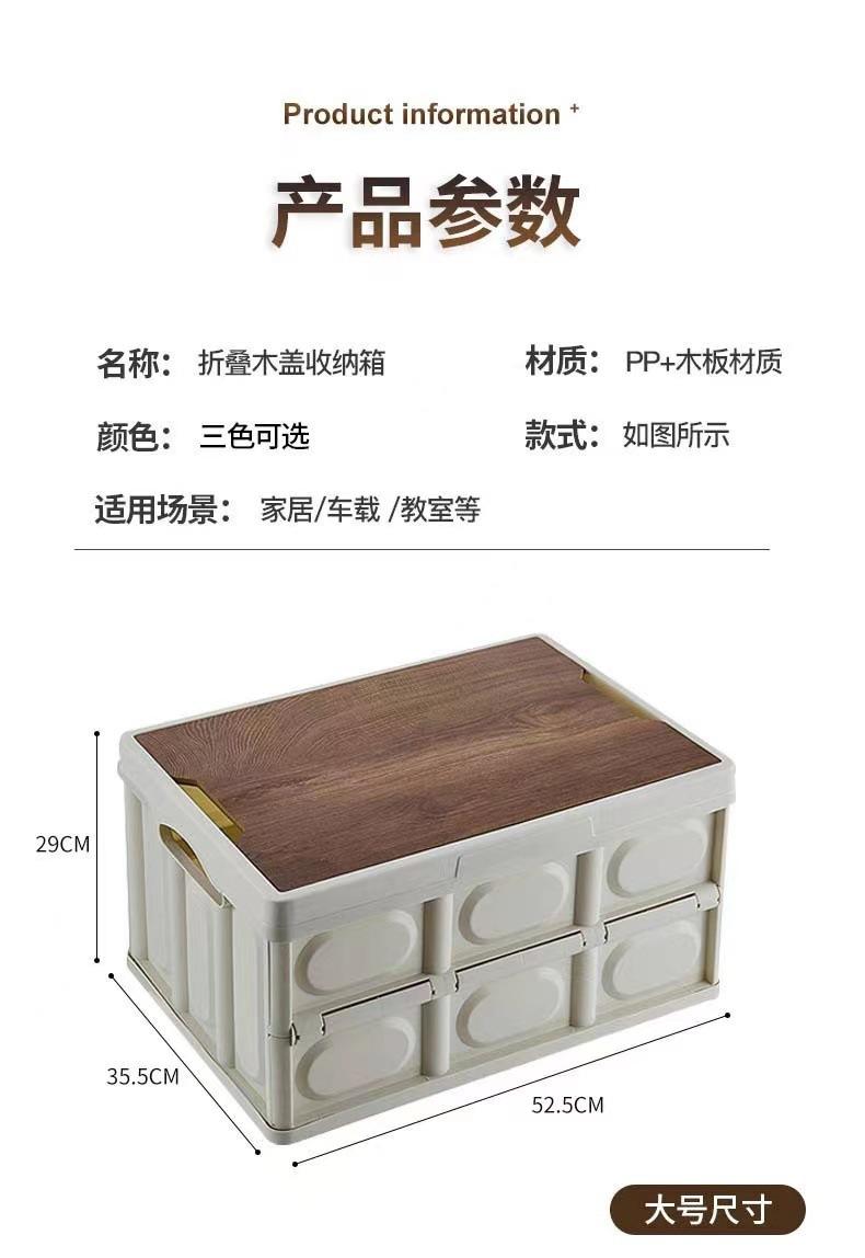 Caja de Almacenamiento Plegable para Maletero de Coche, Caja de Almacenamiento para Coche con Tapa de Madera, Doble Uso para Hogar y Coche, Caja Organizadora Plegable Portátil