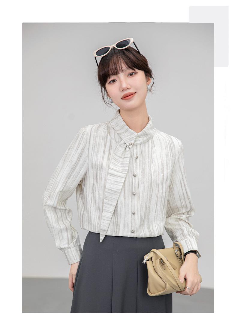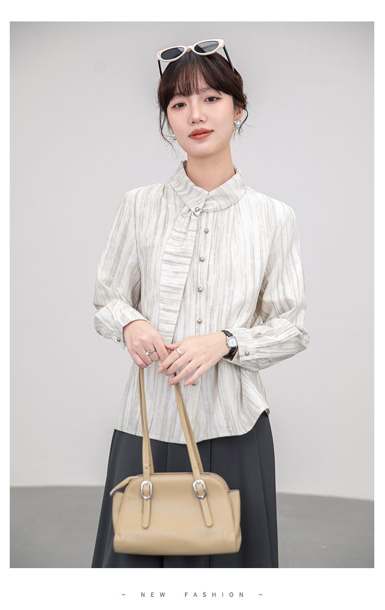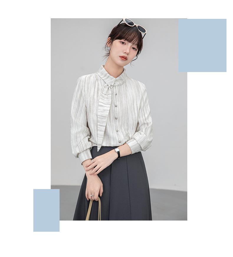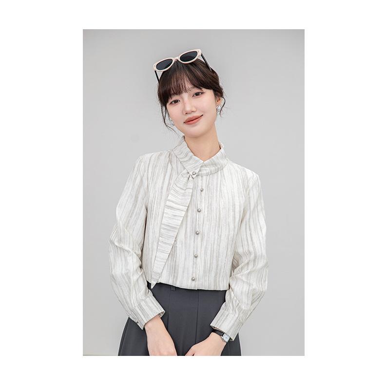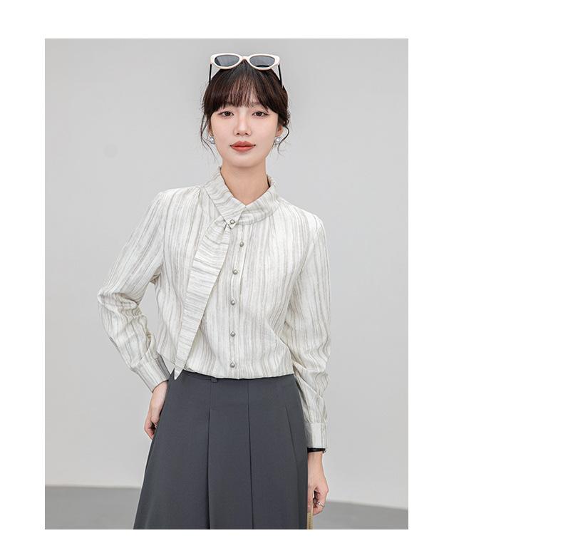 Camisa Profesional de Manga Larga para Mujer Primavera y Otoño 2025 Nuevo Diseño de Nicho Sentido Raya Camisa Chic Top de Rayas Verticales