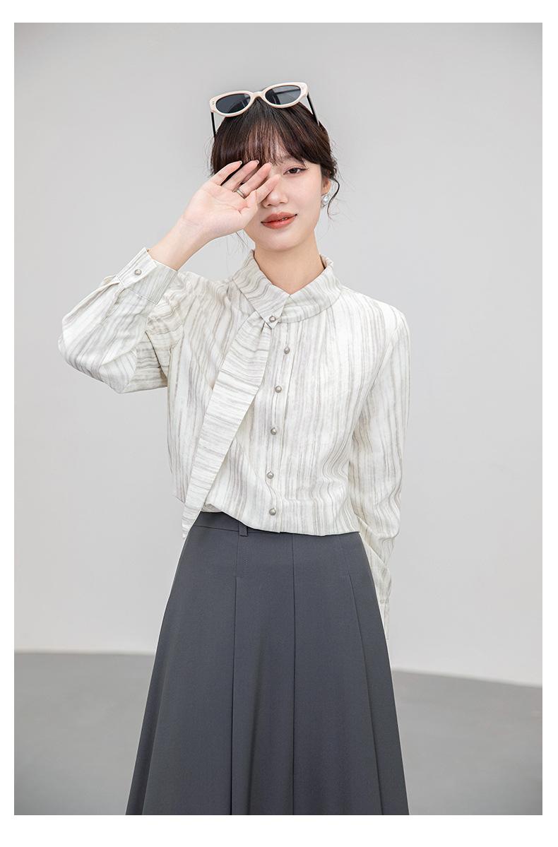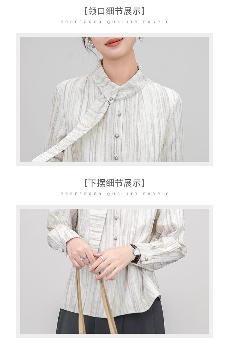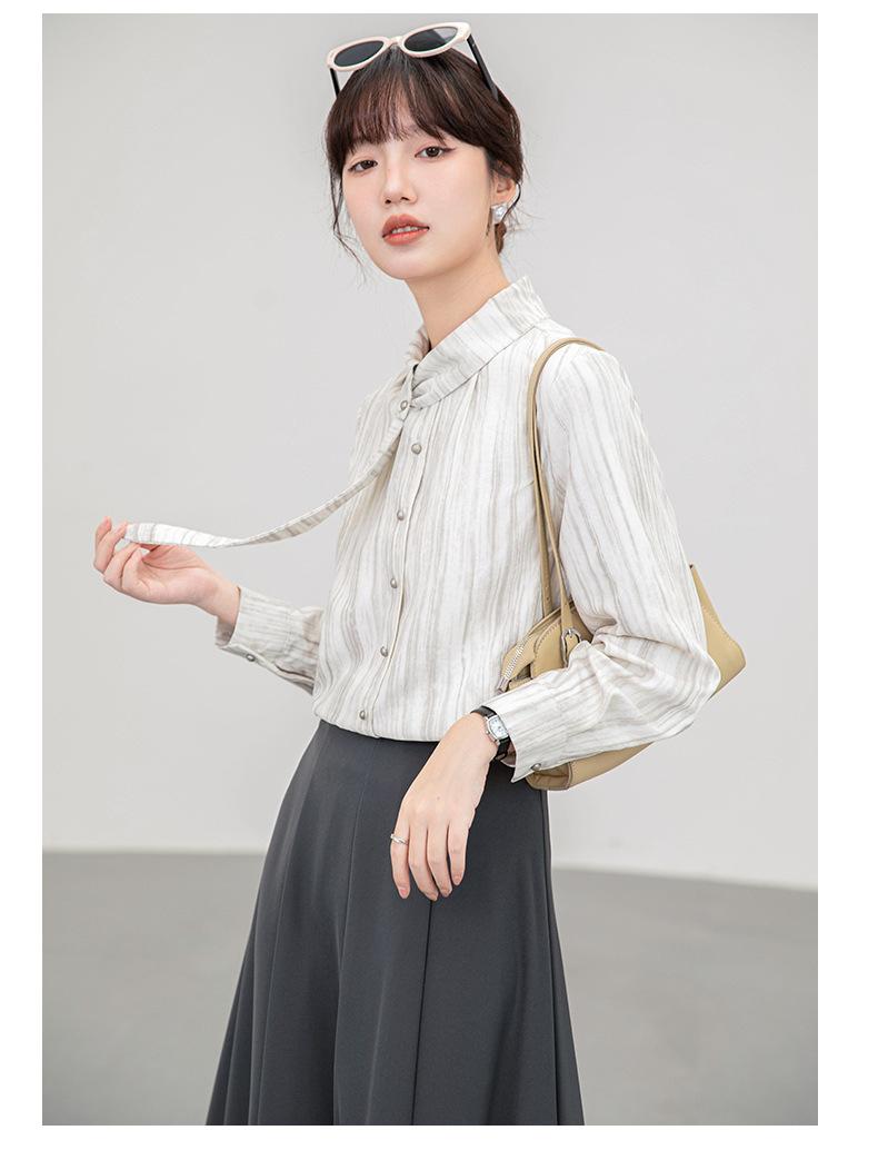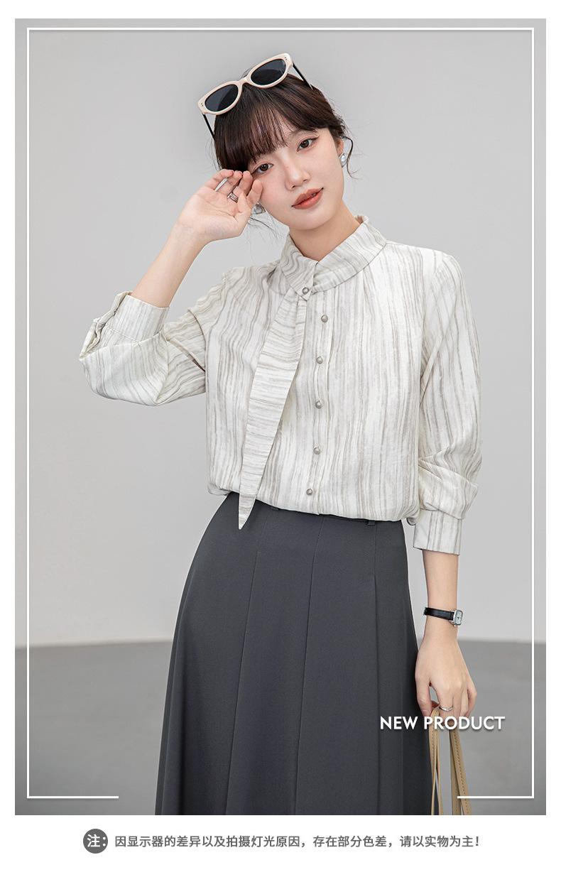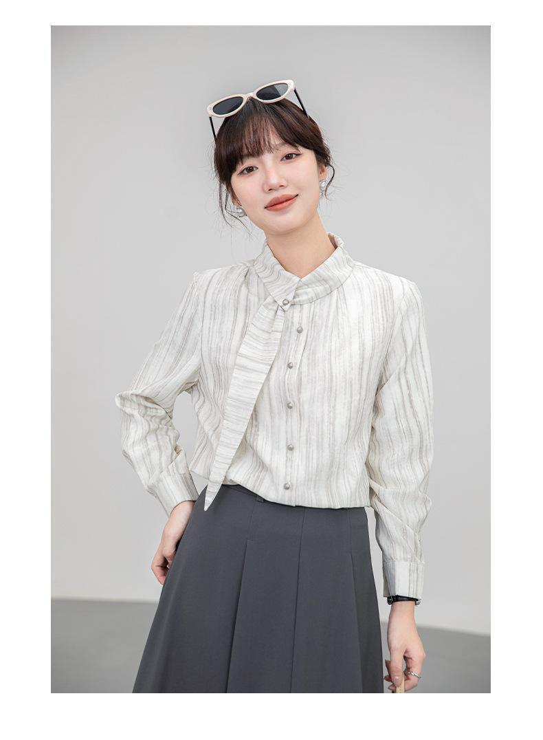 Camisa Profesional de Manga Larga para Mujer Primavera y Otoño 2025 Nuevo Diseño de Nicho Sentido Raya Camisa Chic Top de Rayas Verticales