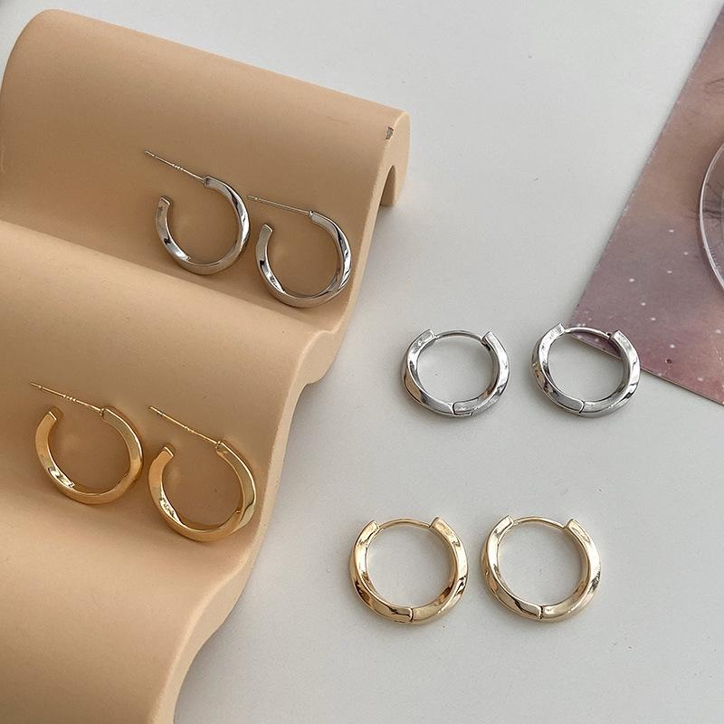 2025 Nuevos Aretes para Mujer Diseño Nicho Aretes de Lujo Ligero Estilo Retro Estilo Francés Aretes de Aro Sencillos al Mayoreo