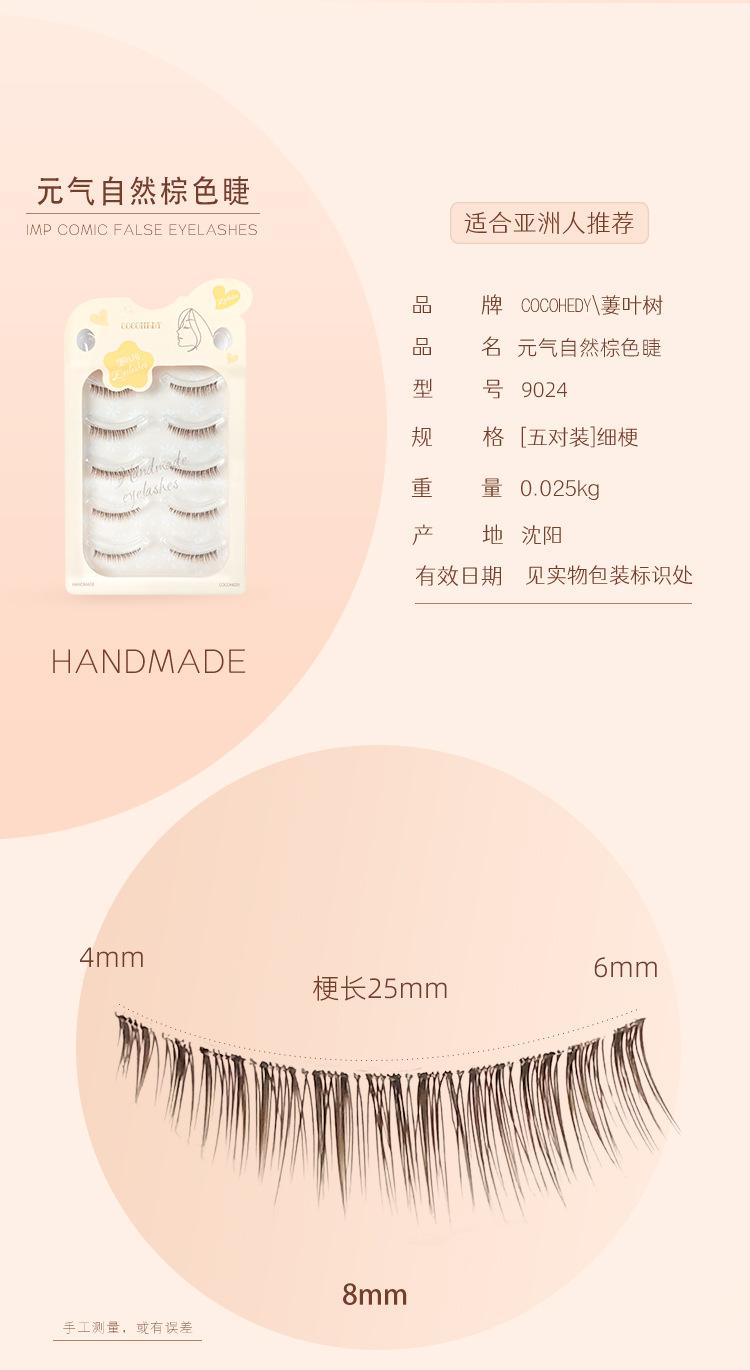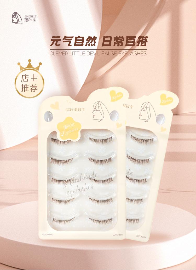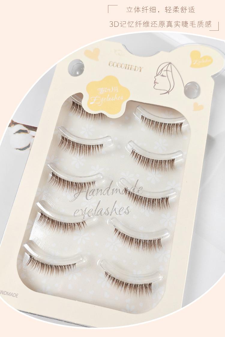 Pestañas postizas una pieza marrón cinco pares de ojos 8mm simulación natural sensación de madre pestañas de tallo transparente al por mayor