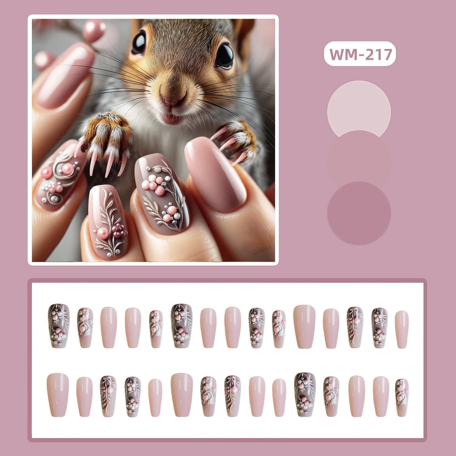WM-217 cuentas de frijol rosa uñas postizas transfronterizas ramas de jardín rosa primavera fresca usan rodajas de uñas al por mayor