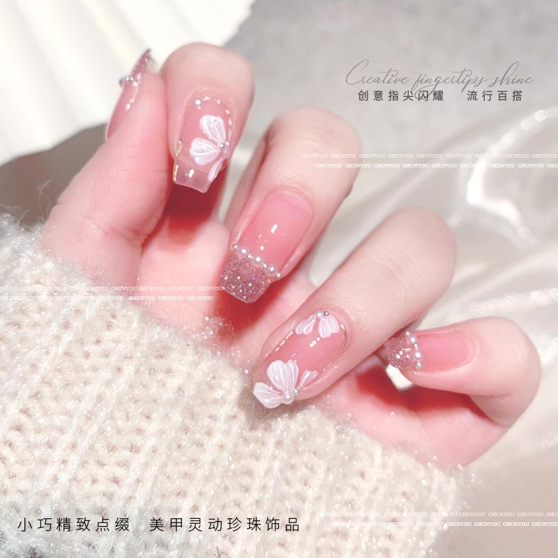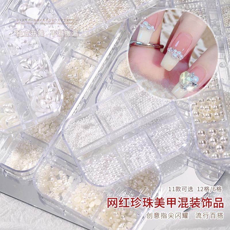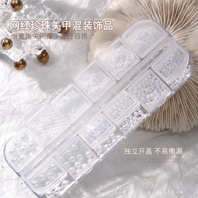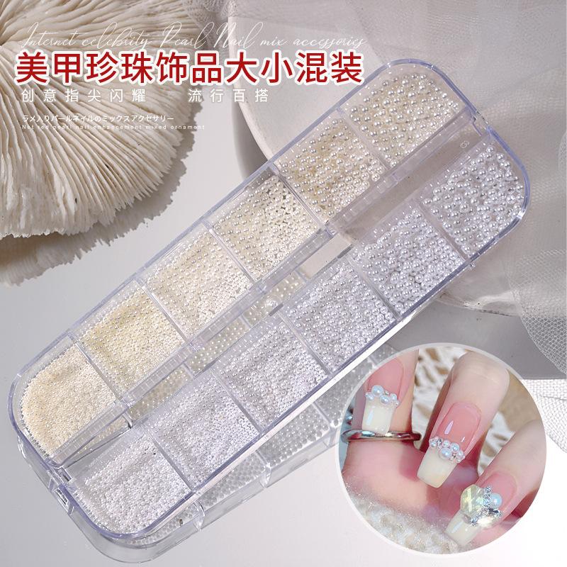 Perlas explosivas de fondo plano de varios tamaños para manicura japonesa, accesorios estéreo para uñas, cuentas de taladro que no se despegan