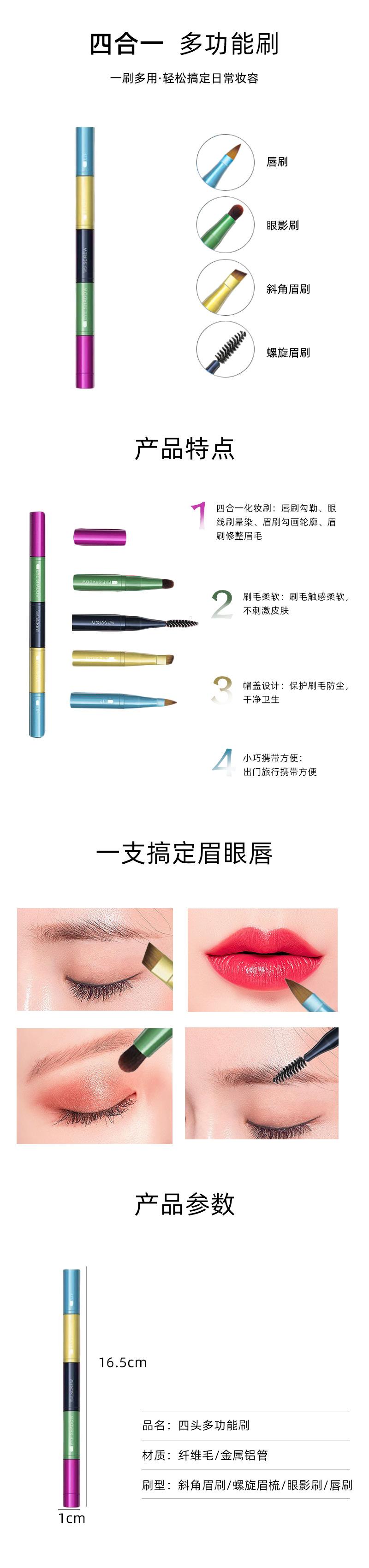 Juego de brochas de maquillaje cuatro en uno, herramientas de belleza, brocha portátil para ojos, pestañas, cejas, labios, maquillaje facial, base