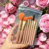 5 makeup brushes with mirror (apricot color) long style