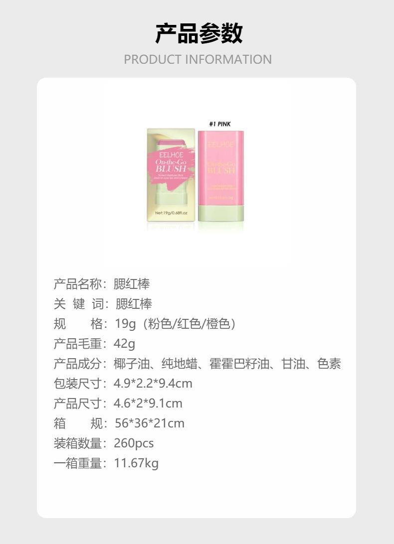EELHOE Barra de Rubor Ligera Natural Maquillaje Nude Ajuste Iluminador Tridimensional Delicada Barra de Rubor Multifuncional