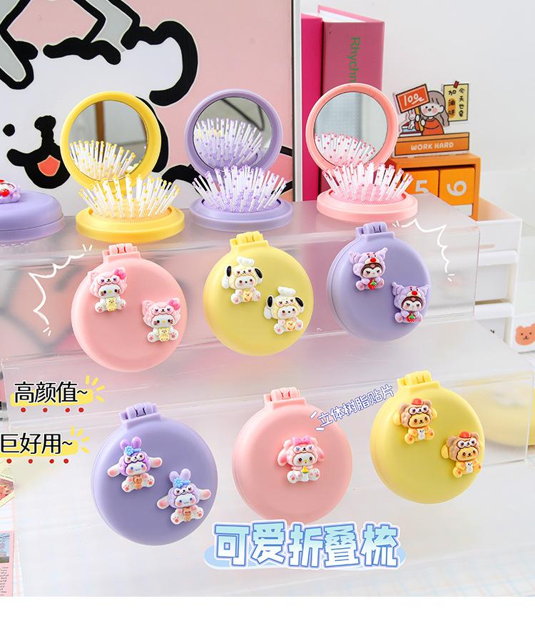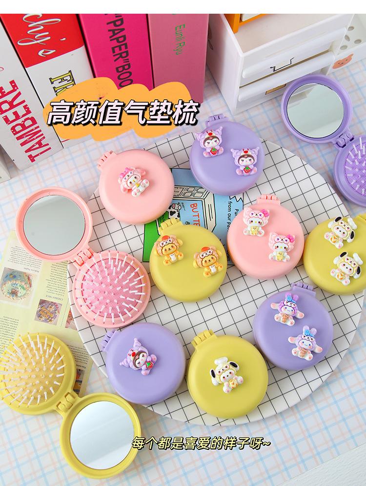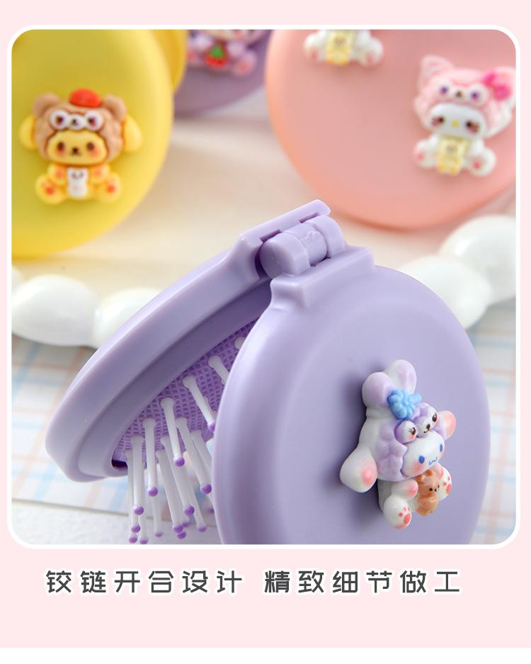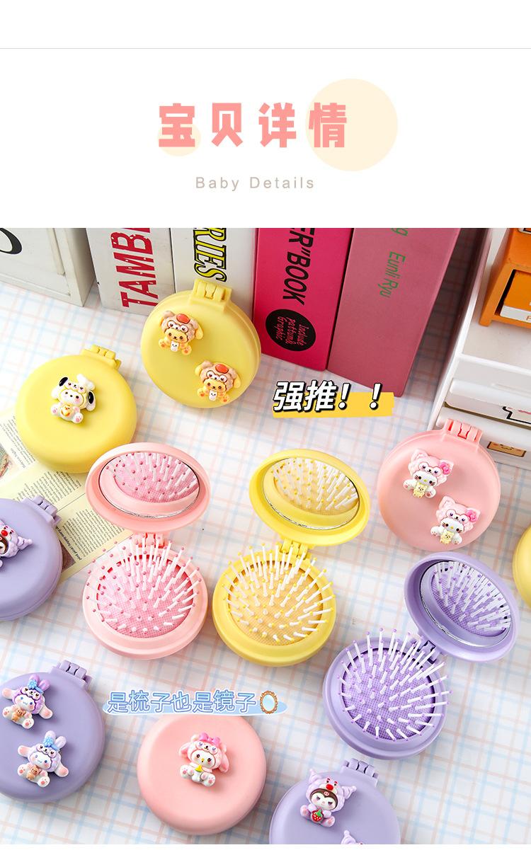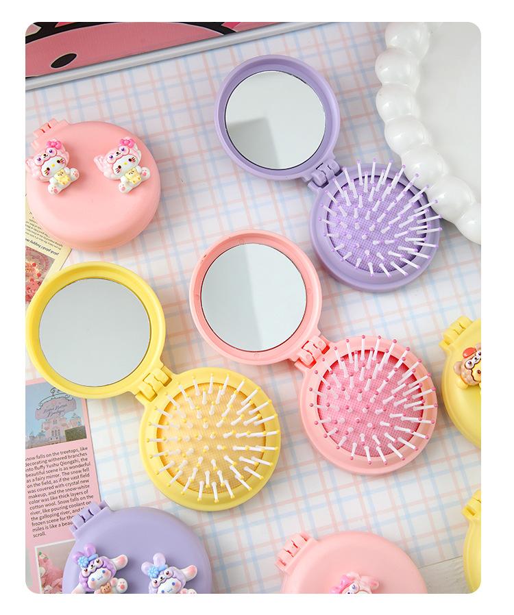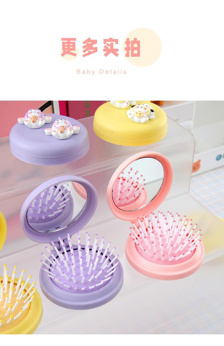 Peine de masaje plegable con diseño de dibujos animados, suave y bonito, con espejo, todo en uno, mini peine portátil con cápsula de aire para niña.