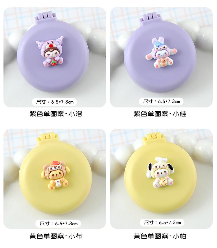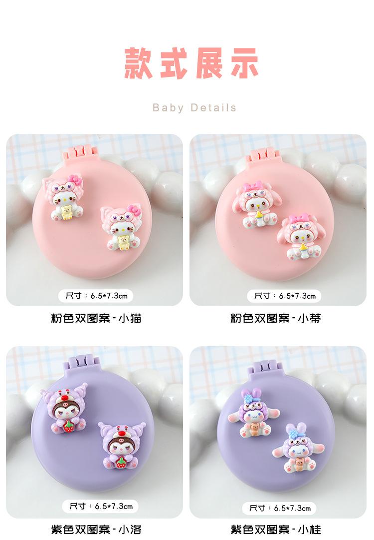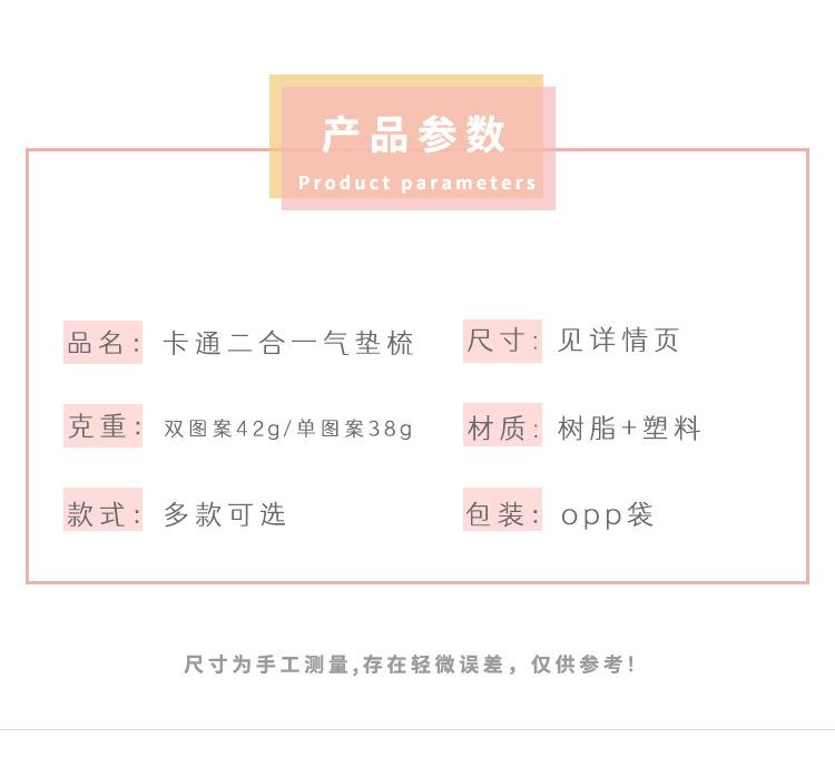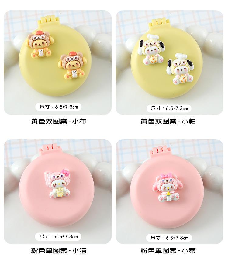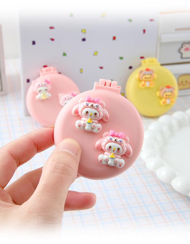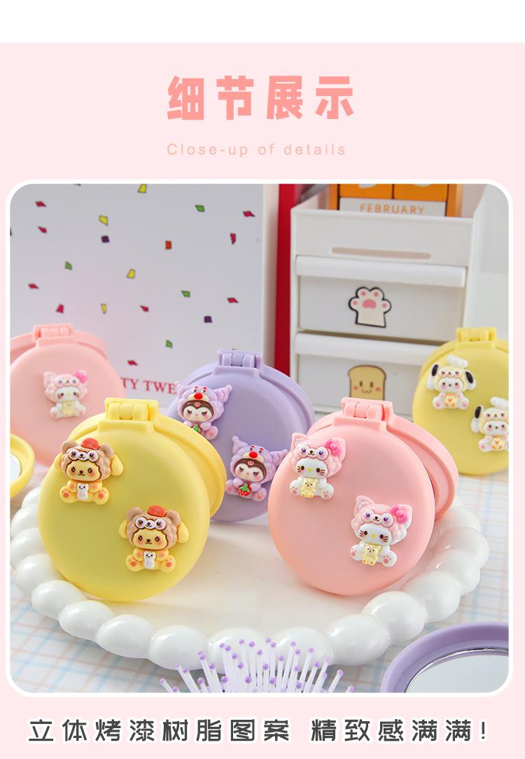 Peine de masaje plegable con diseño de dibujos animados, suave y bonito, con espejo, todo en uno, mini peine portátil con cápsula de aire para niña.