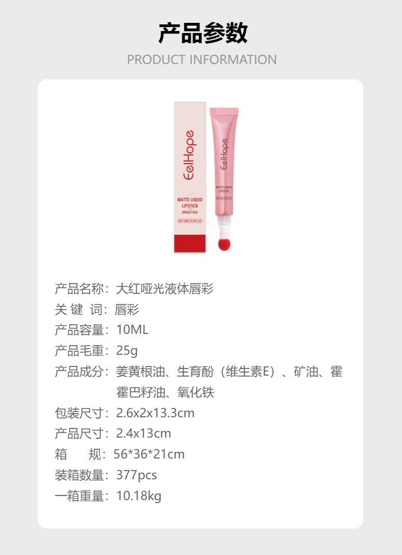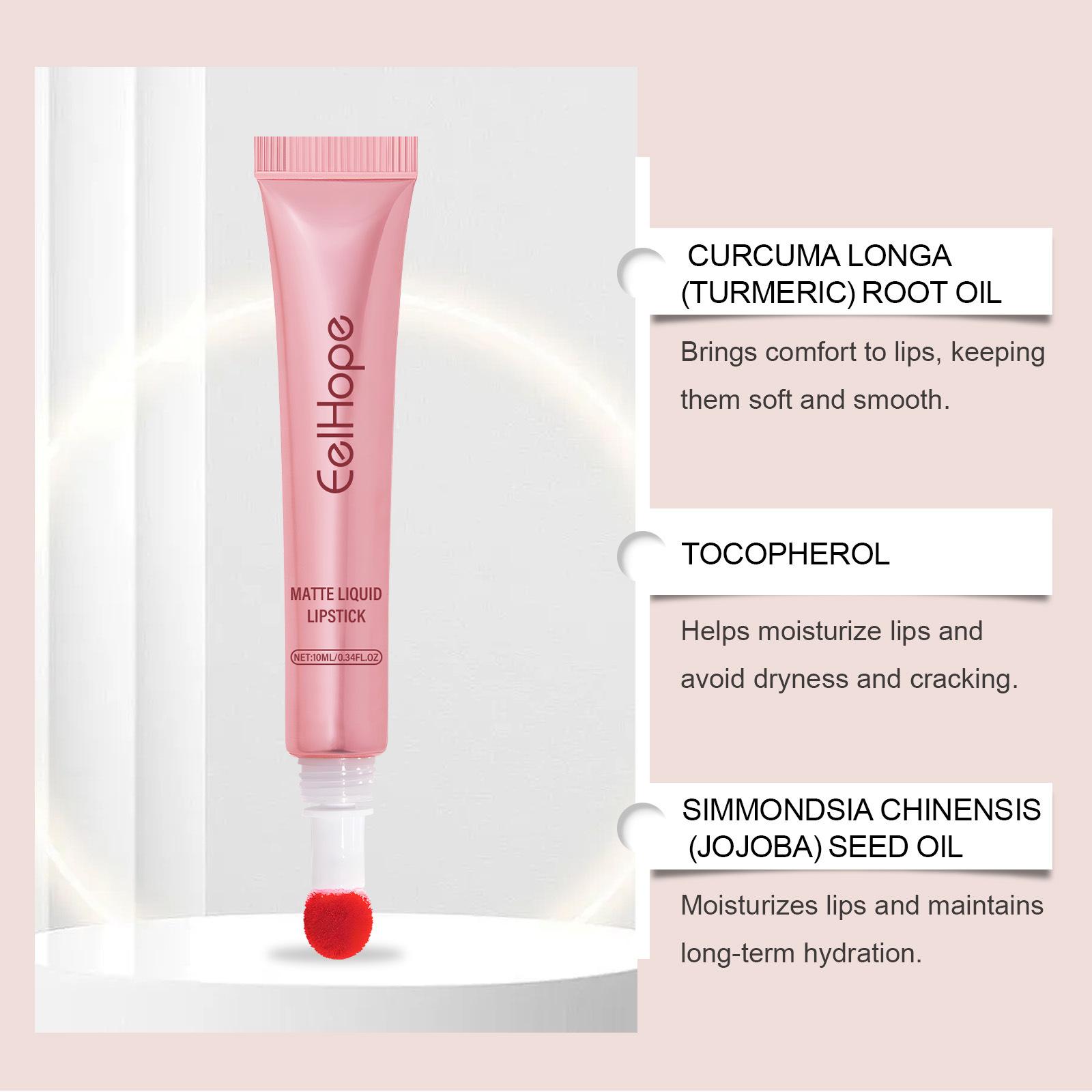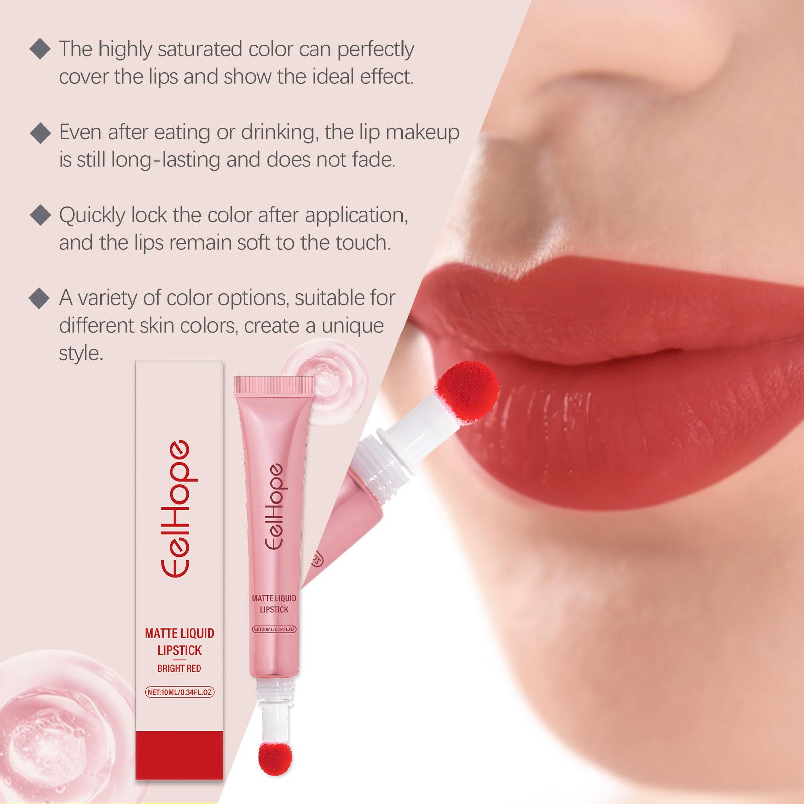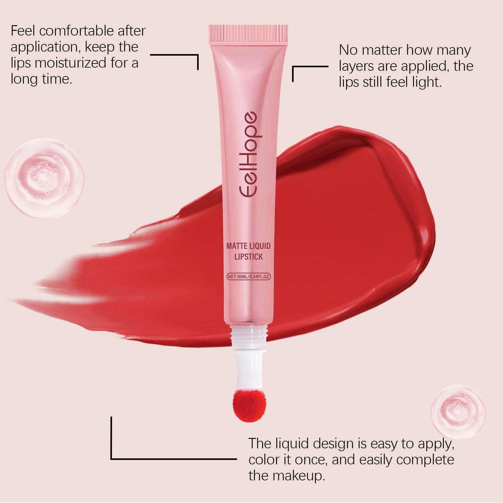 Brillo labial líquido EELHOPE rojo mate, lápiz labial líquido, taza antiadherente, brillo labial de terciopelo de color natural