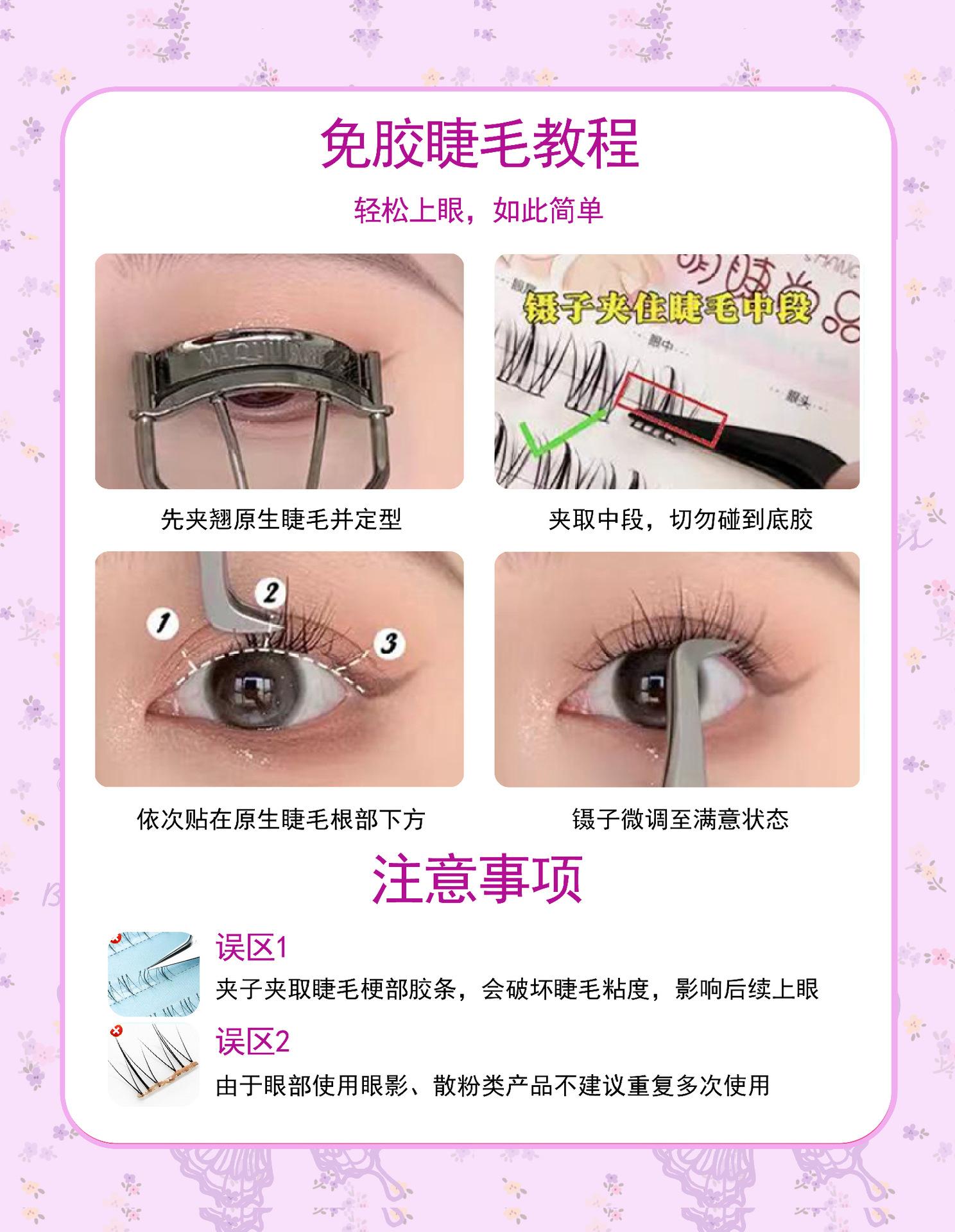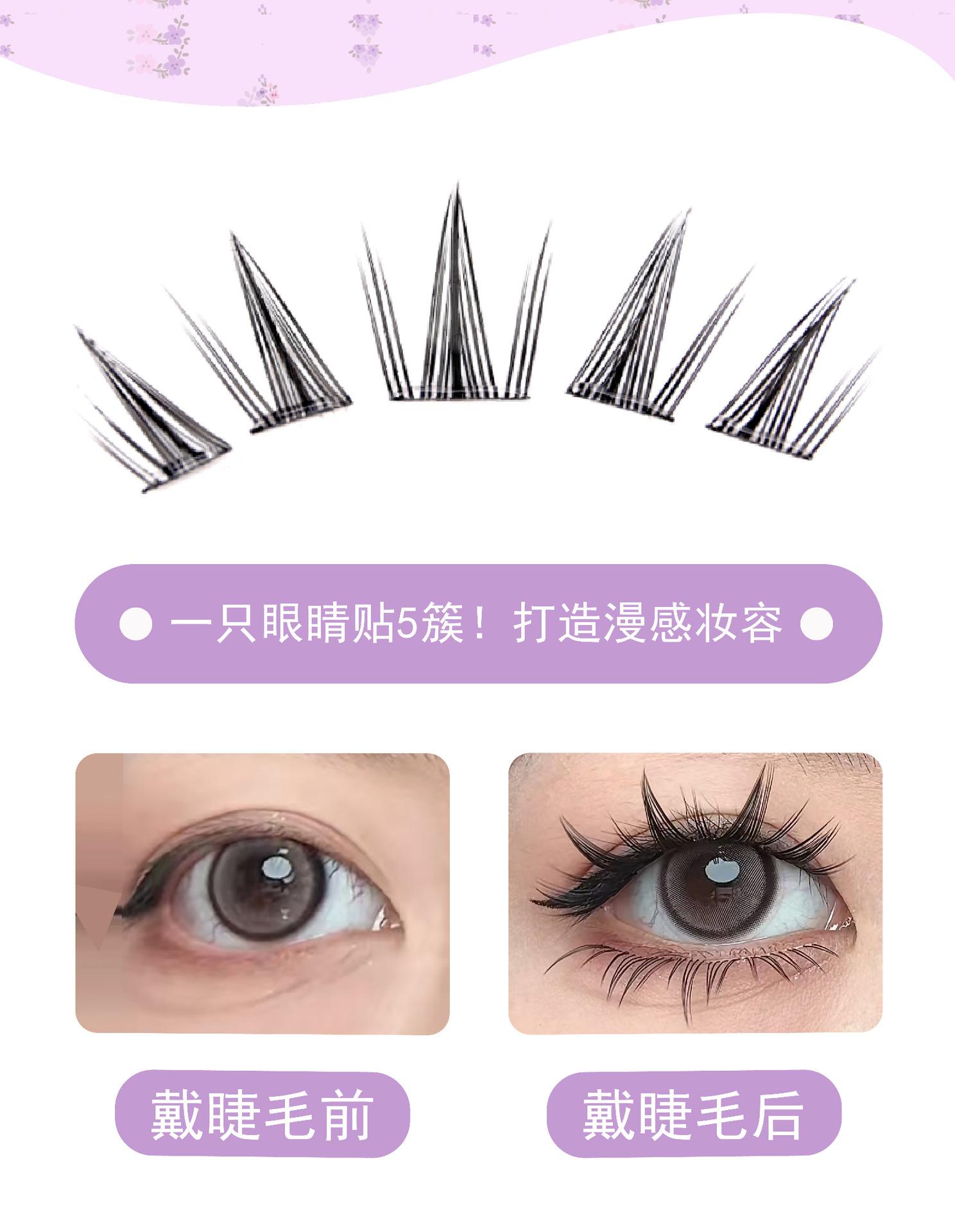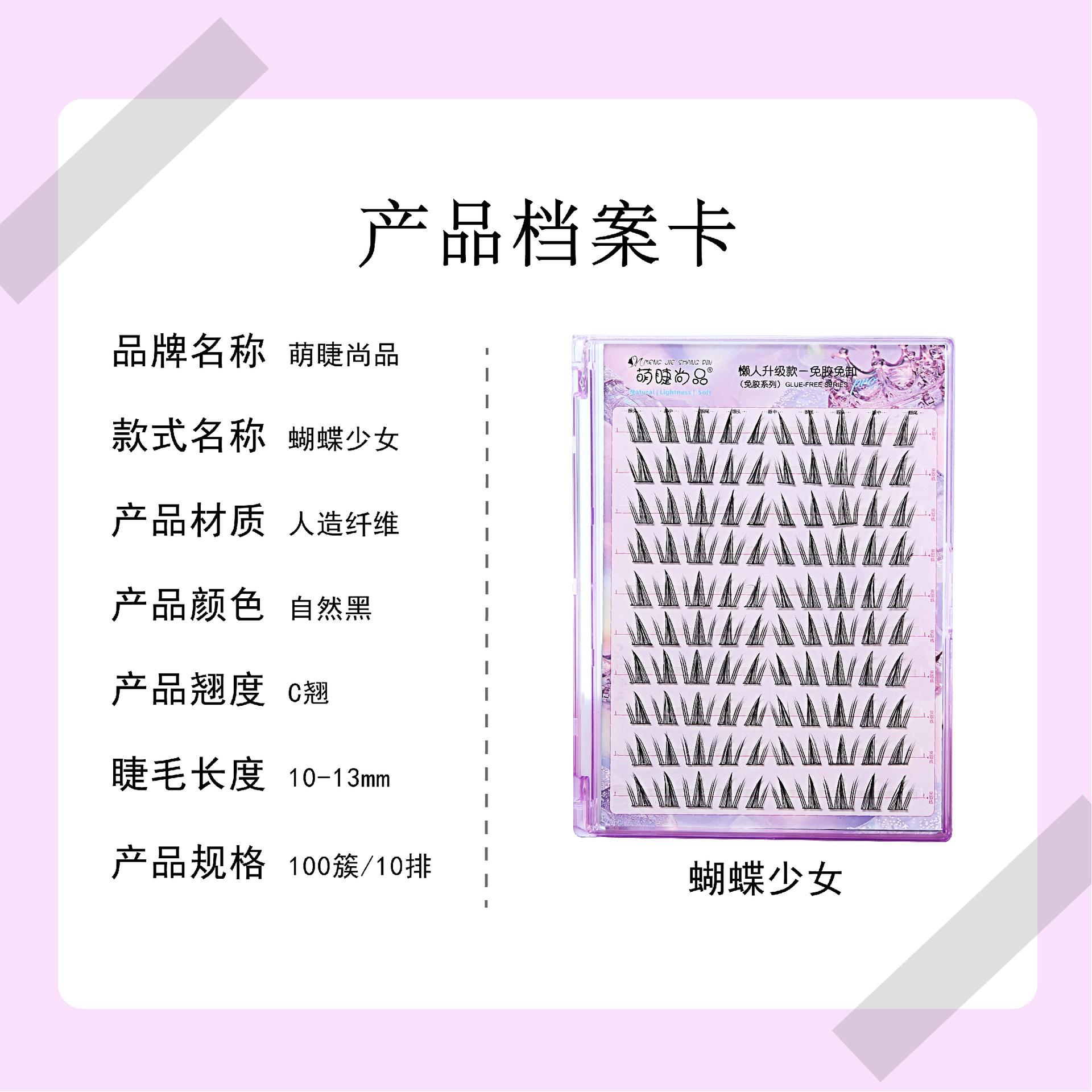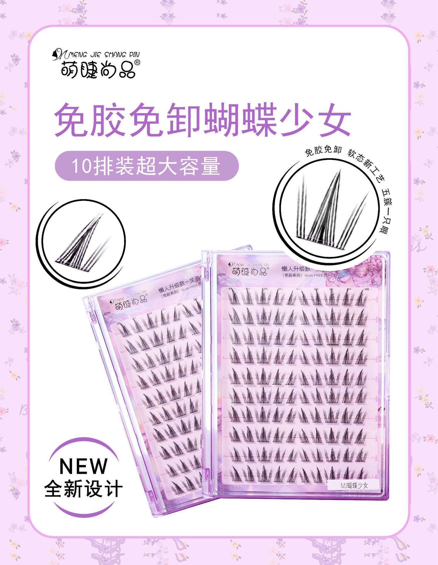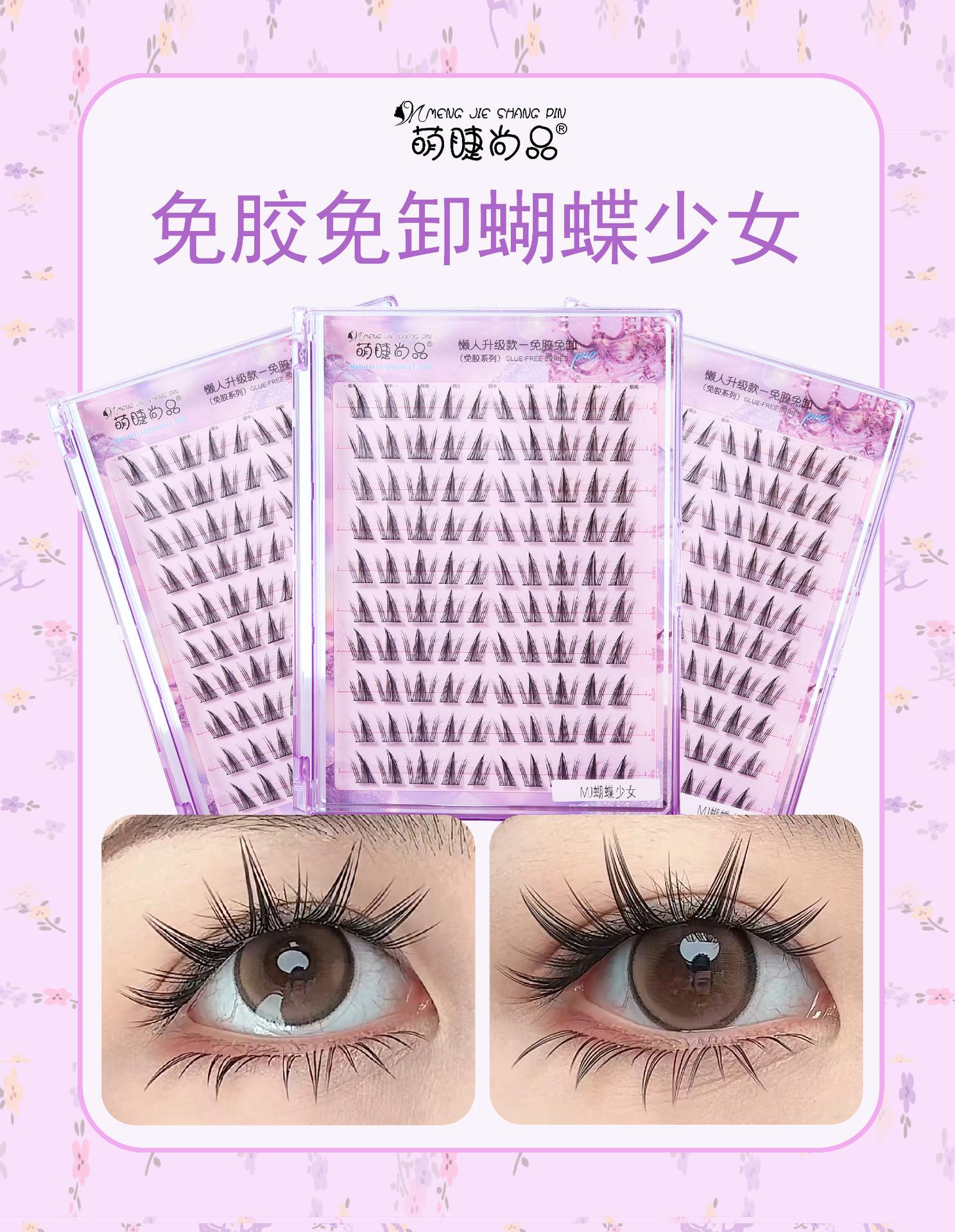 Pestañas postizas autoadhesivas de mariposa para niña, de 10 filas, sin pegamento, segmentadas en un solo grupo, naturales, fotogénicas, para principiantes