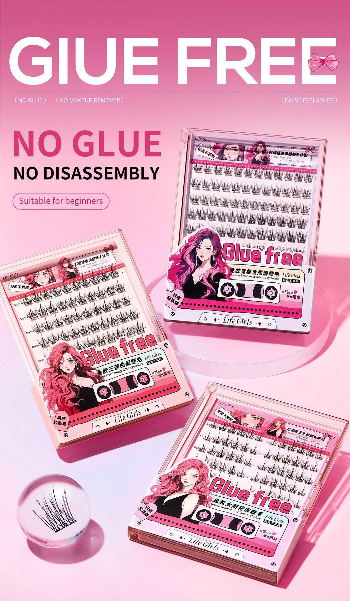 Pestañas postizas transfronterizas pestañas postizas pegamento autoadhesivo girasol natural al por mayor maquillaje