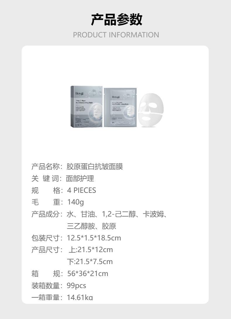 Mascarilla de colágeno HOYGI para el cuidado facial hidratante de la piel.