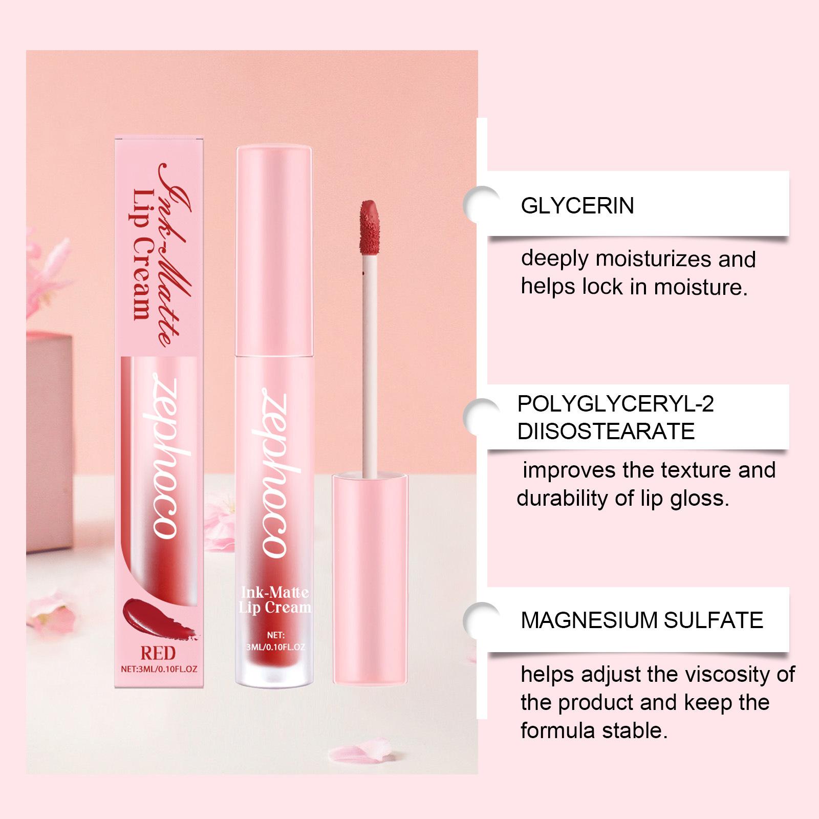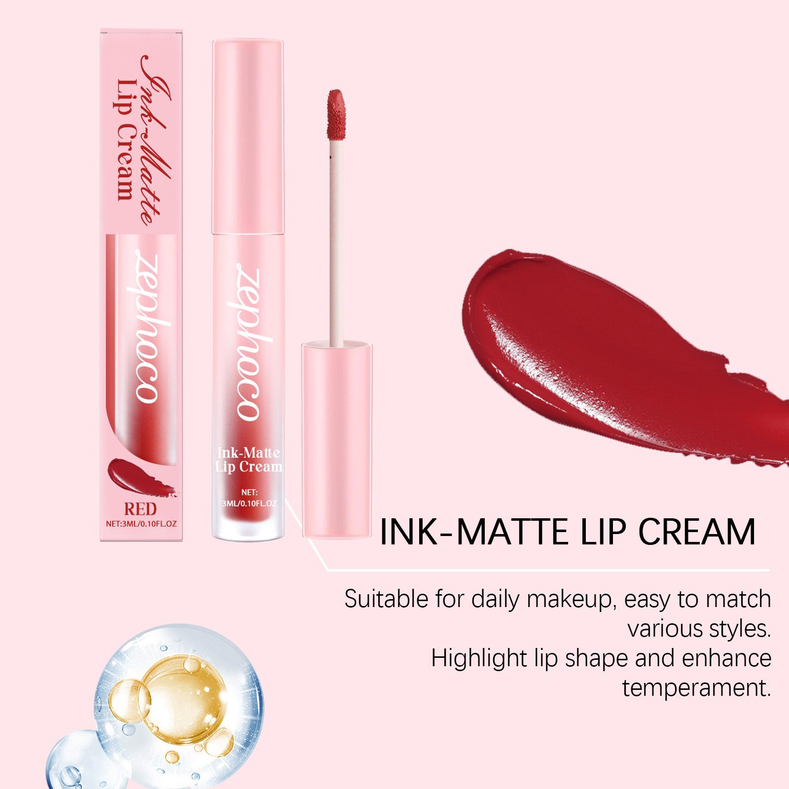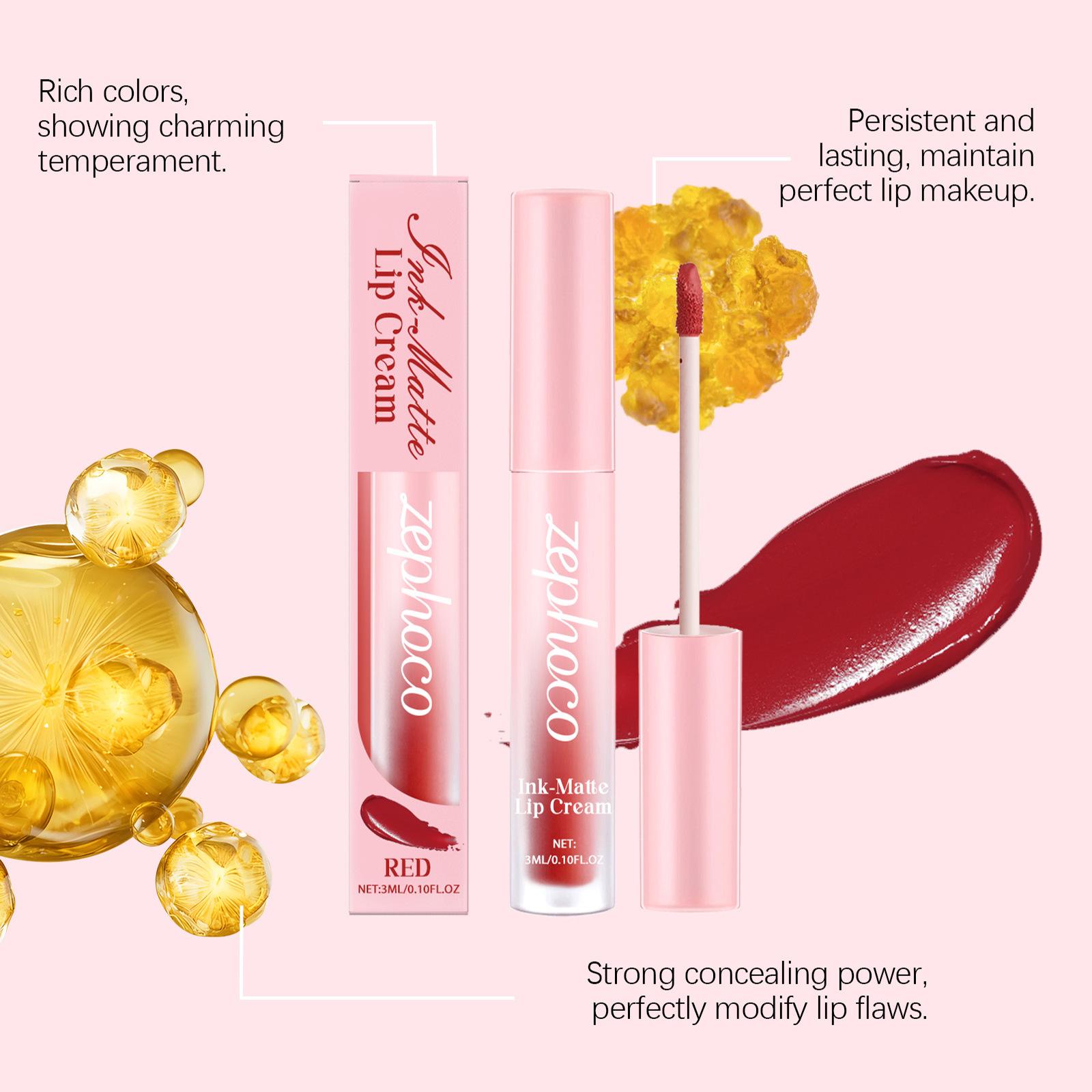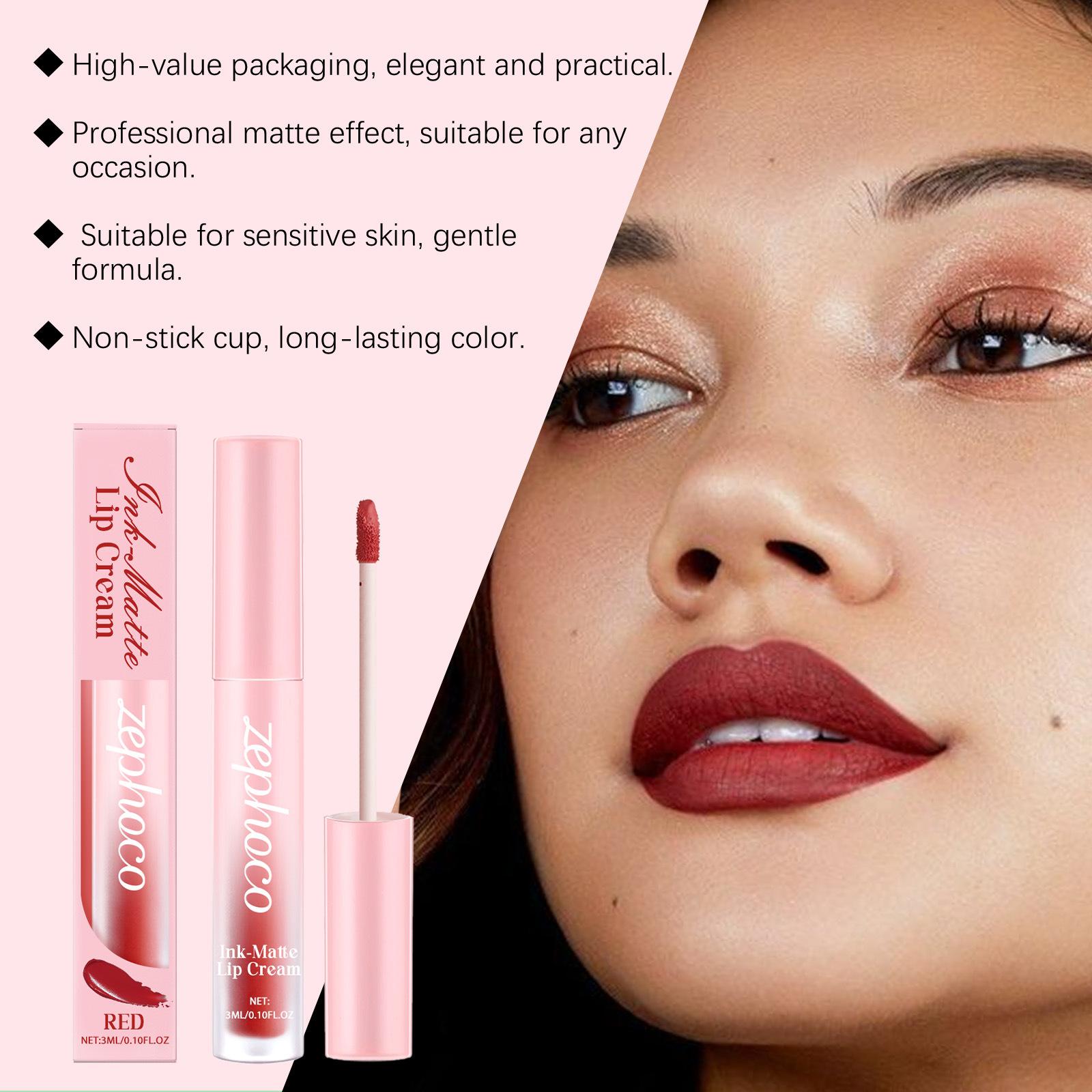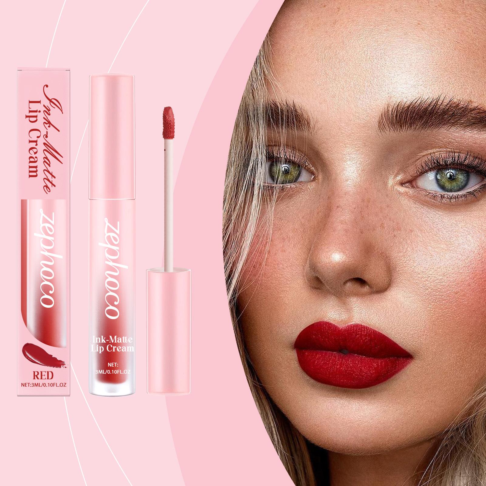 Esmalte de labios rojo mate ZEPHOCO, esmalte de labios mate Aura, taza antiadherente, lápiz labial resistente al agua de color sedoso