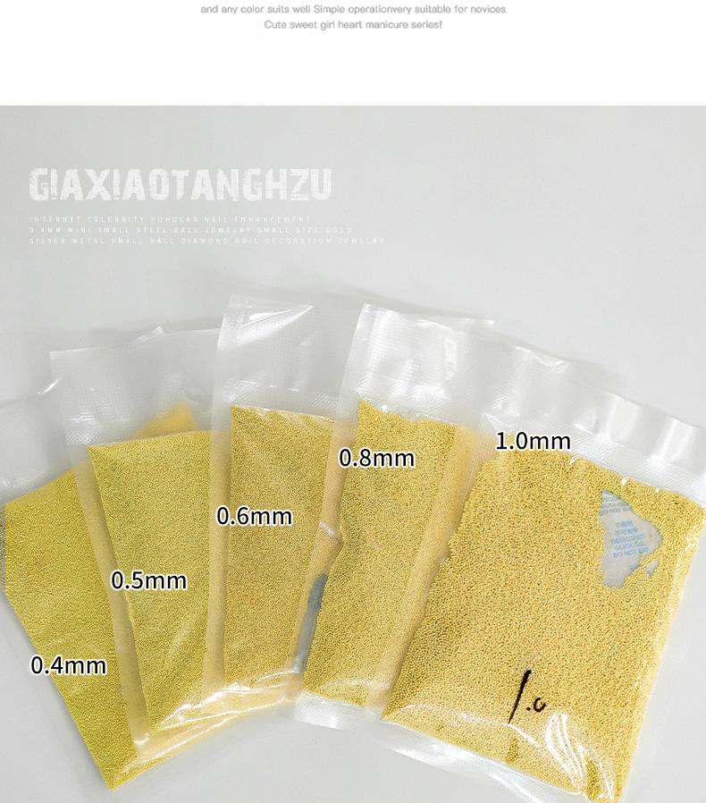 Compra Mini pequeñas bolas de acero joyería para uñas bolsa de 500g tamaño pequeño diamante hechizo oro plata cuenta redonda decoraciones para uñas al por mayor en Joom.pro