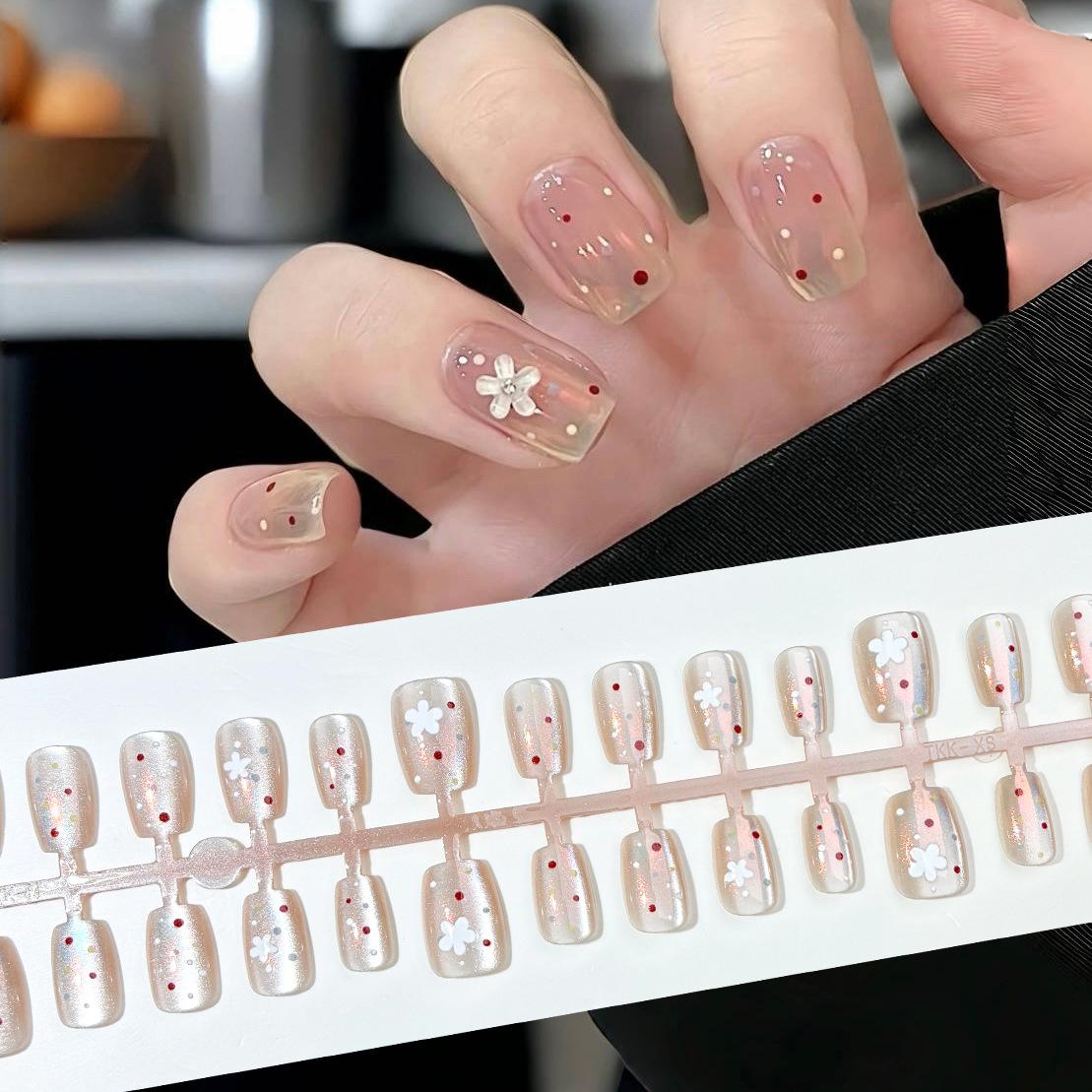 Librito Rojo con Flor Pequeña Ola de Color Punto Usar Armadura Ojo de Gato Aurora Lindo Fresco Arte de Uñas Estilo Ins