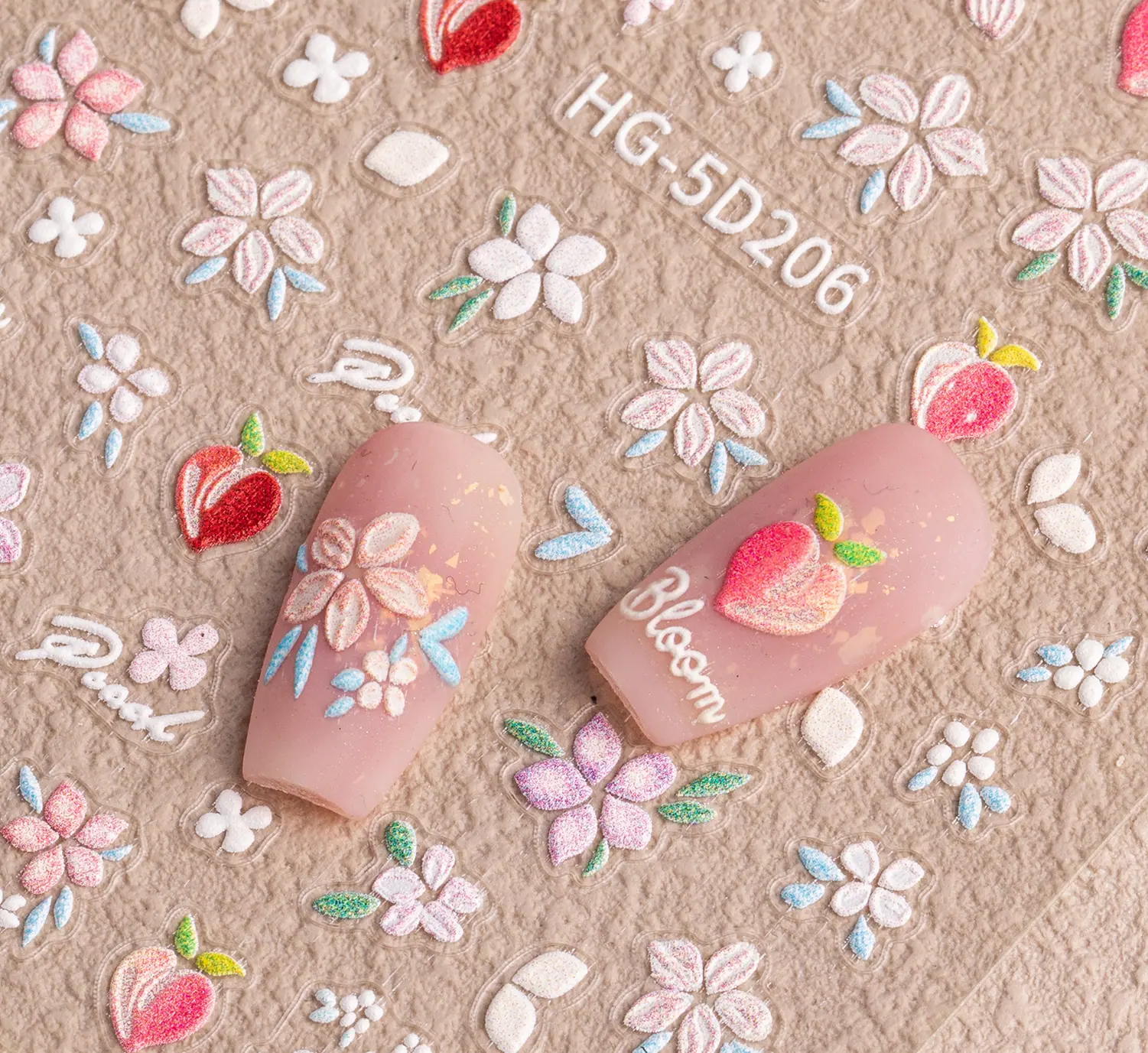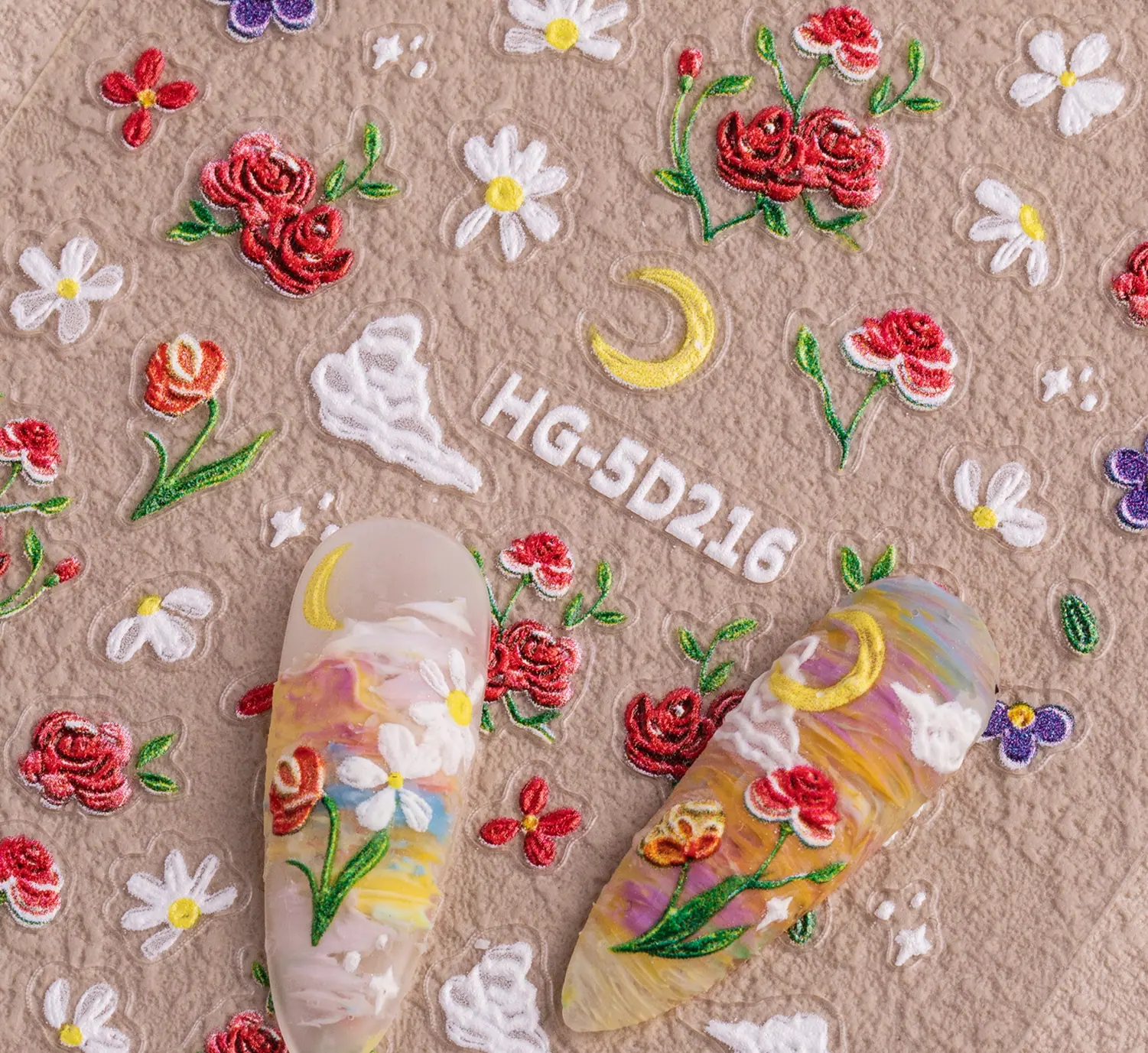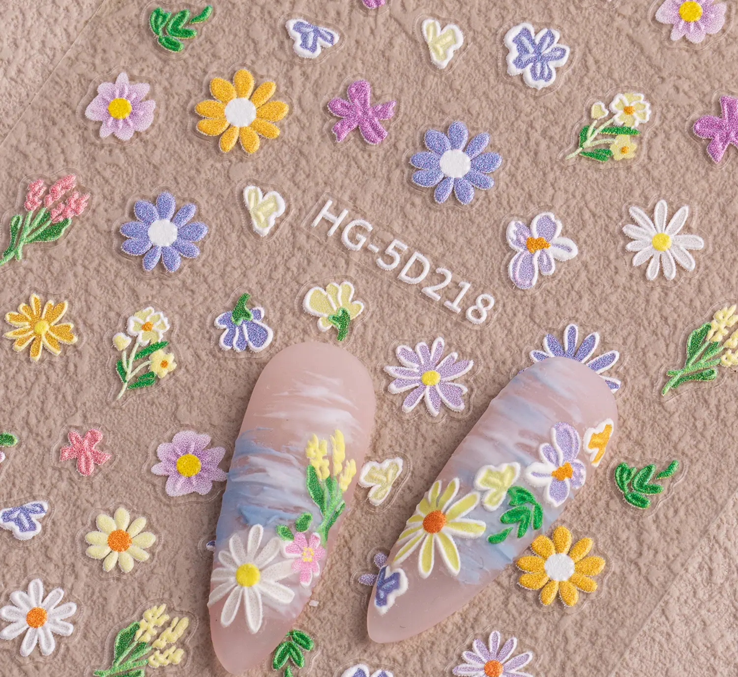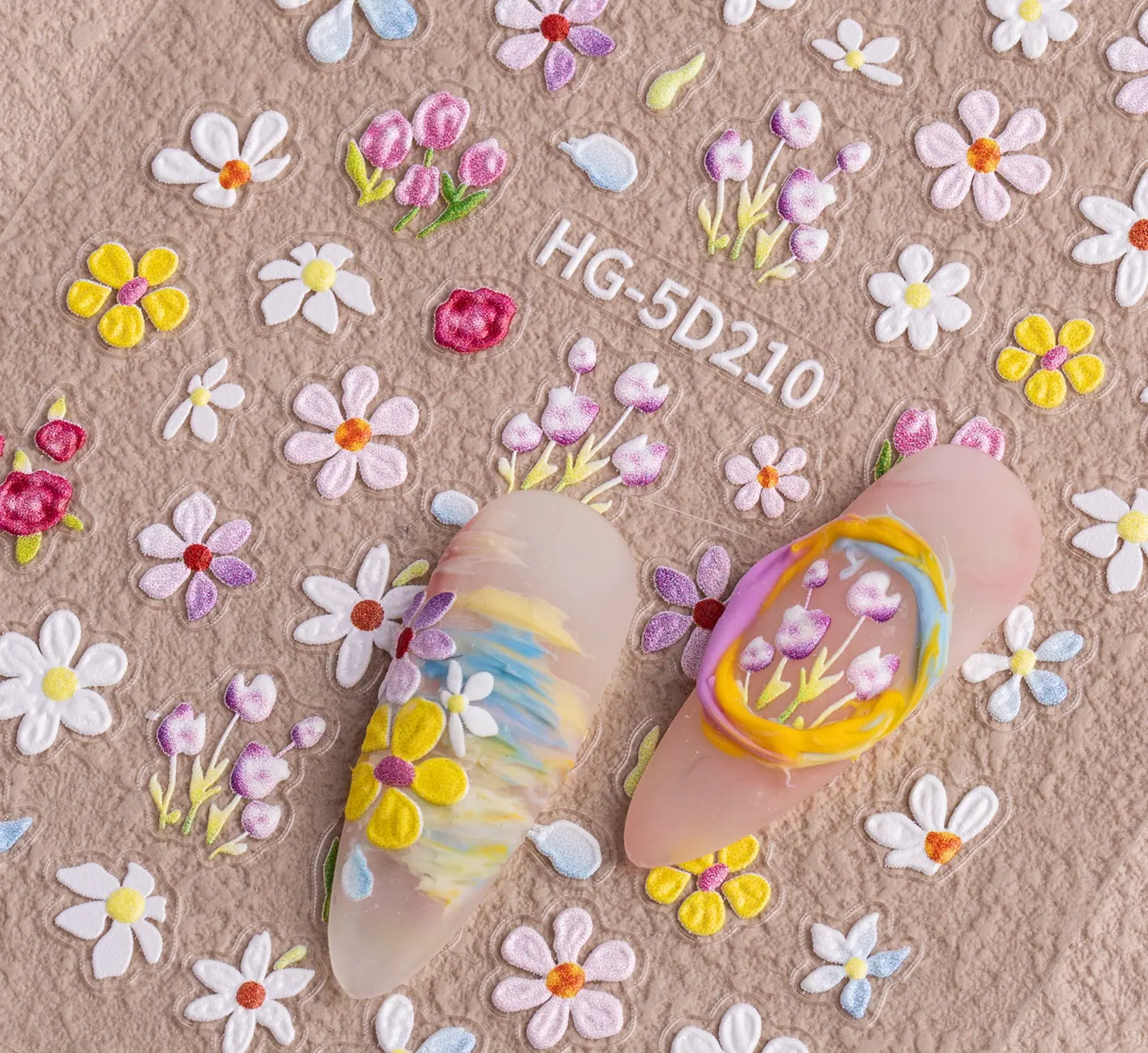 Pegatinas de Arte para Uñas Florales Coloridas Día de Primavera 5D Repujadas Tridimensionales Exquisitas Pintura al Óleo Flor Silvestre Pegatinas para Uñas DIY Modelo Hg