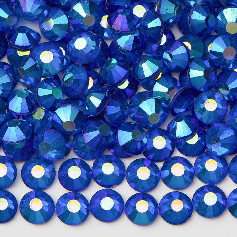 Serie azul vidrio diamante plano pedrería color cristal estéreo redondo diy accesorios para teléfono móvil al por mayor