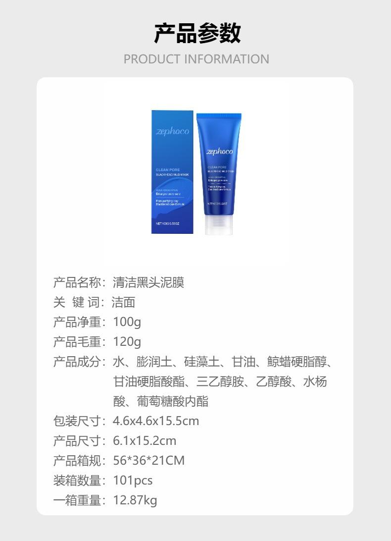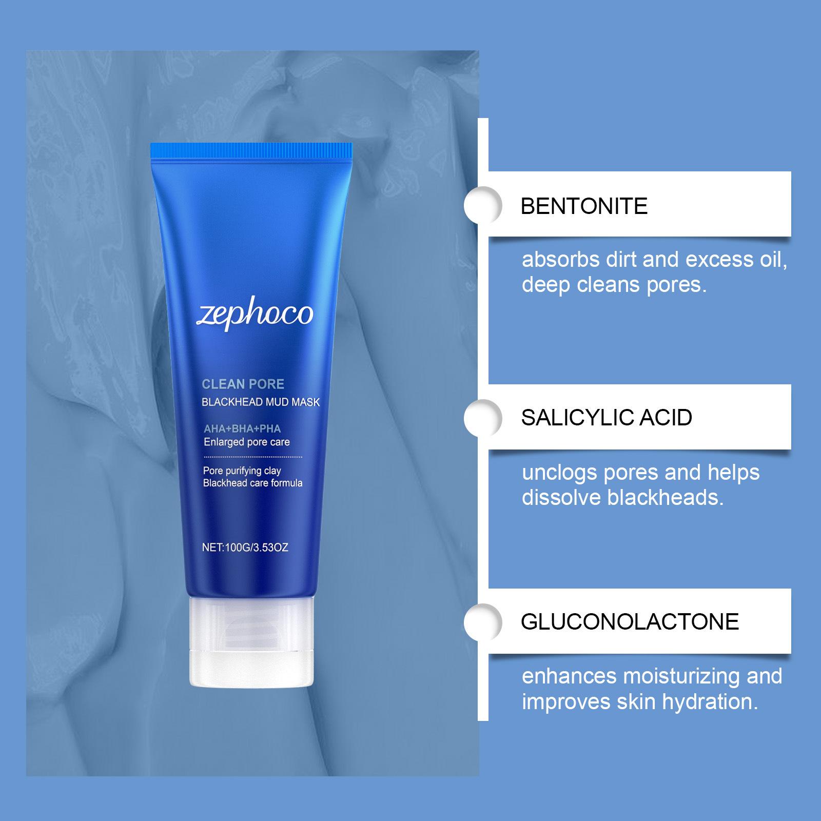 Zephoco Limpiador de puntos negros, película de barro, limpieza de poros, hidratación, piel refrescante y no grasosa.