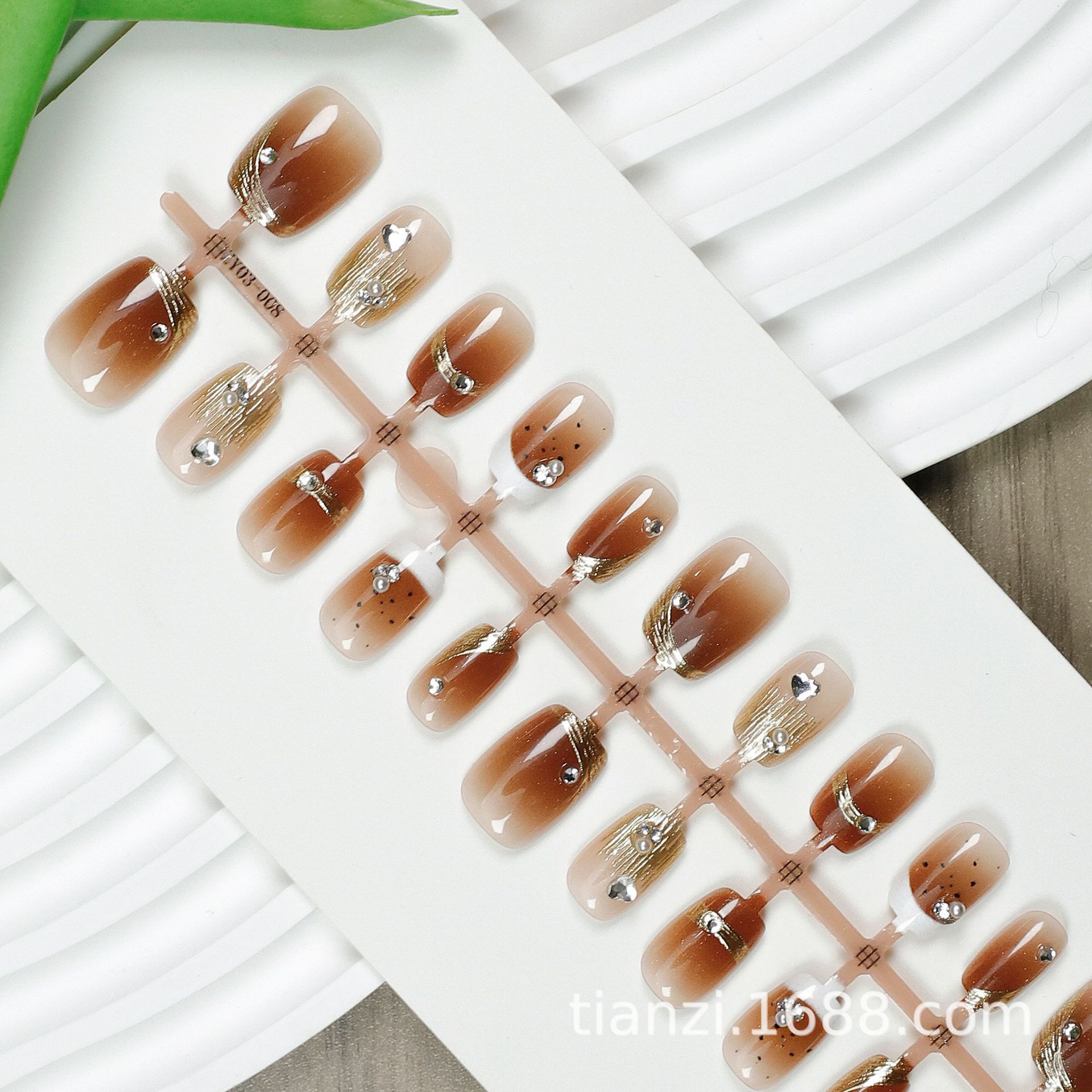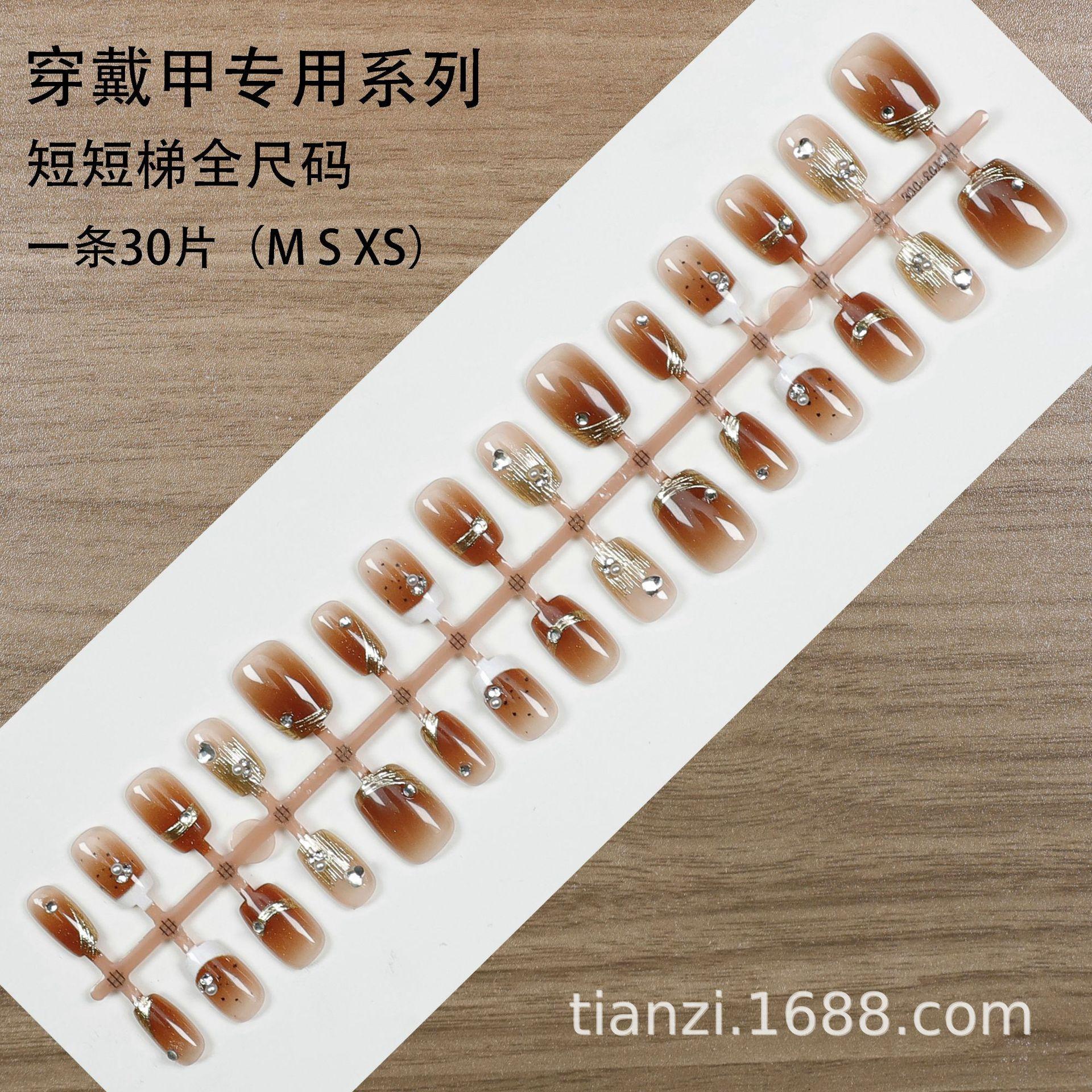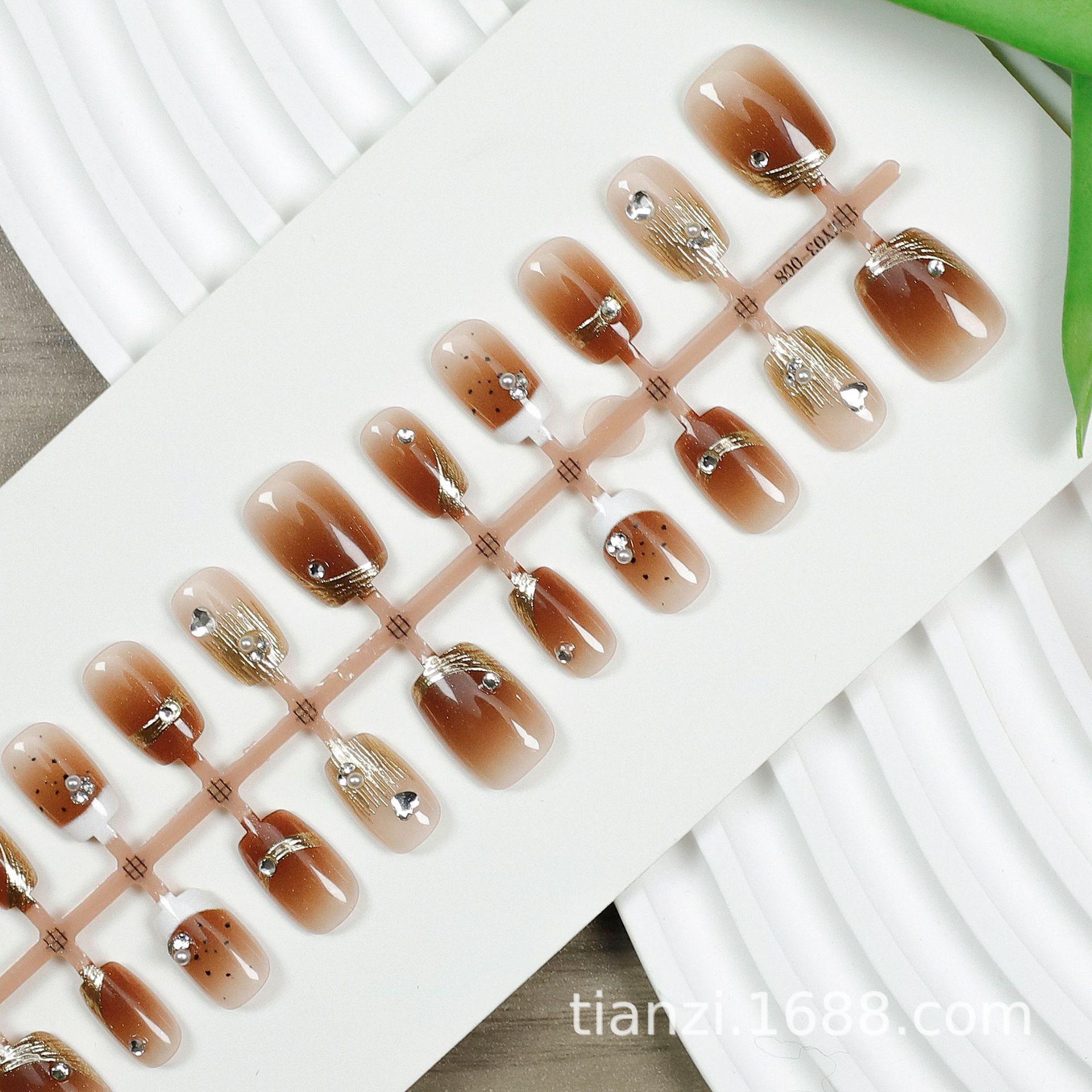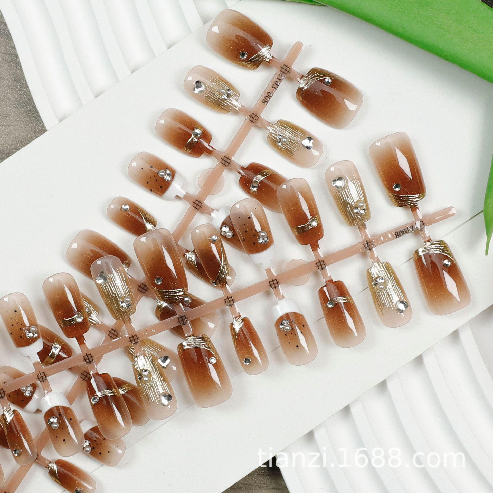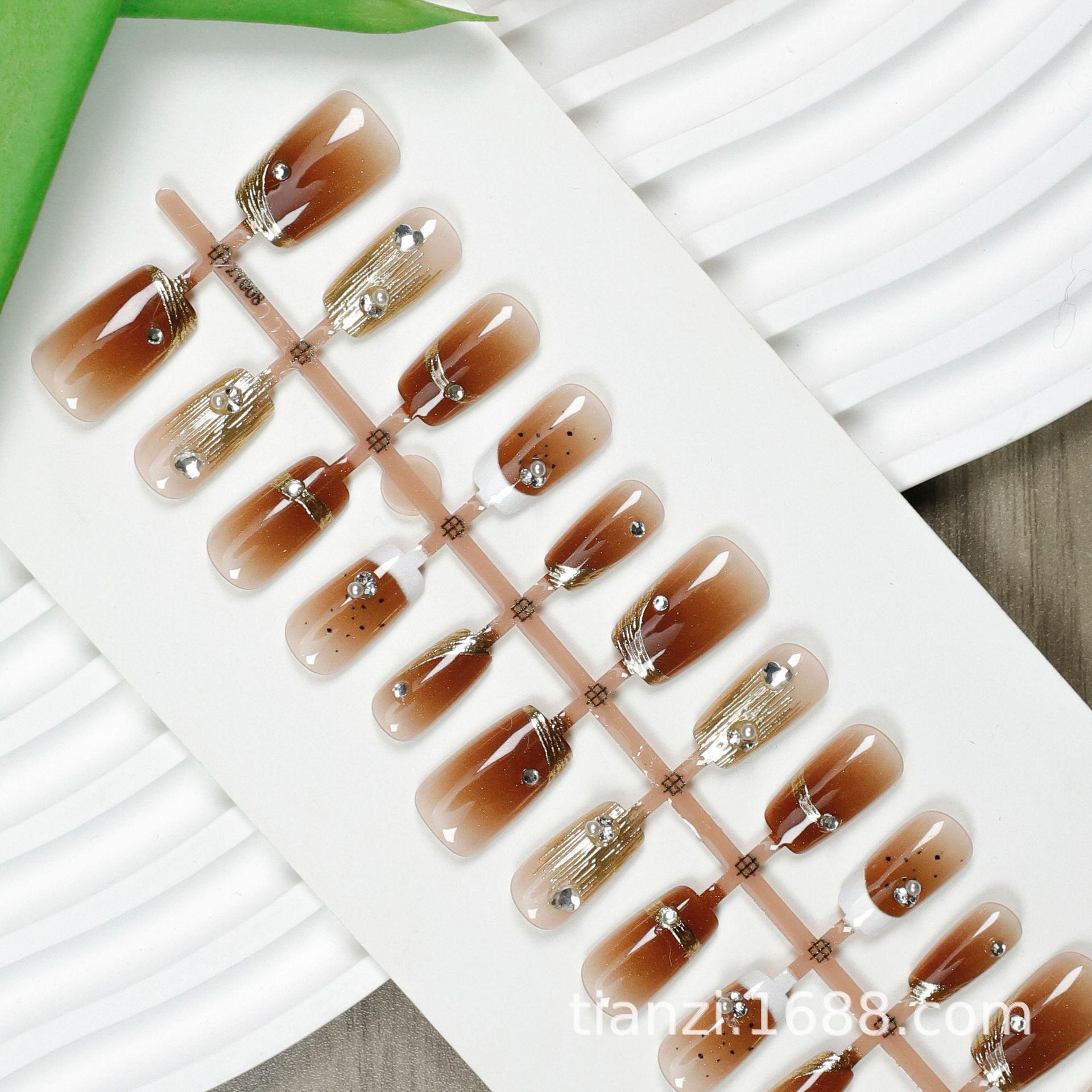 Compra Manicura de uñas postizas con degradado de ámbar, hecha a mano, chapada en oro, con diamantes rotos, armadura de desgaste, atmósfera avanzada, 30 piezas al por mayor en Joom.pro