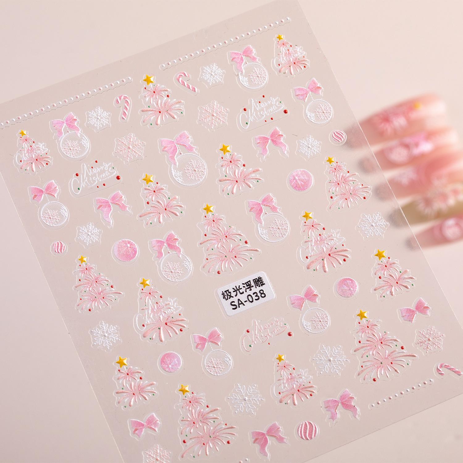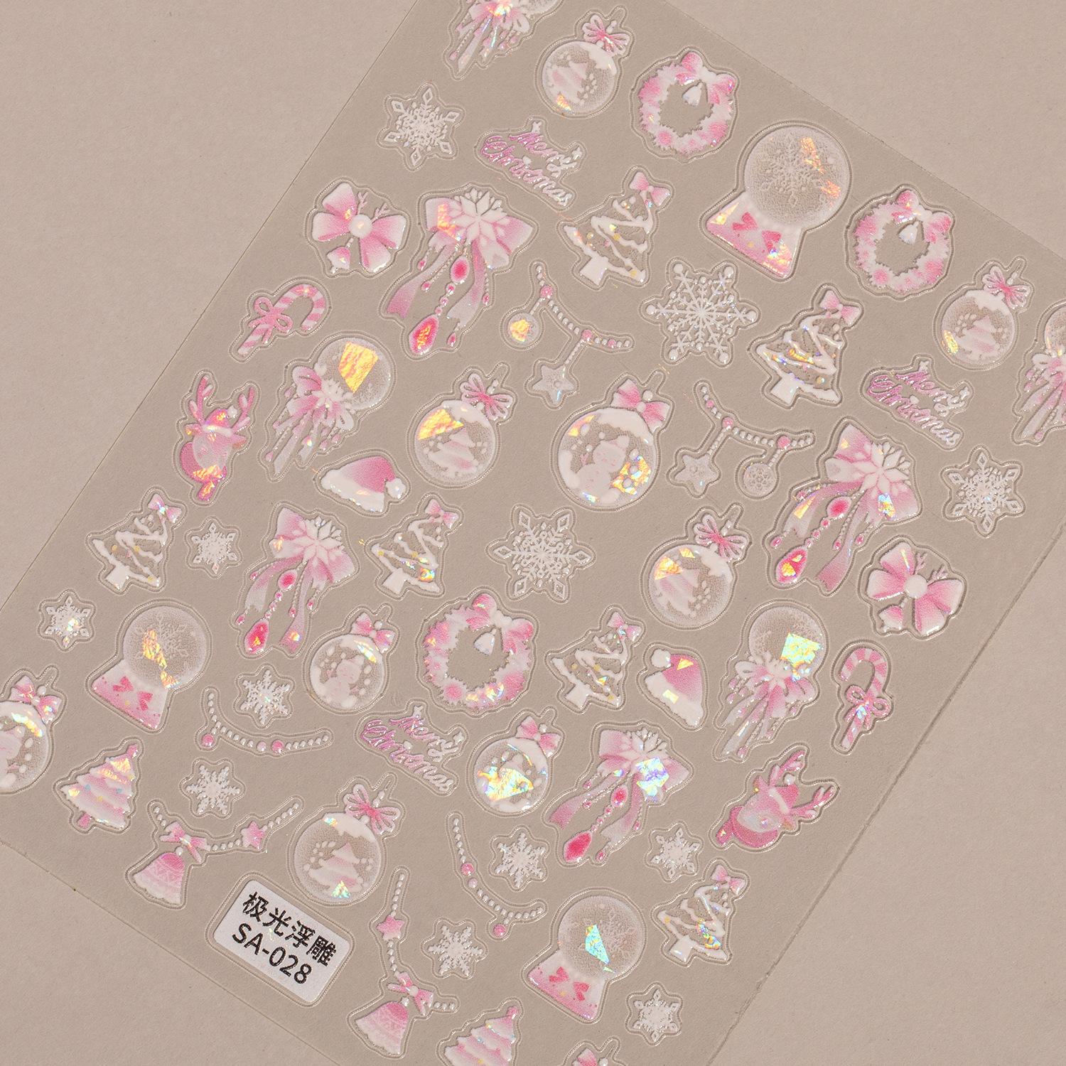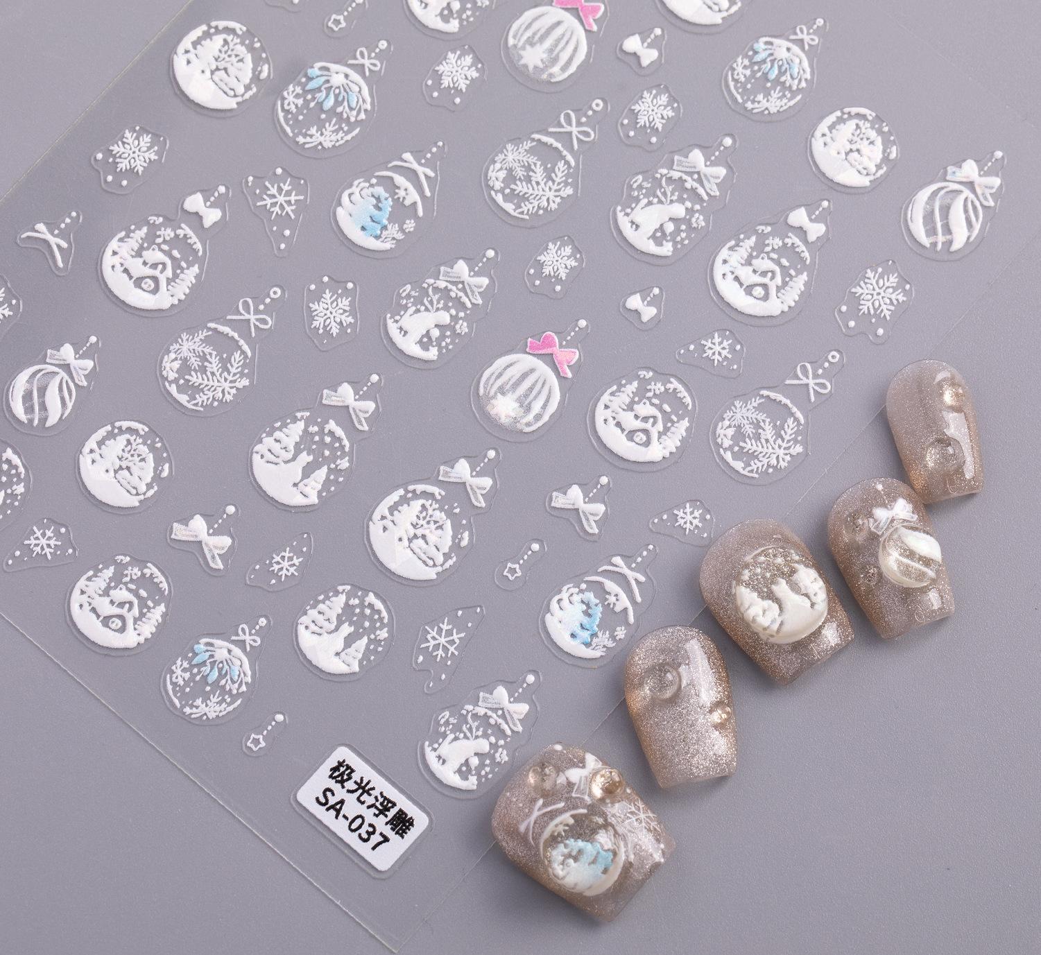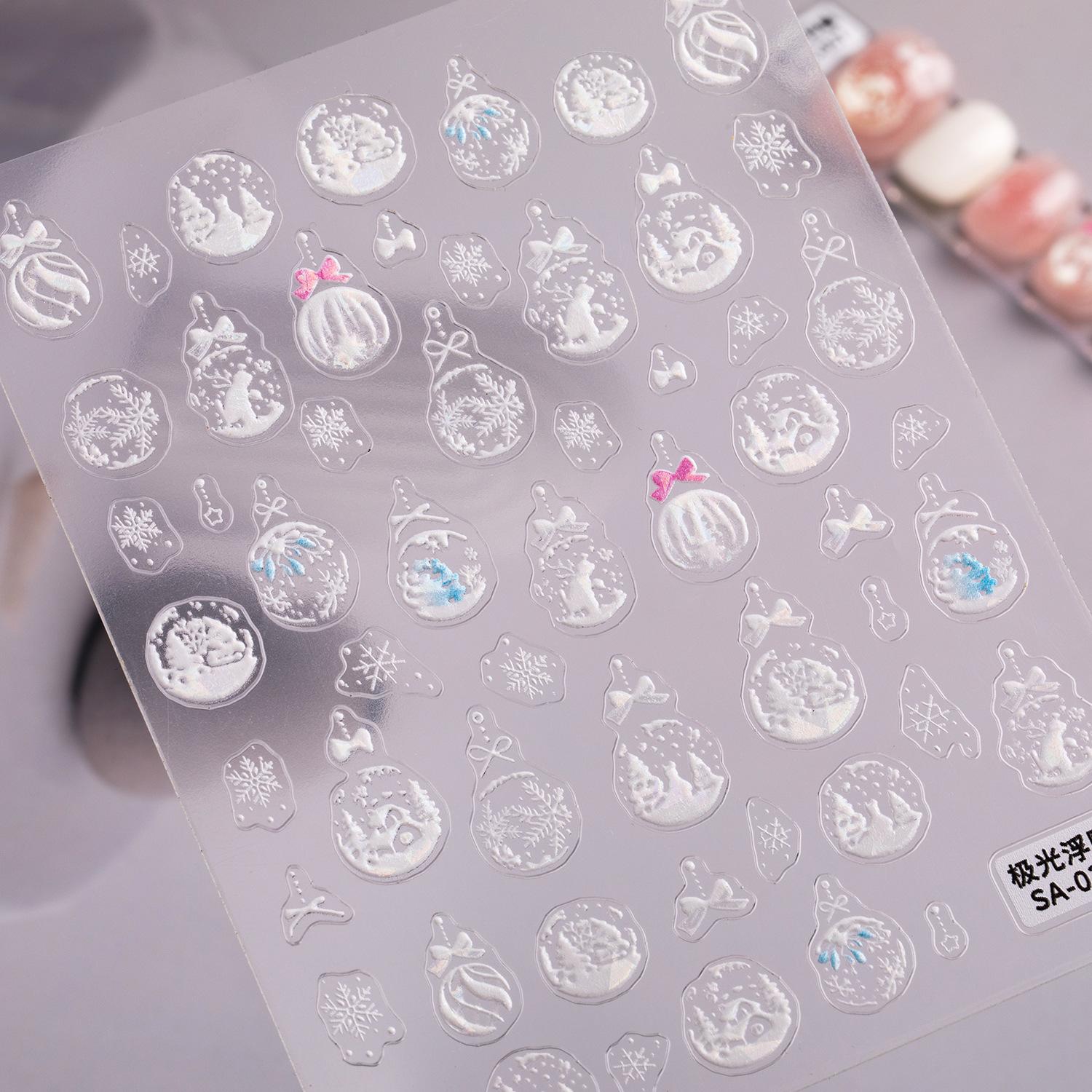 Aurora Bola de Navidad Calcomanías para Arte de Uñas 5D Relieve Luz de Concha Ambiente Navideño DIY Calcomanías para Uñas Estilo Sa