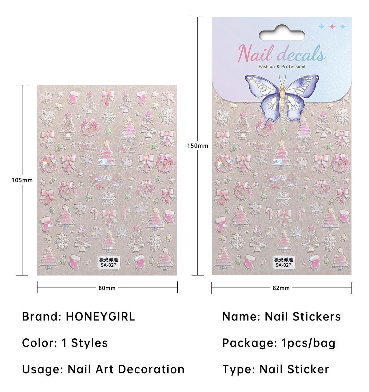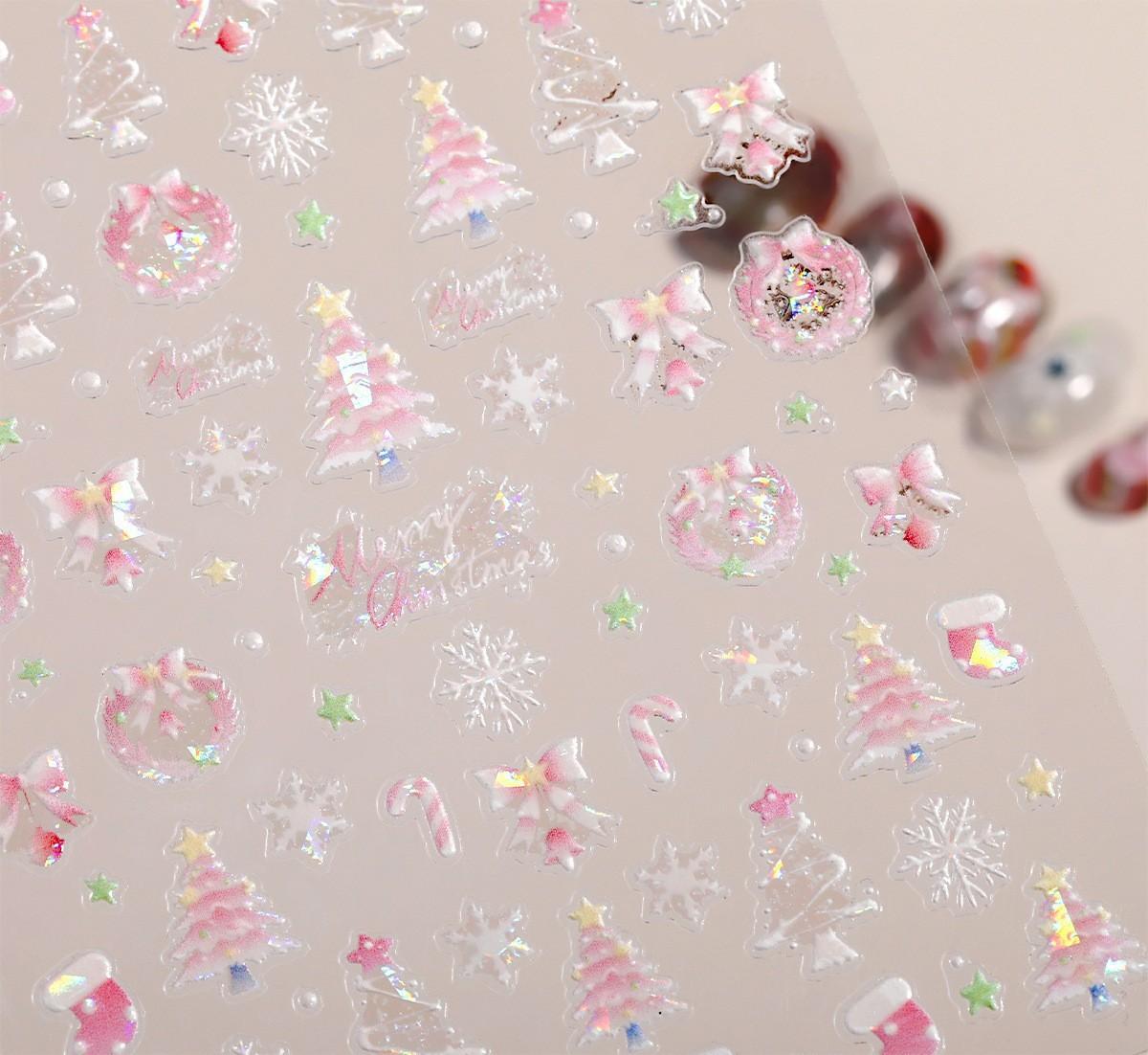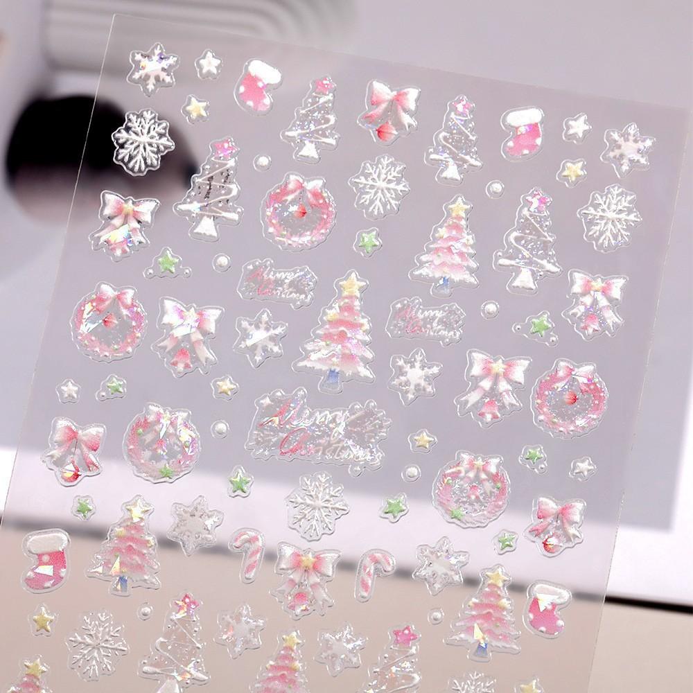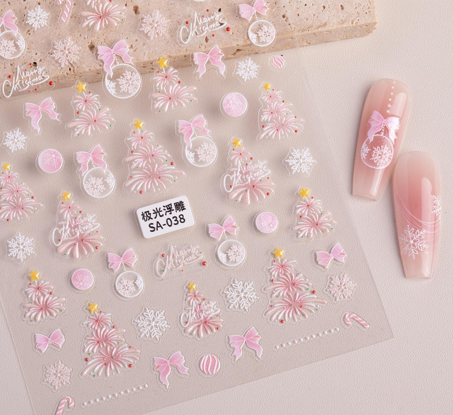 Aurora Bola de Navidad Calcomanías para Arte de Uñas 5D Relieve Luz de Concha Ambiente Navideño DIY Calcomanías para Uñas Estilo Sa