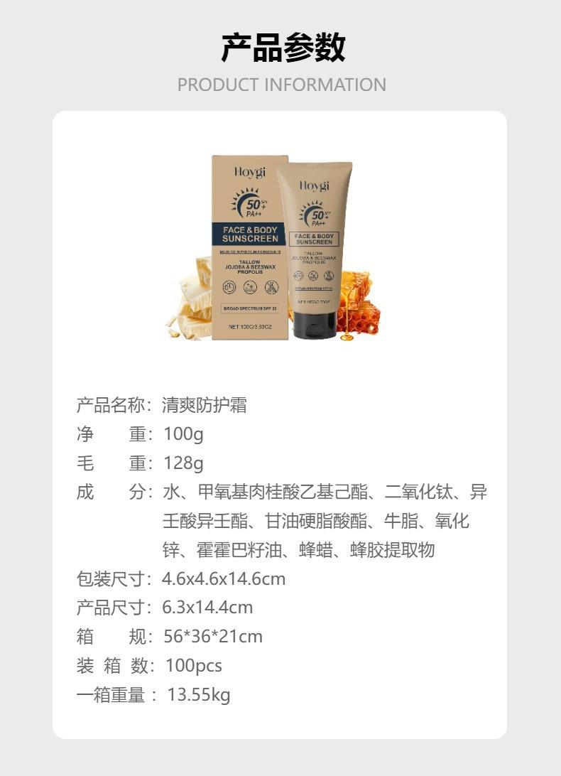 Crema protectora refrescante HOYGI, suave, hidratante, protección para exteriores, textura ligera y refrescante, crema para la piel no pegajosa.